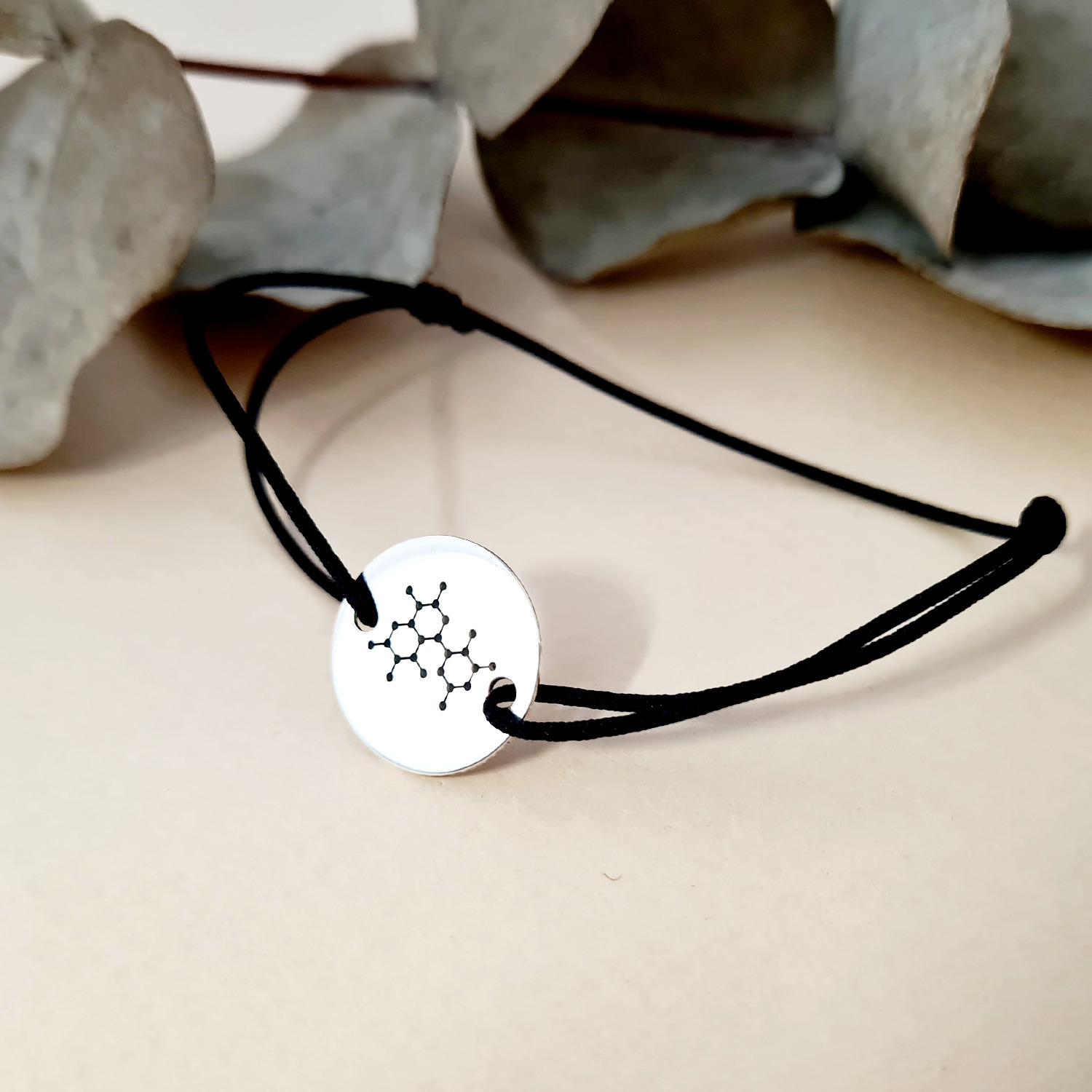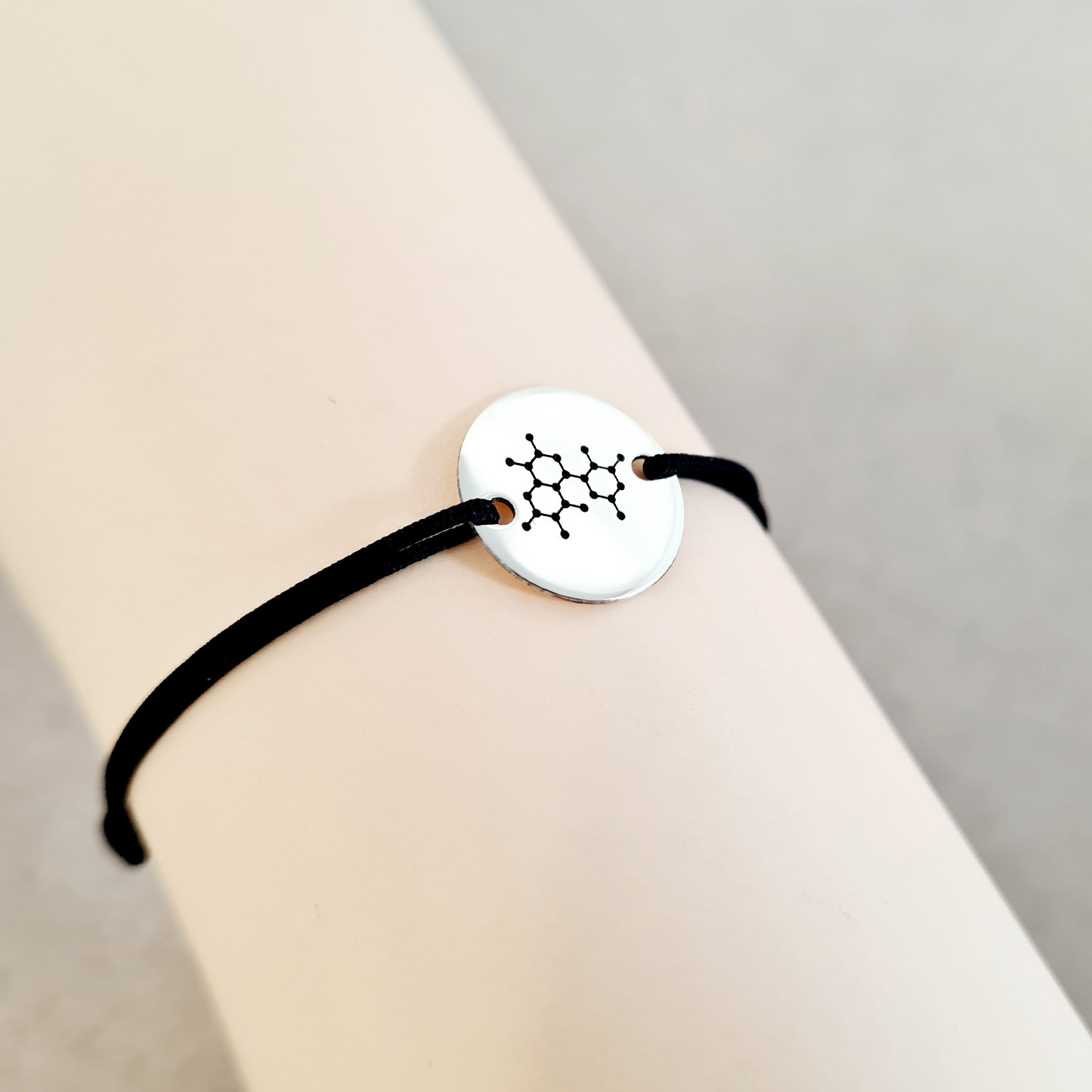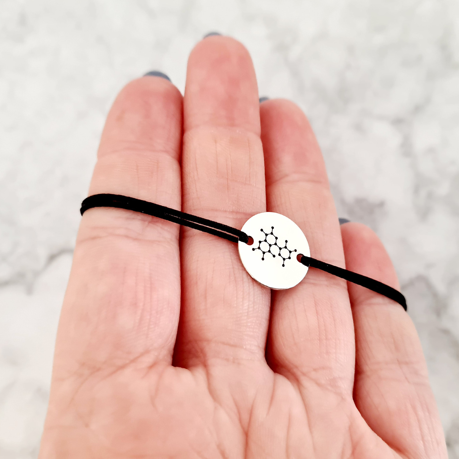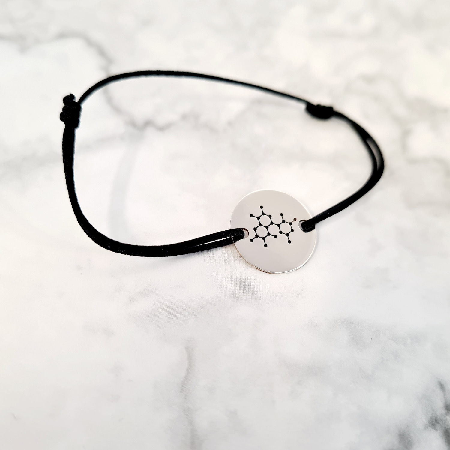 Bratara personalizata cu simbol materie scoala - Chimie - Banut de 15 mm cu snur reglabil - Argint 926
