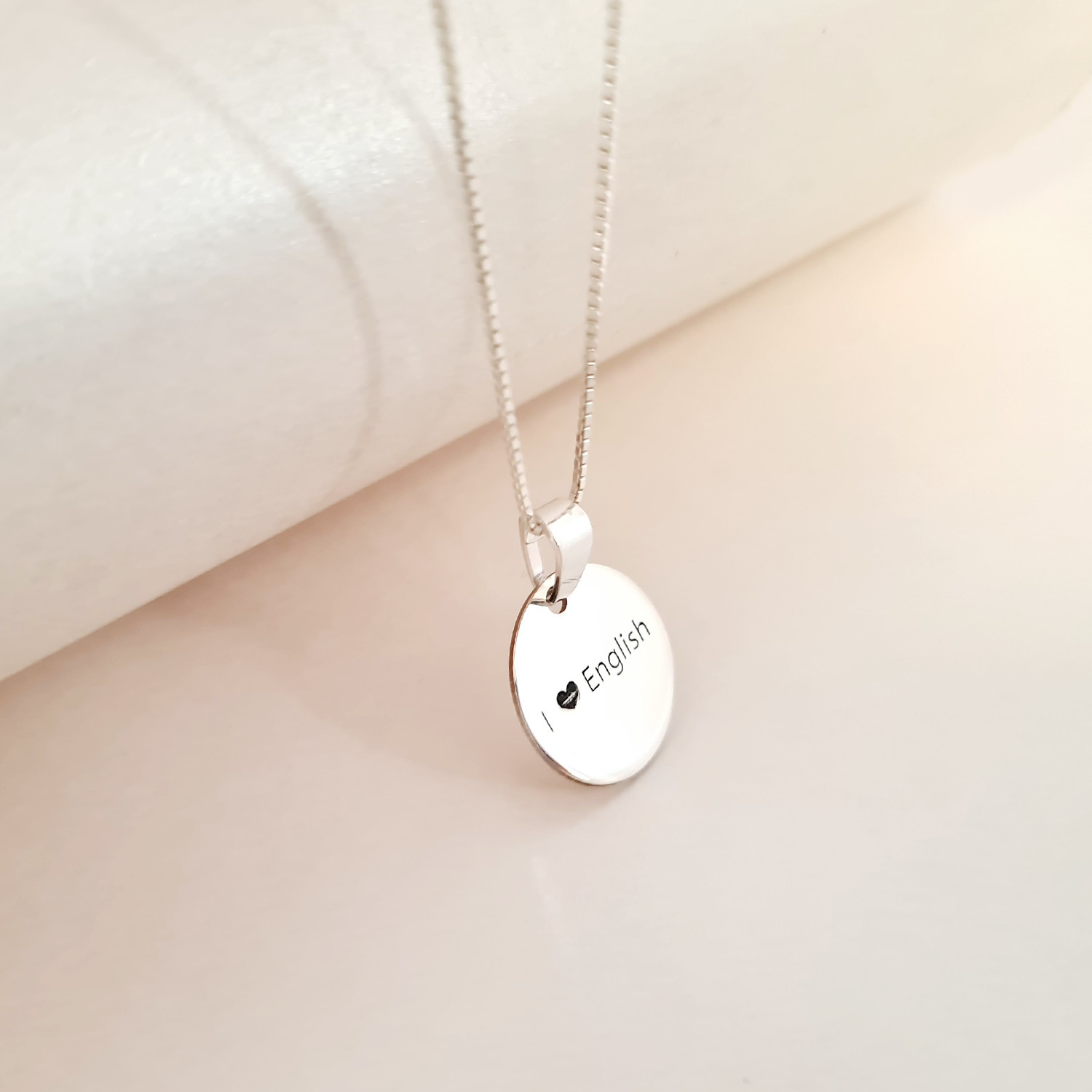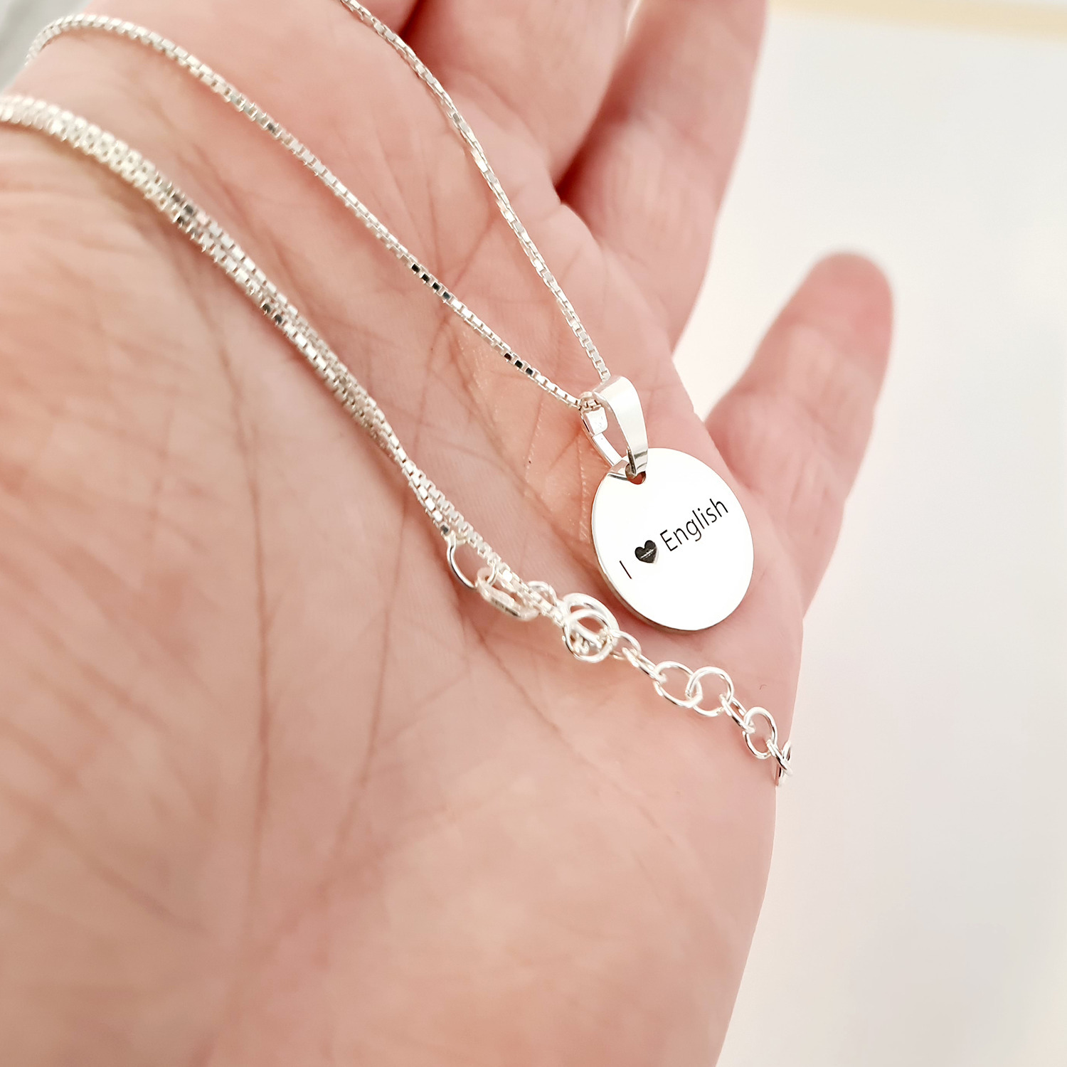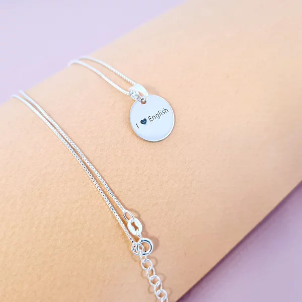 Lantisor personalizat cu simbol materie scoala - Engleza - Banut de 15 mm cu lantisor - Argint 925