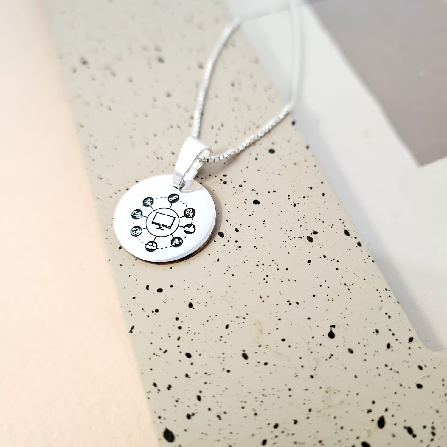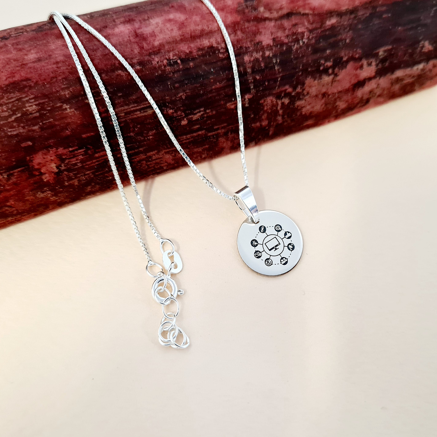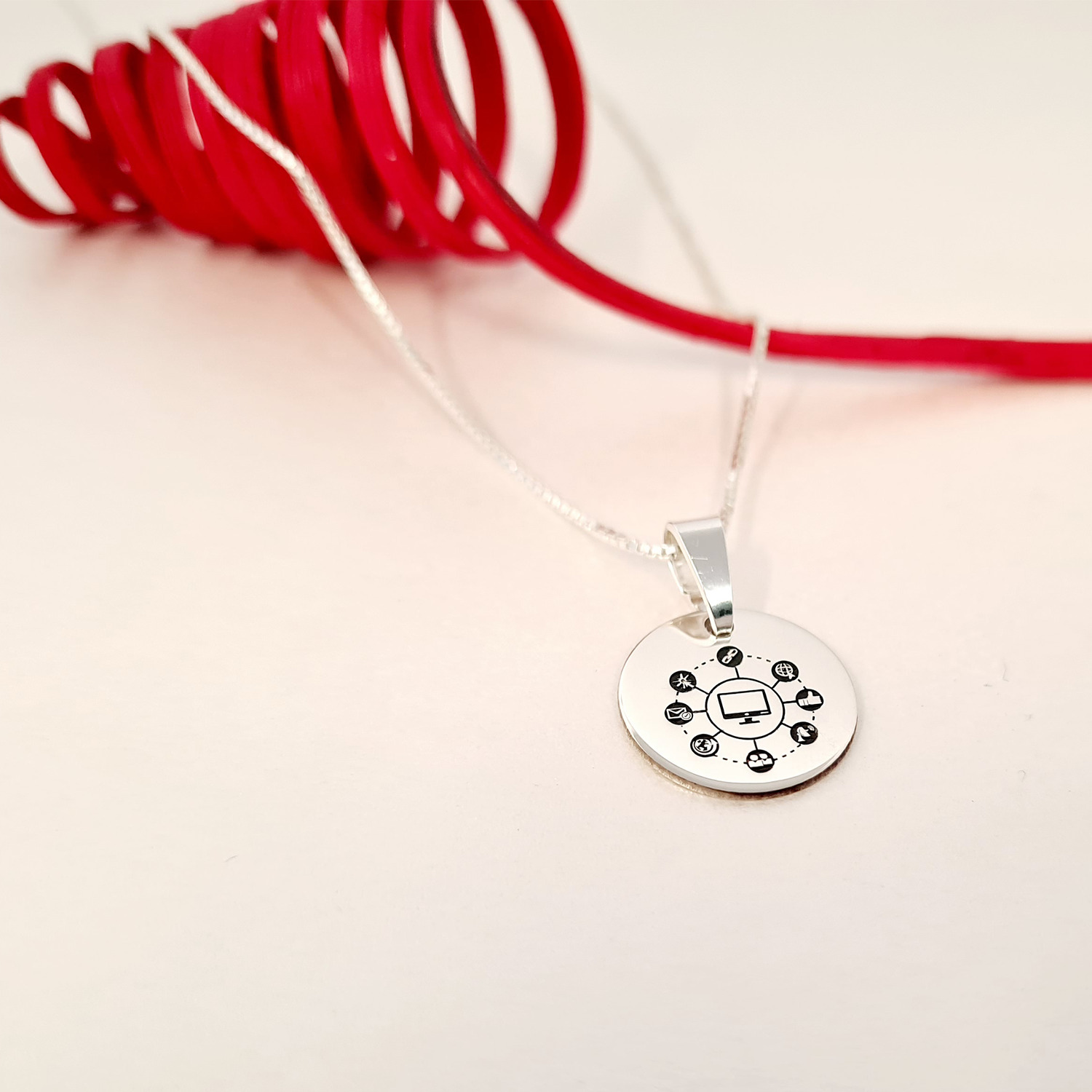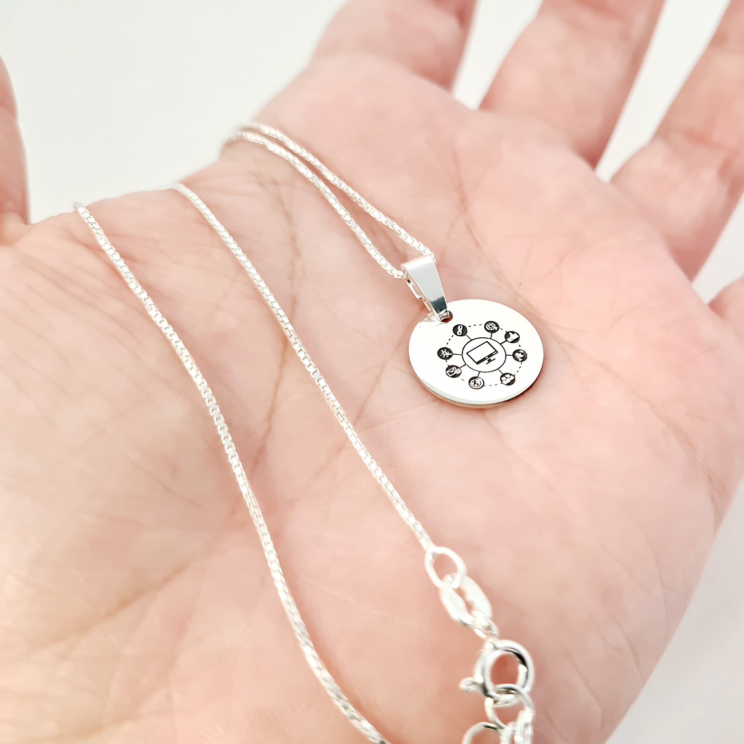 Lantisor personalizat cu simbol materie scoala - Informatica - Banut de 15 mm cu lantisor - Argint 925