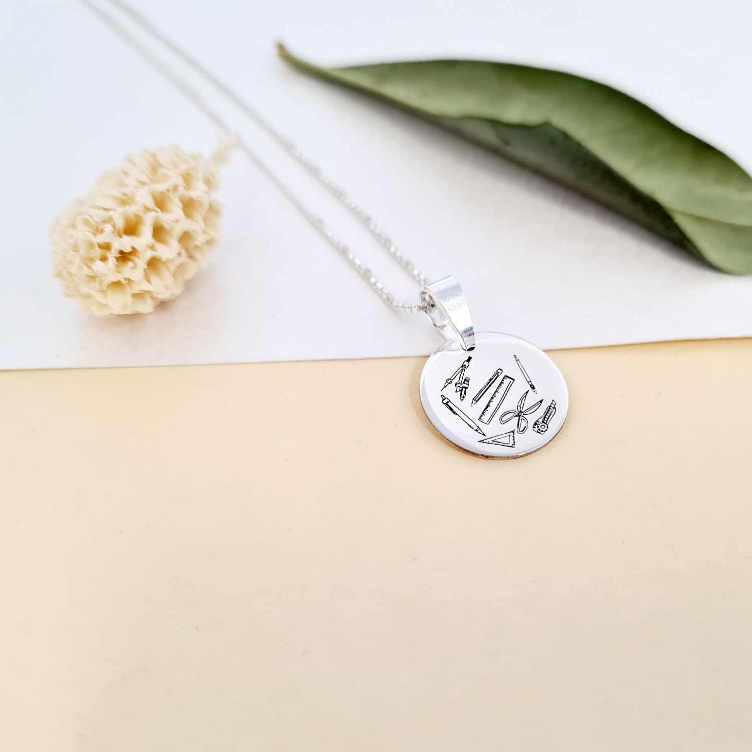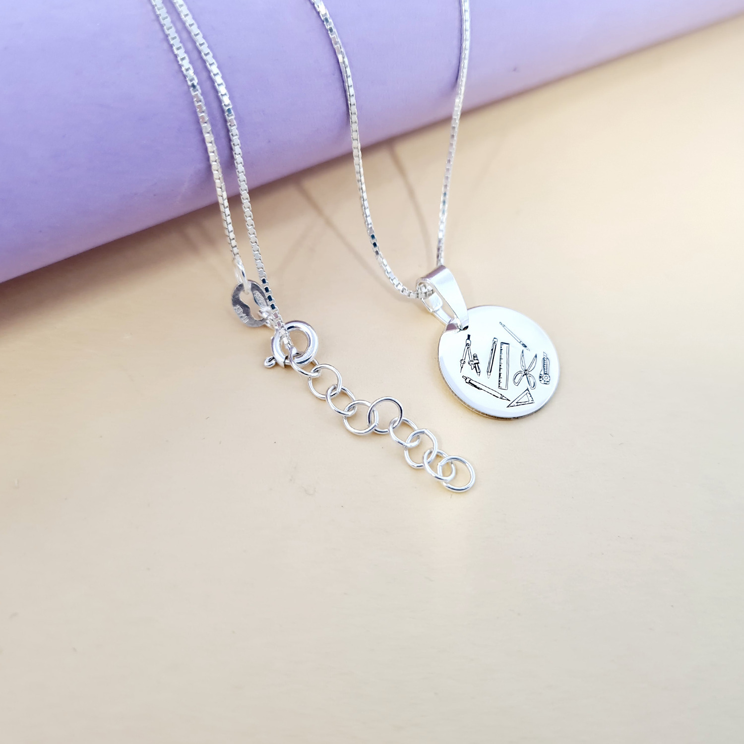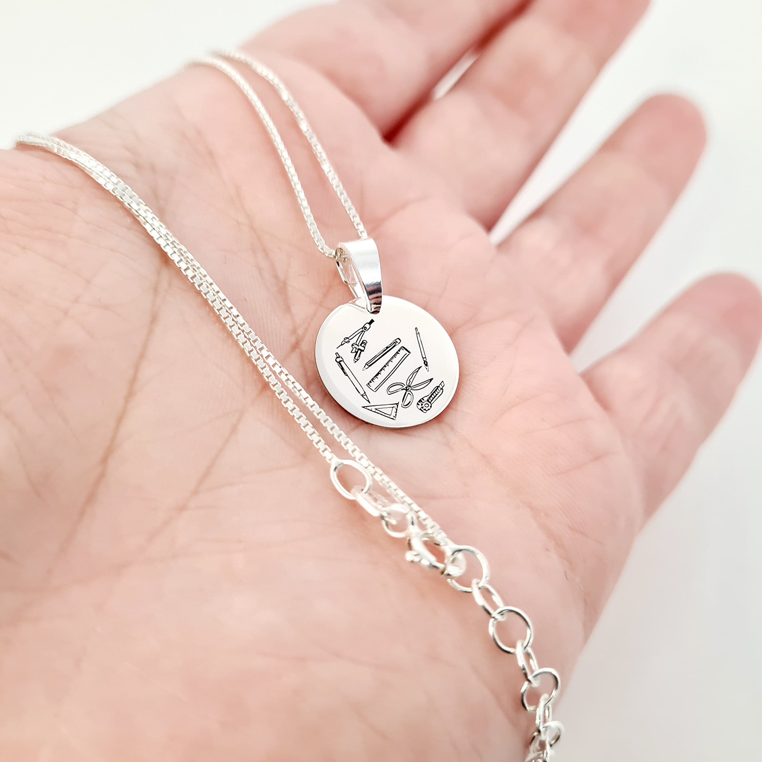 Lantisor personalizat cu simbol materie scoala - Tehnologie - Banut de 15 mm cu lantisor - Argint 925