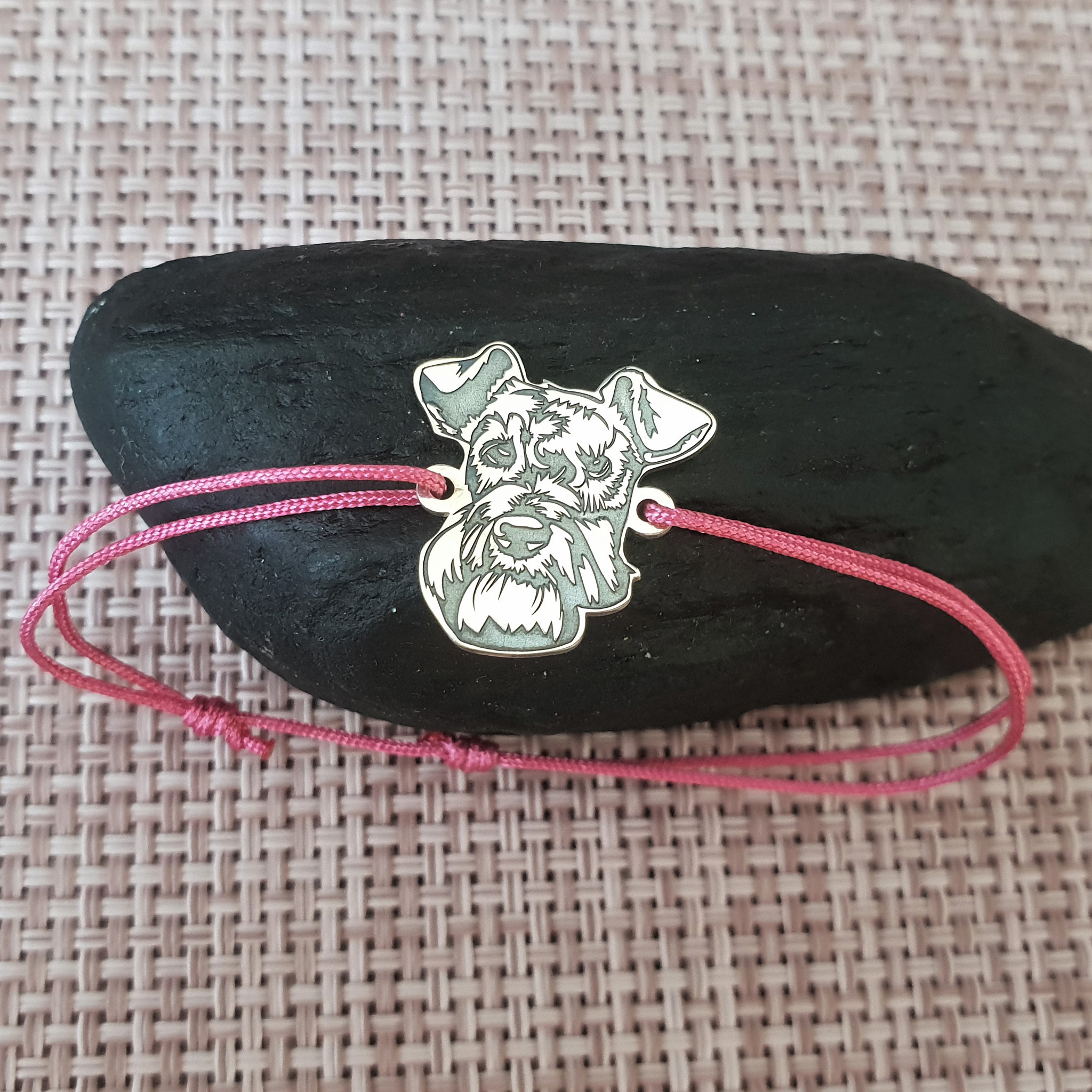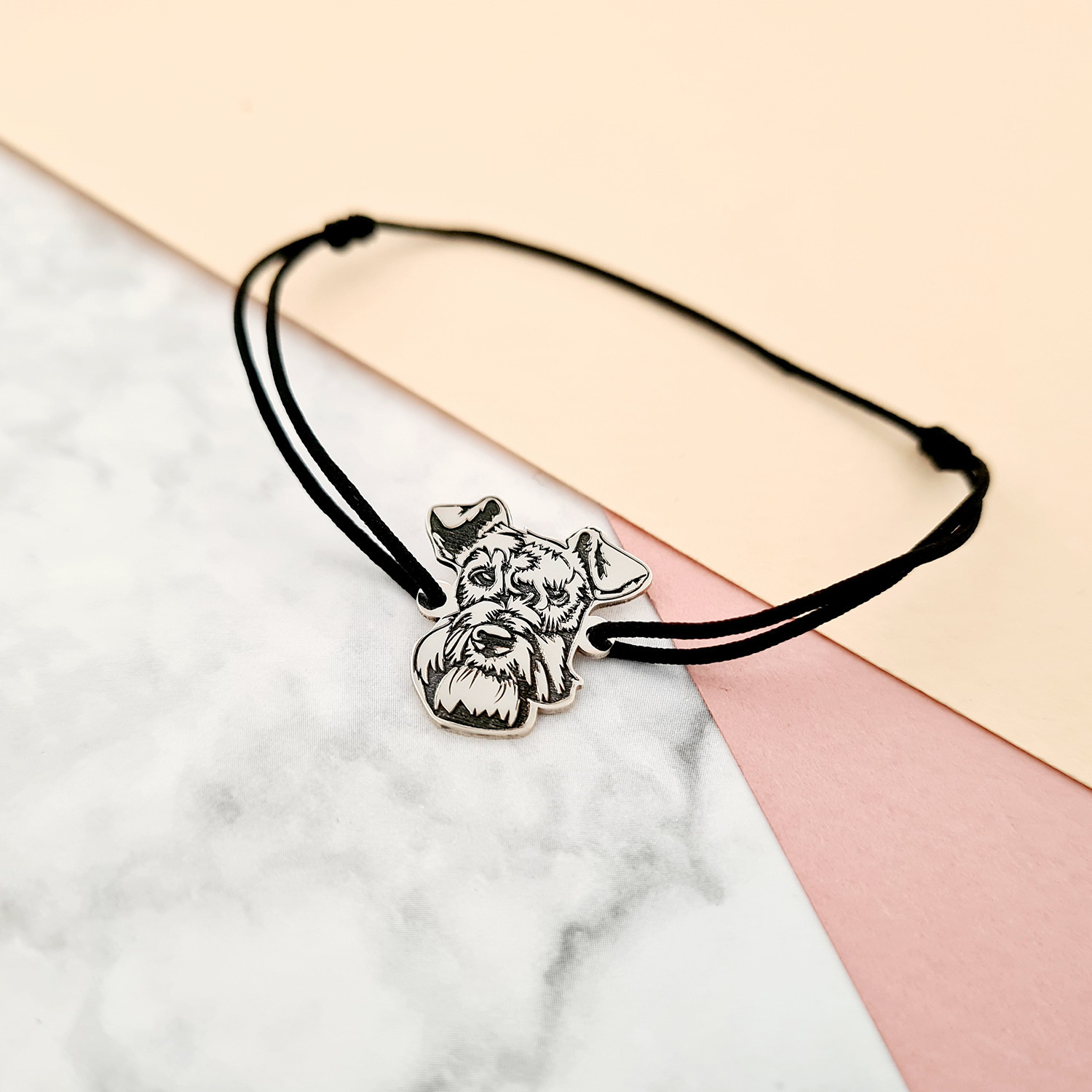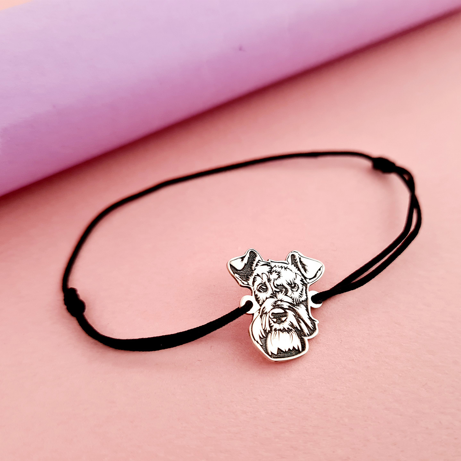Bratara cap de Schnauzer- Argint 925, snur reglabil