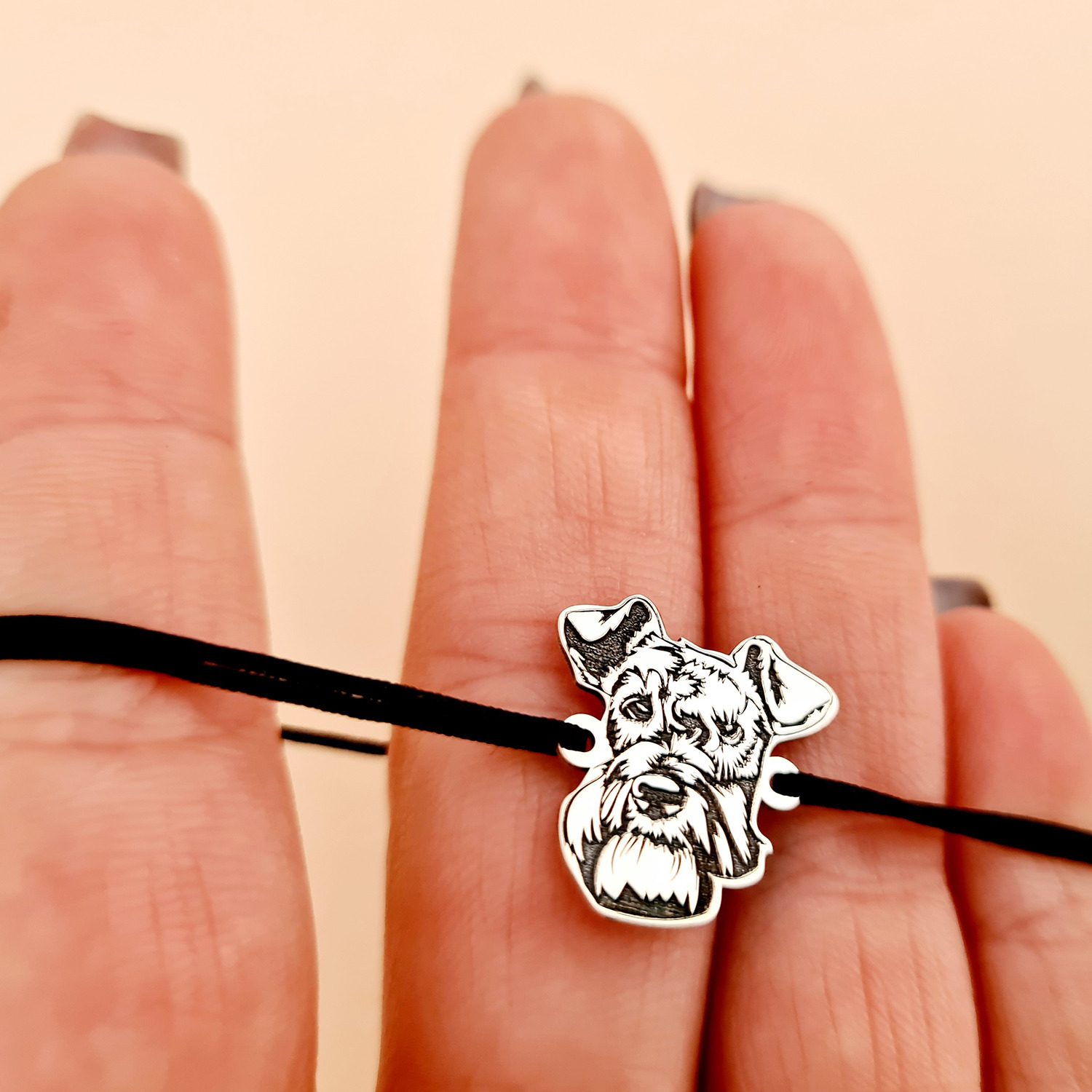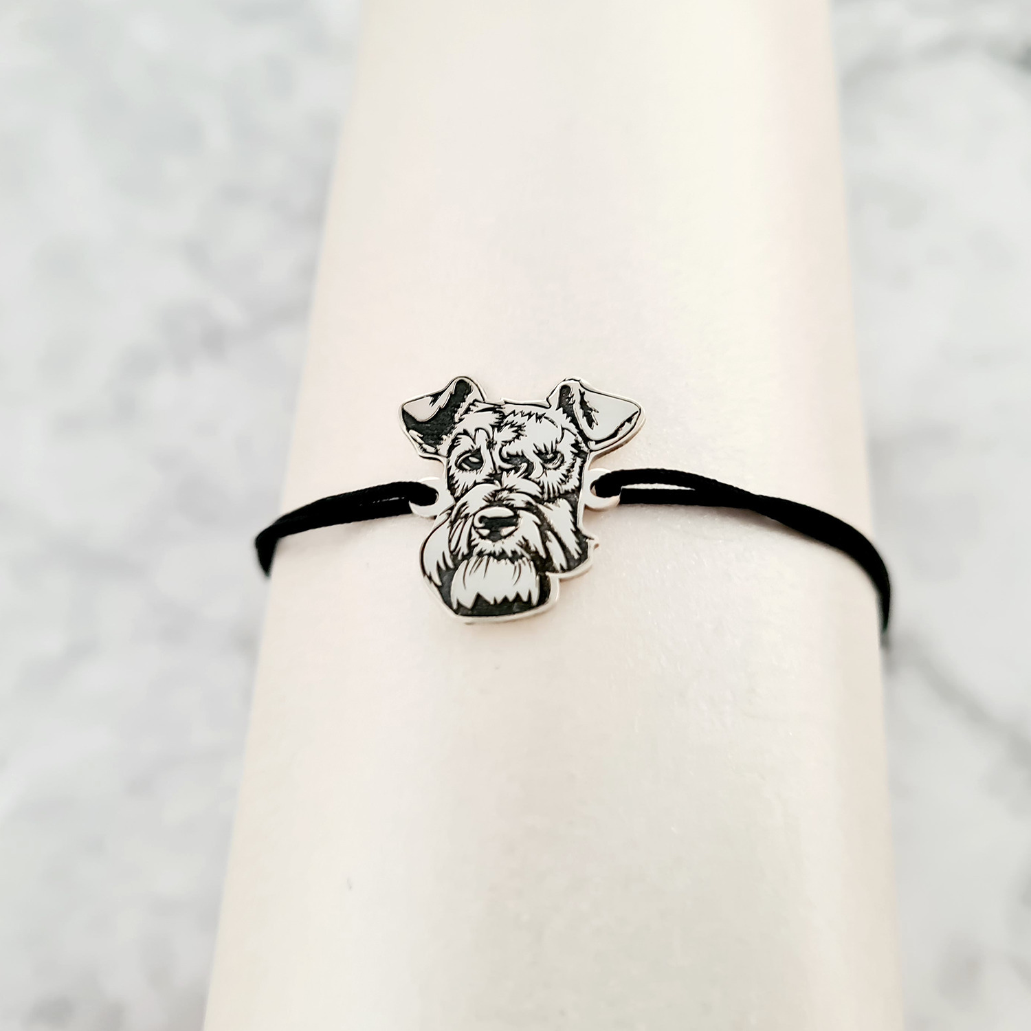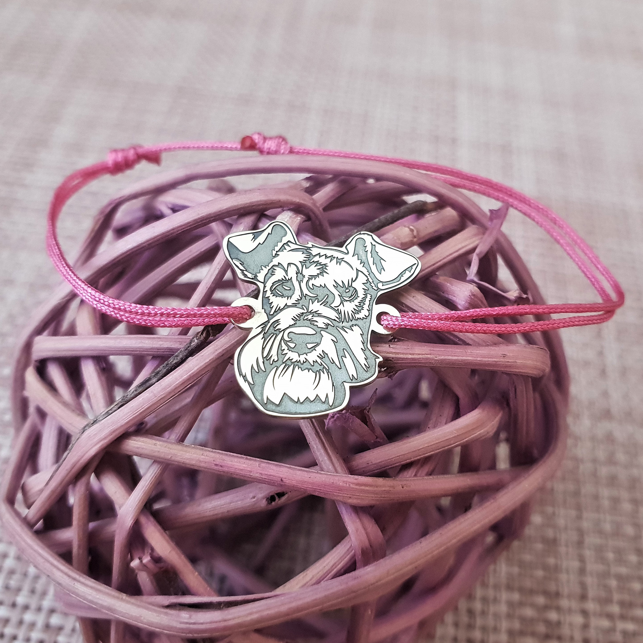 Bratara cap de Schnauzer- Argint 925, snur reglabil
