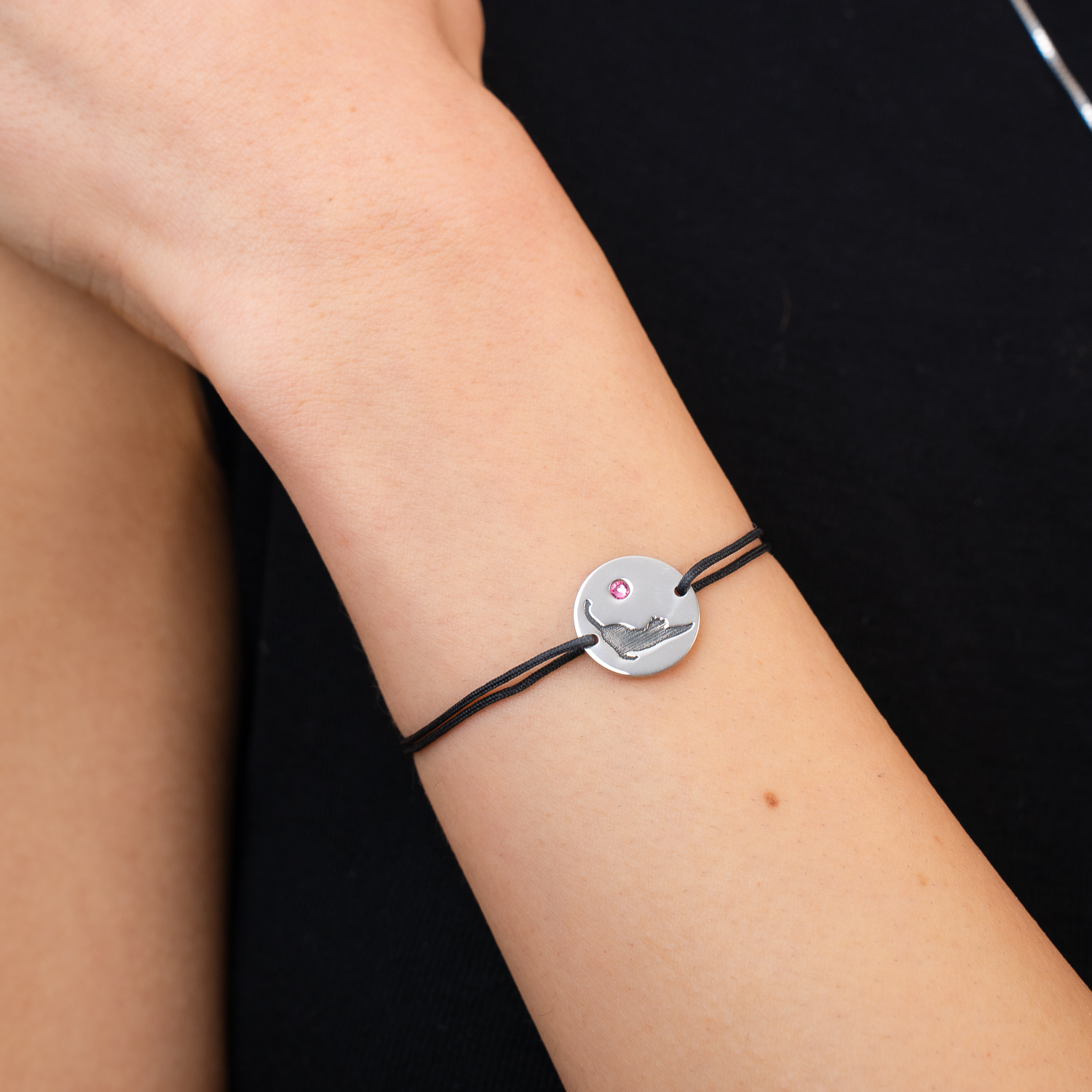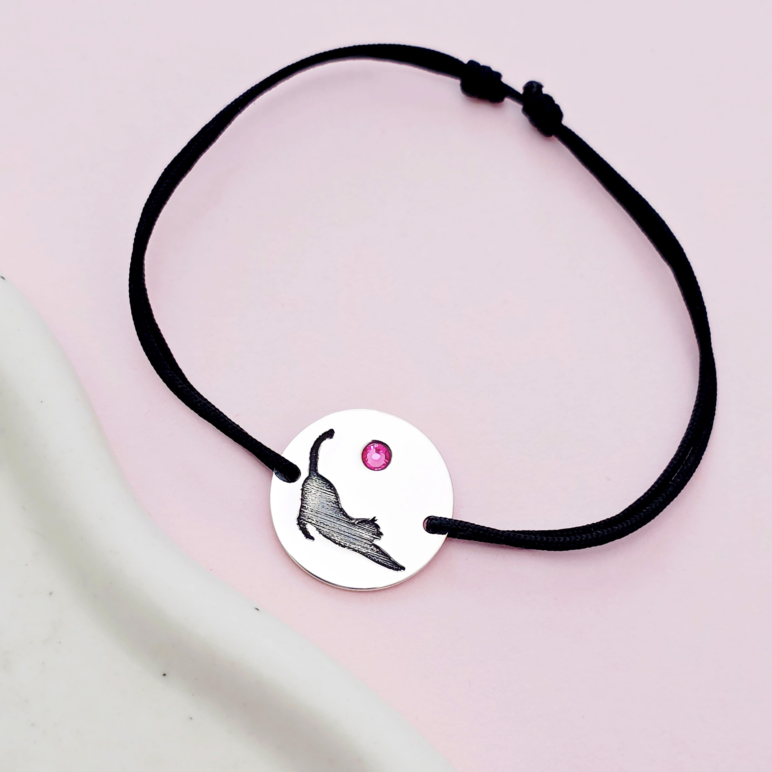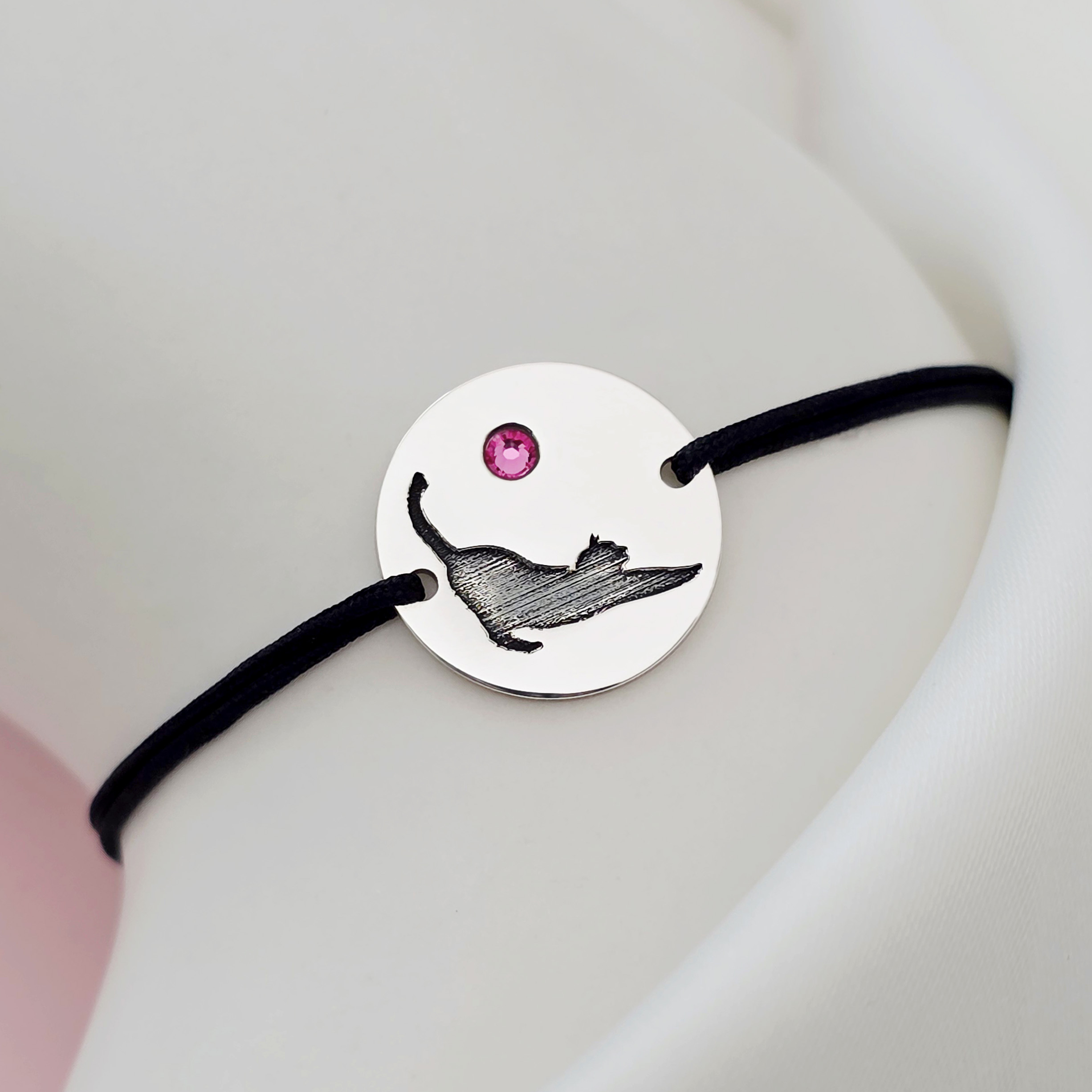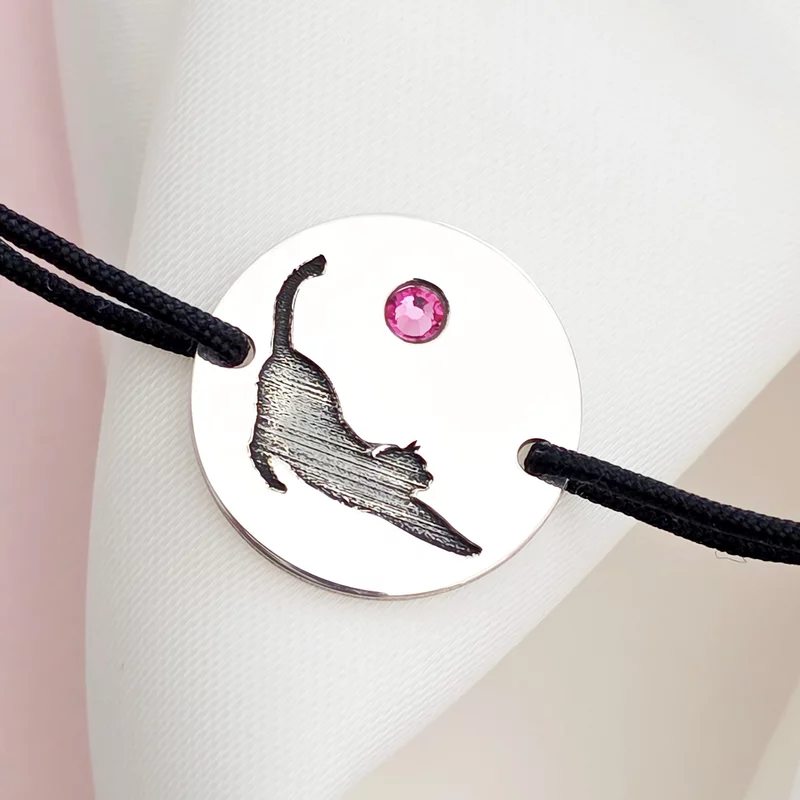 Bratara Pisica cu cristal Swarovski - Argint 925, snur negru