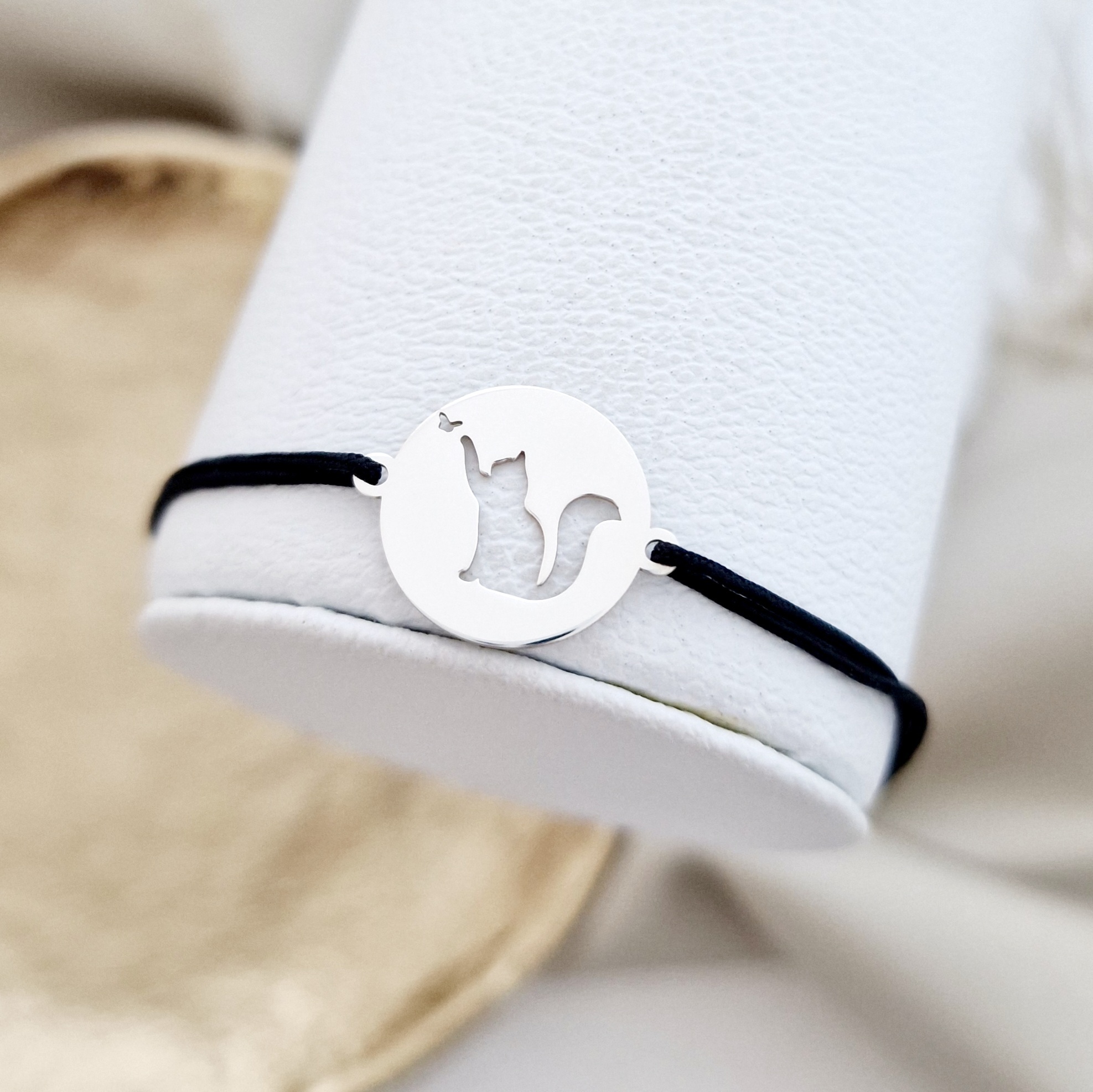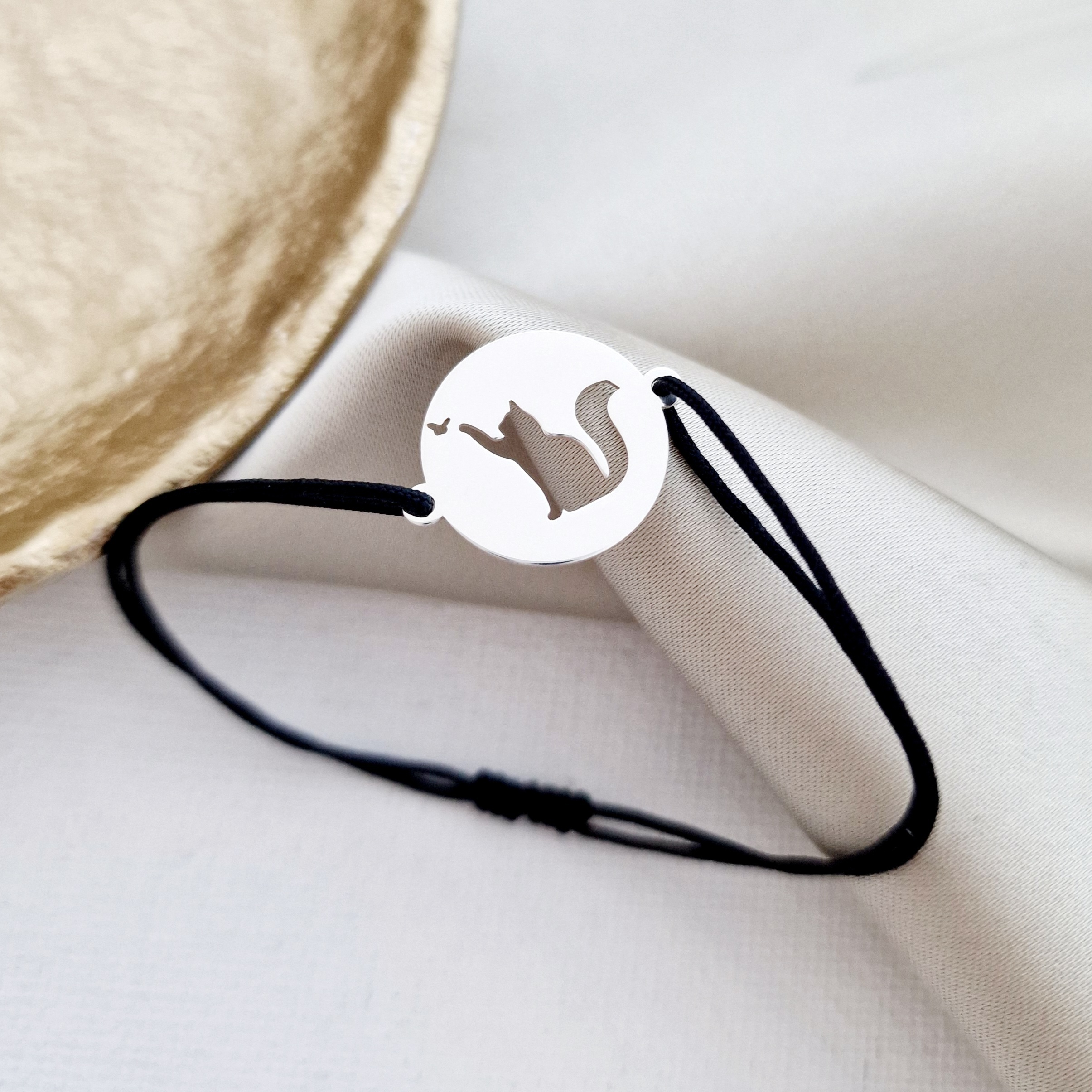 Bratara banut cu o pisica decupata, simpla si eleganta te va urmari oriunde vei pleca!