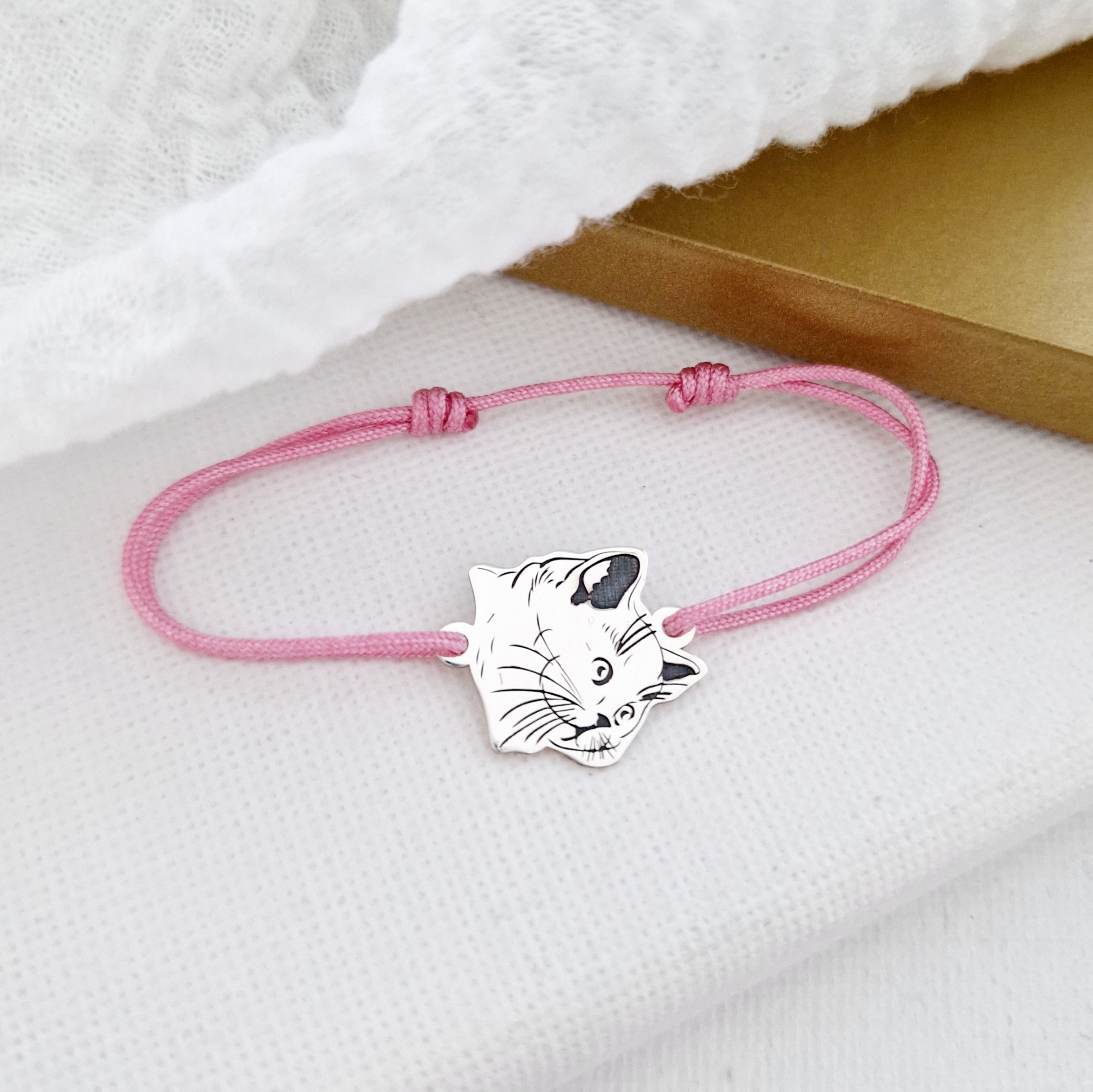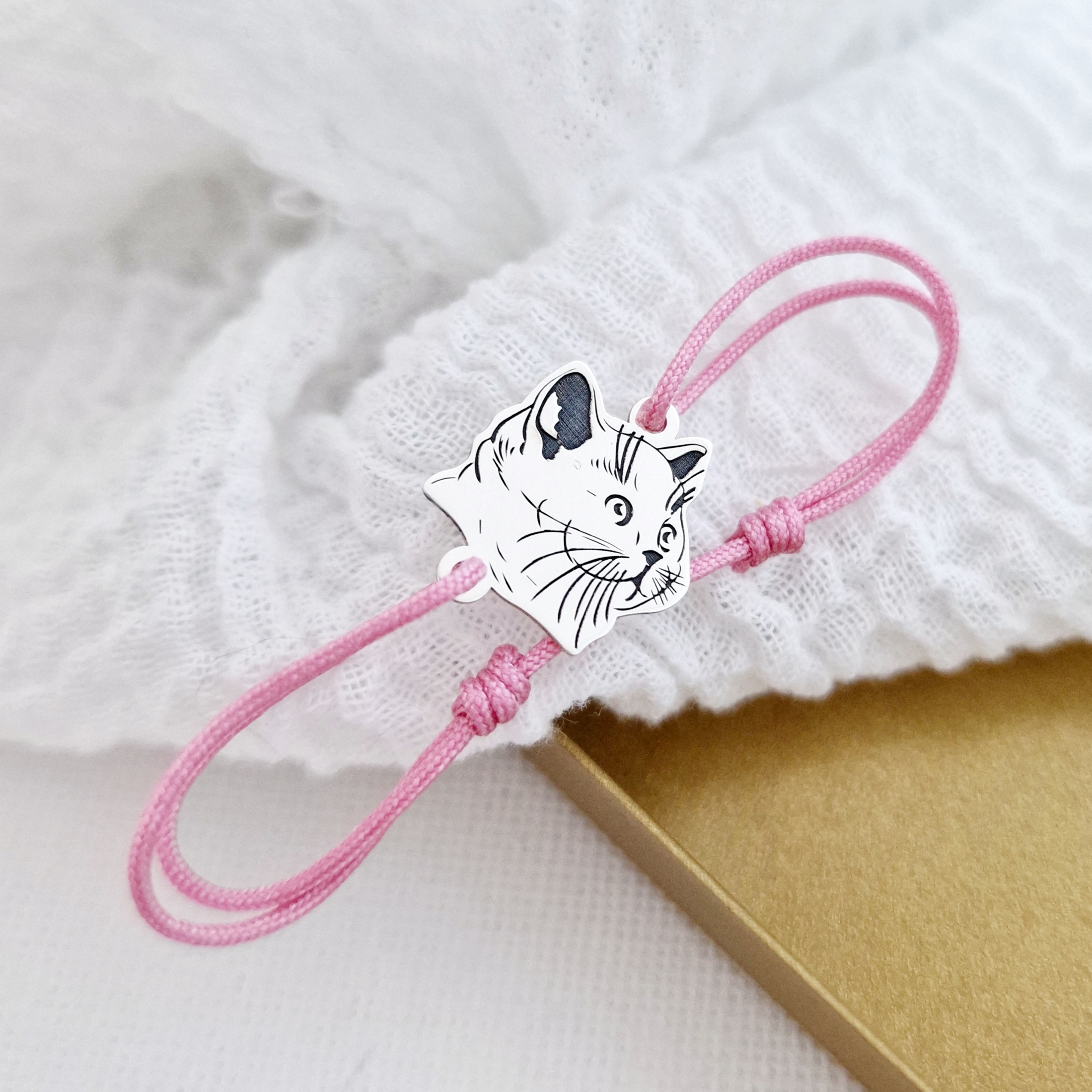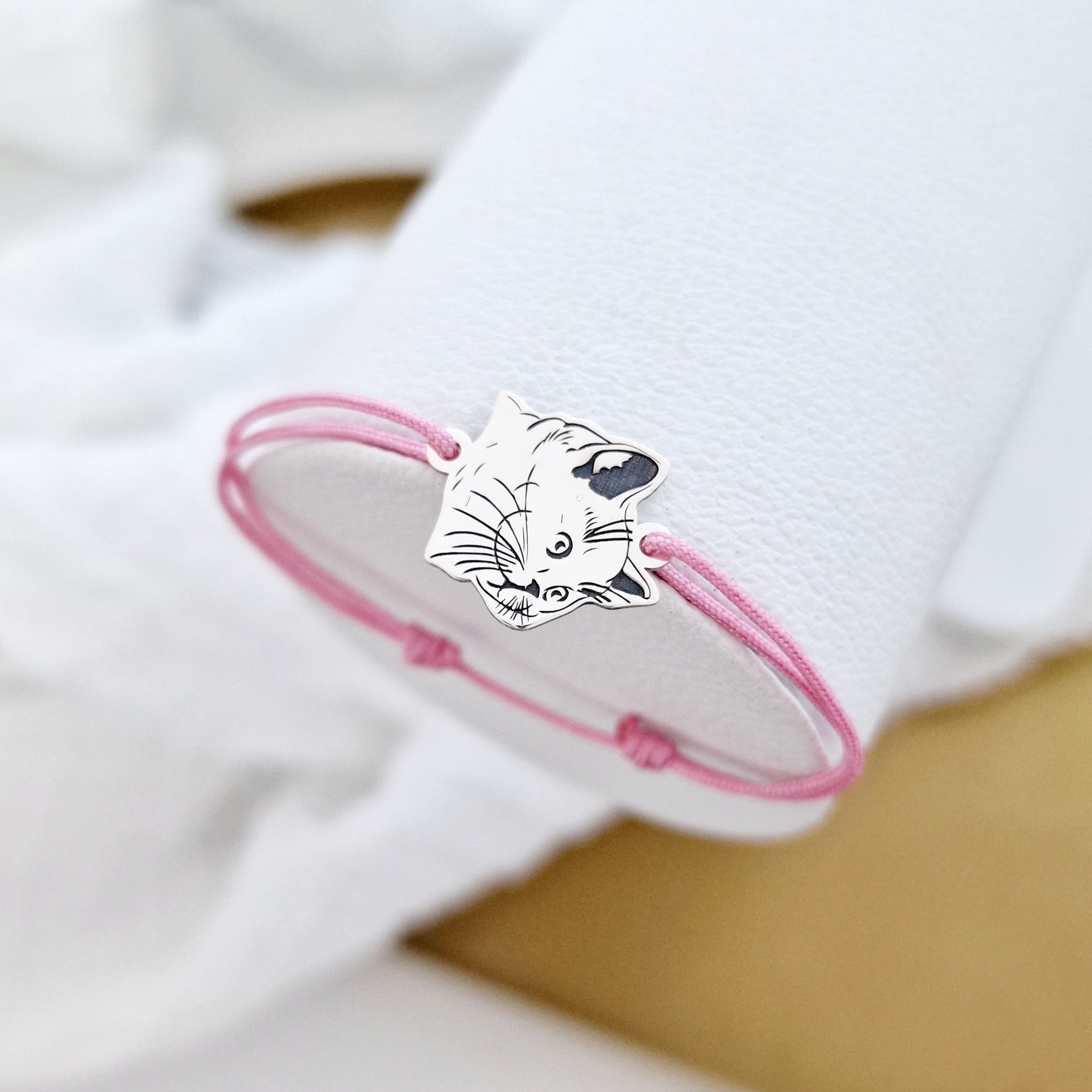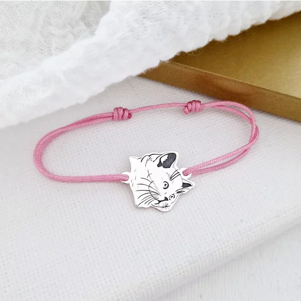 Bratara Pisica mustacioasa - Argint 925 - Snur reglabil, diverse culori