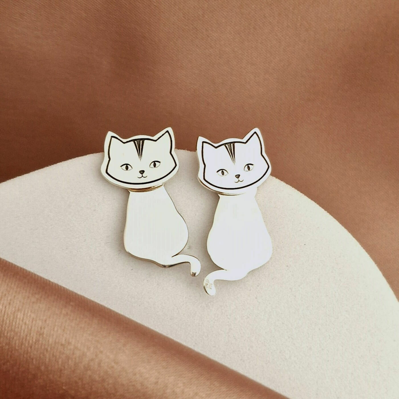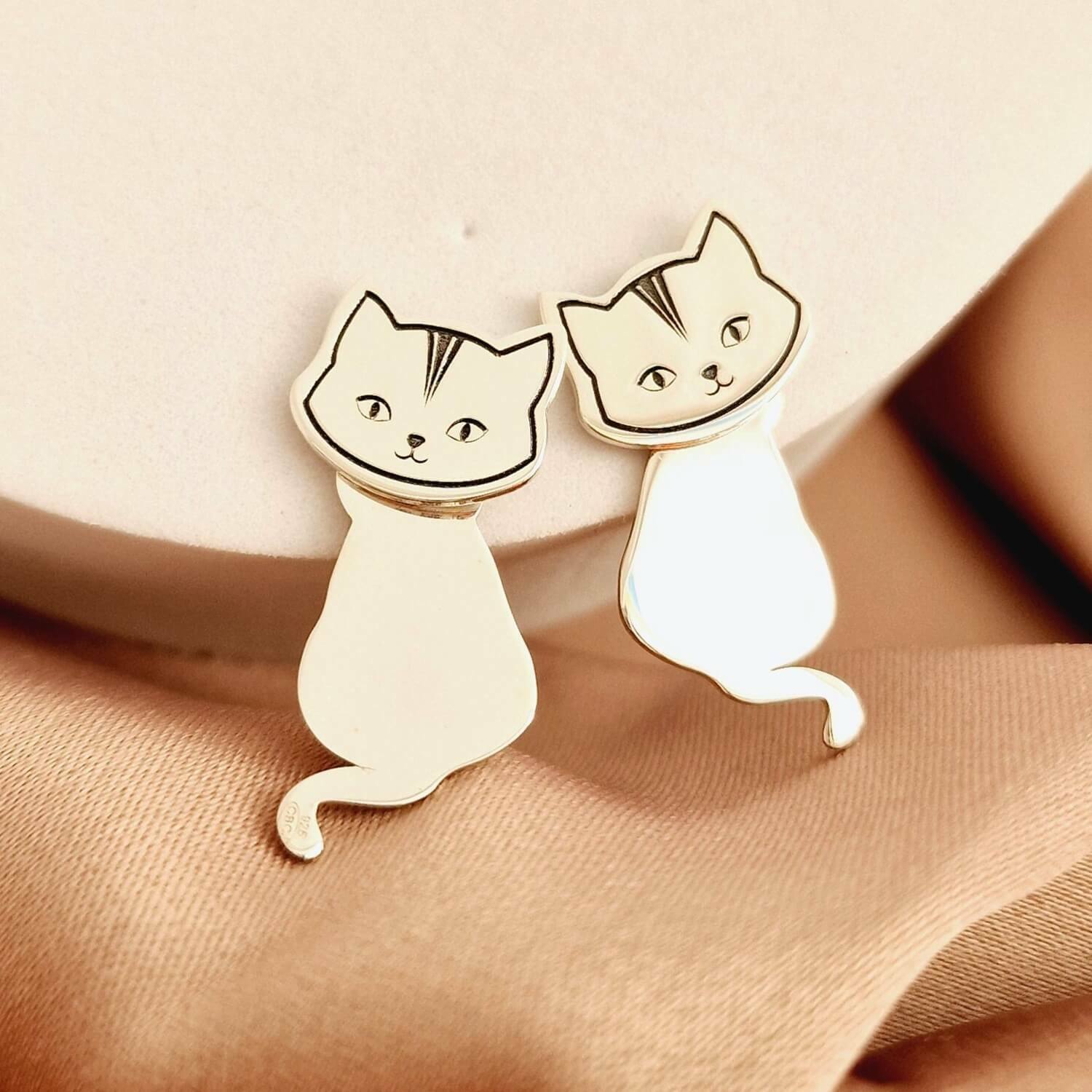 Cerceii sunt creati din doua bucati: fata pisici care vine pe partea din fata a lobului urechii si corpul pisicii care vine in spate pe tija cercelului, fiind fixat cu un fluturas. Bijuteria este create din Argint 925 prin taiere si gravare laser de ultima generatie, in atelierul nostru.
