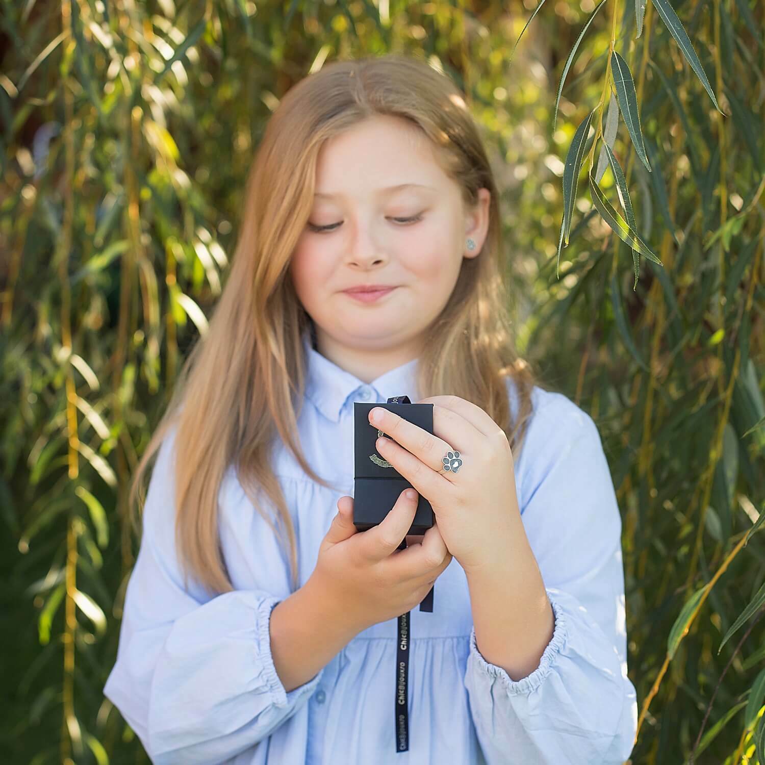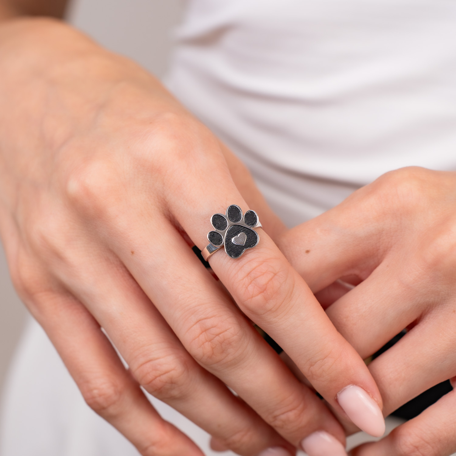 Acest inel delicat din Argint 925, decorat cu o labuță fin conturată, este alegerea perfectă pentru iubitorii de animale și pentru cei care își doresc un accesoriu cu semnificație. Realizat cu măiestrie, inelul este reglabil, potrivindu-se confortabil pe orice deget.