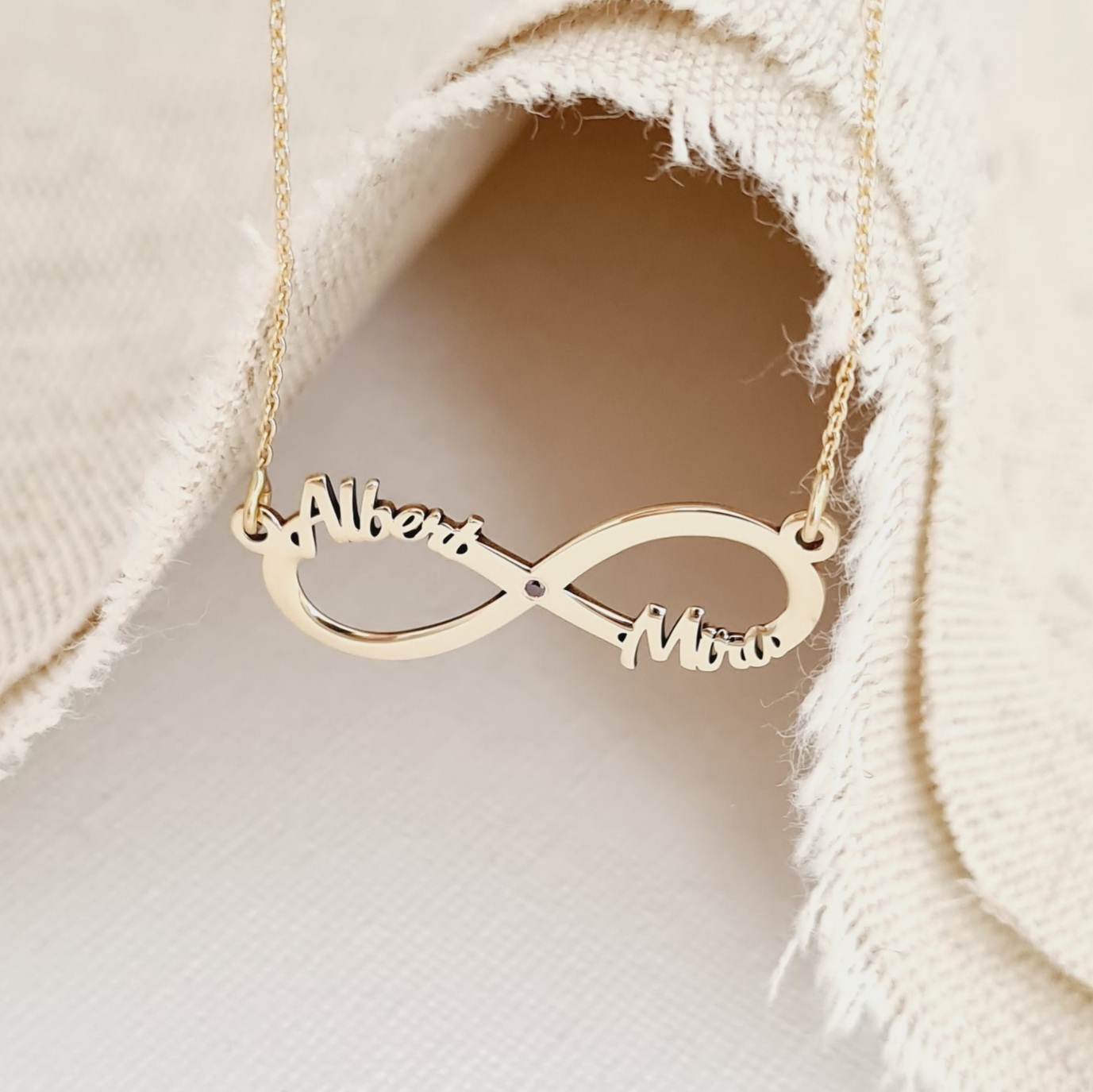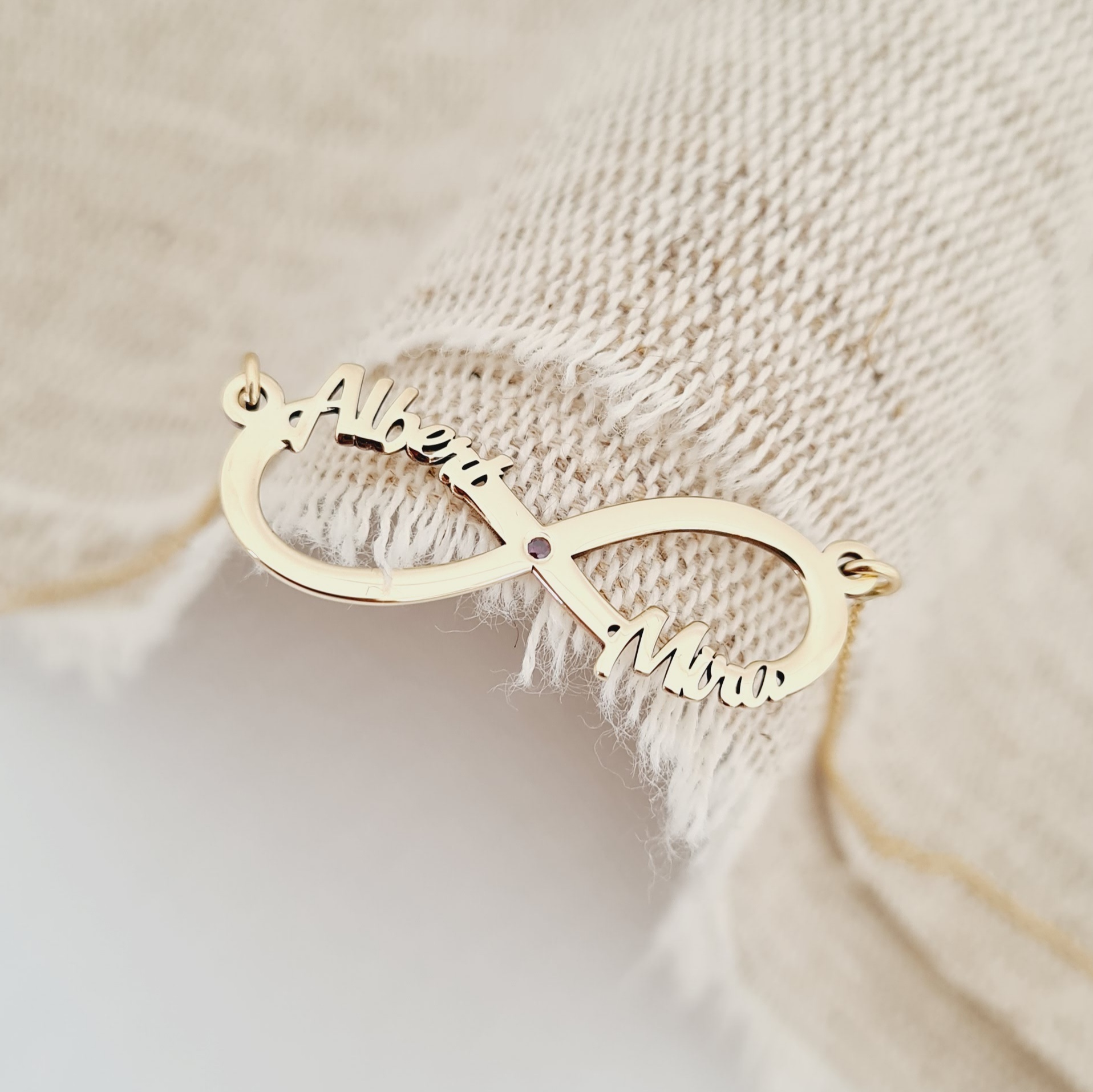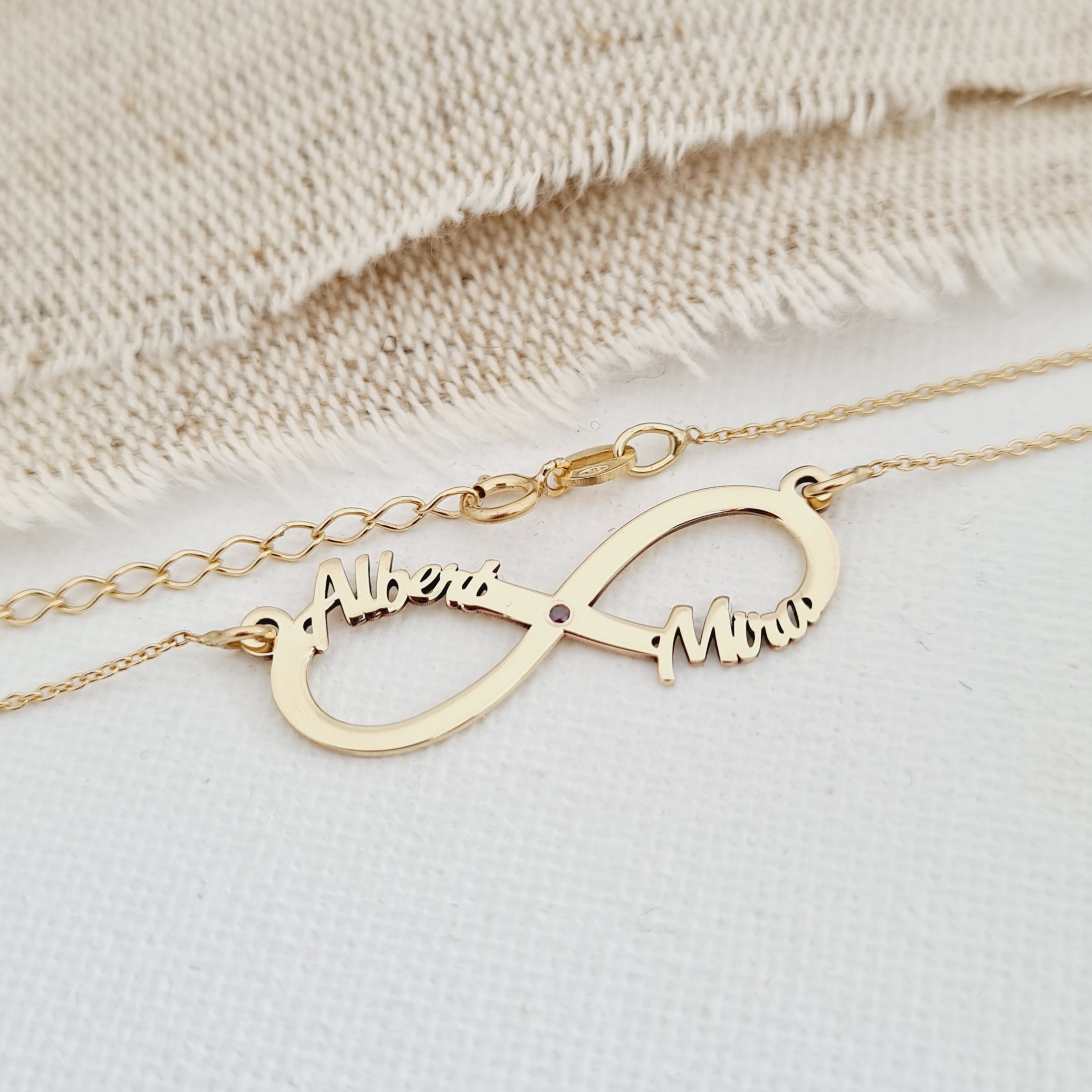 Un design elegant si frumos, simbolul infinit ∞ este asociat cu iubirea eterna, nelimitata si fara de sfarsit. Astfel bijuteria cu simbolul infinit si doua nume decupate exprima dragostea vesnica. Ce ar putea fi mai romantic decat asta?