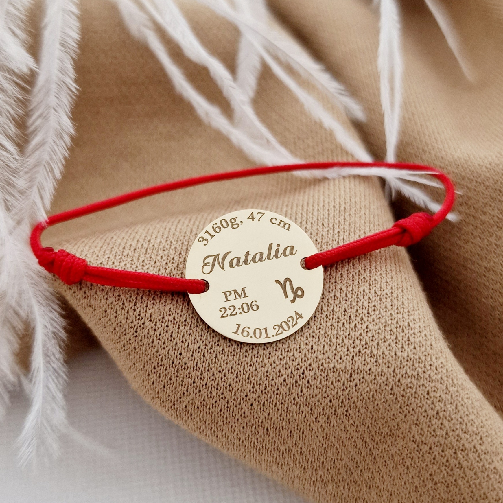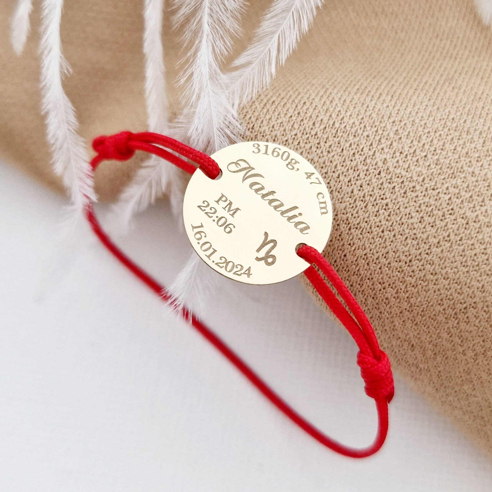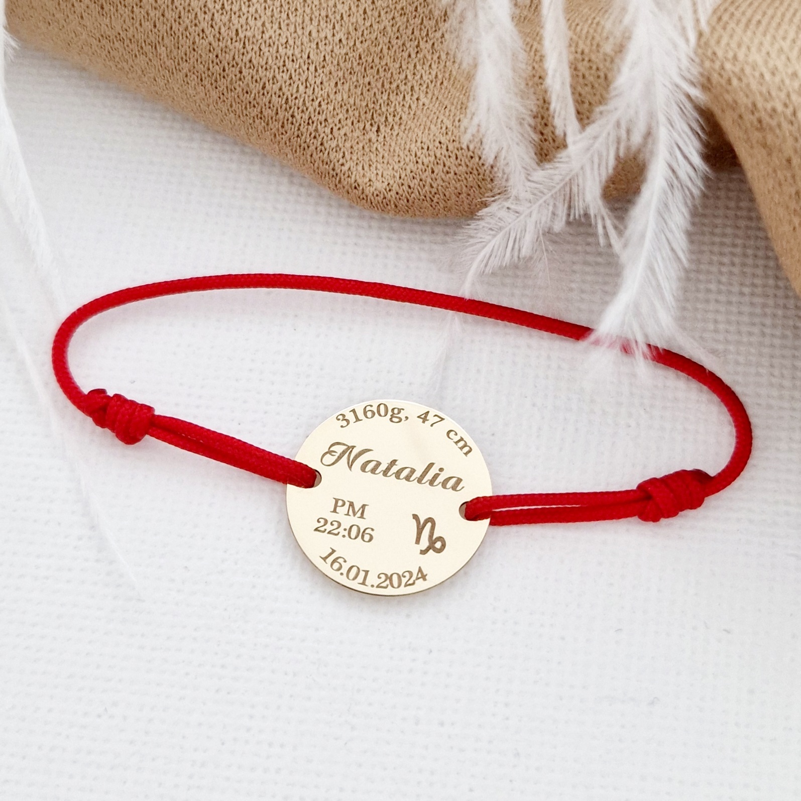 Fie ca este vorba de o mica printesa sau un mic print ce urmeaza sa primeasca taina botezului, marcheaza acest eveniment special asa cum se cuvine printr-o bratara banut special creata din Aur de 9K care contine numele micutului/micutei, data si ora nasterii, semnul zodiacal, precum si greutatea si inaltimea avuta la nastere.