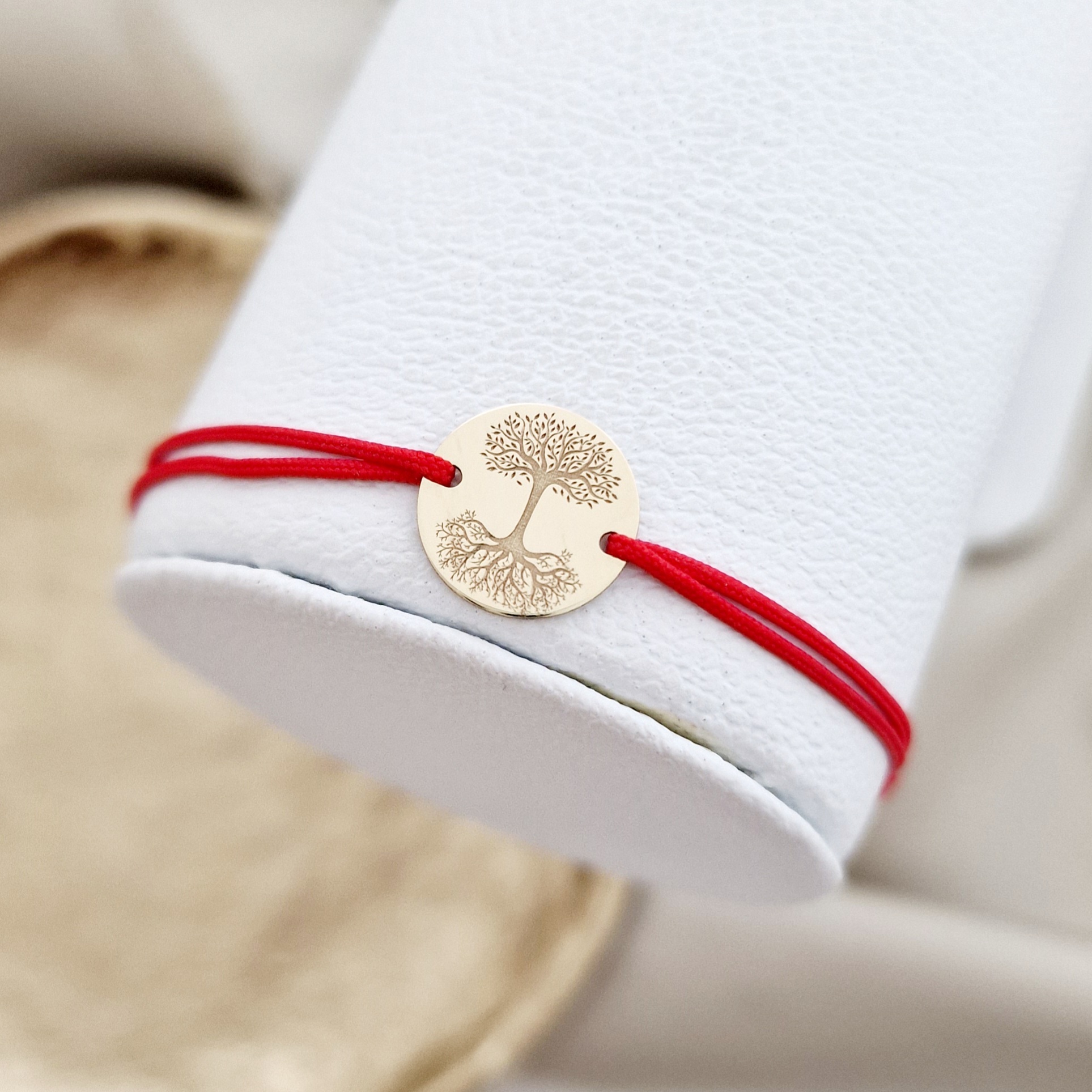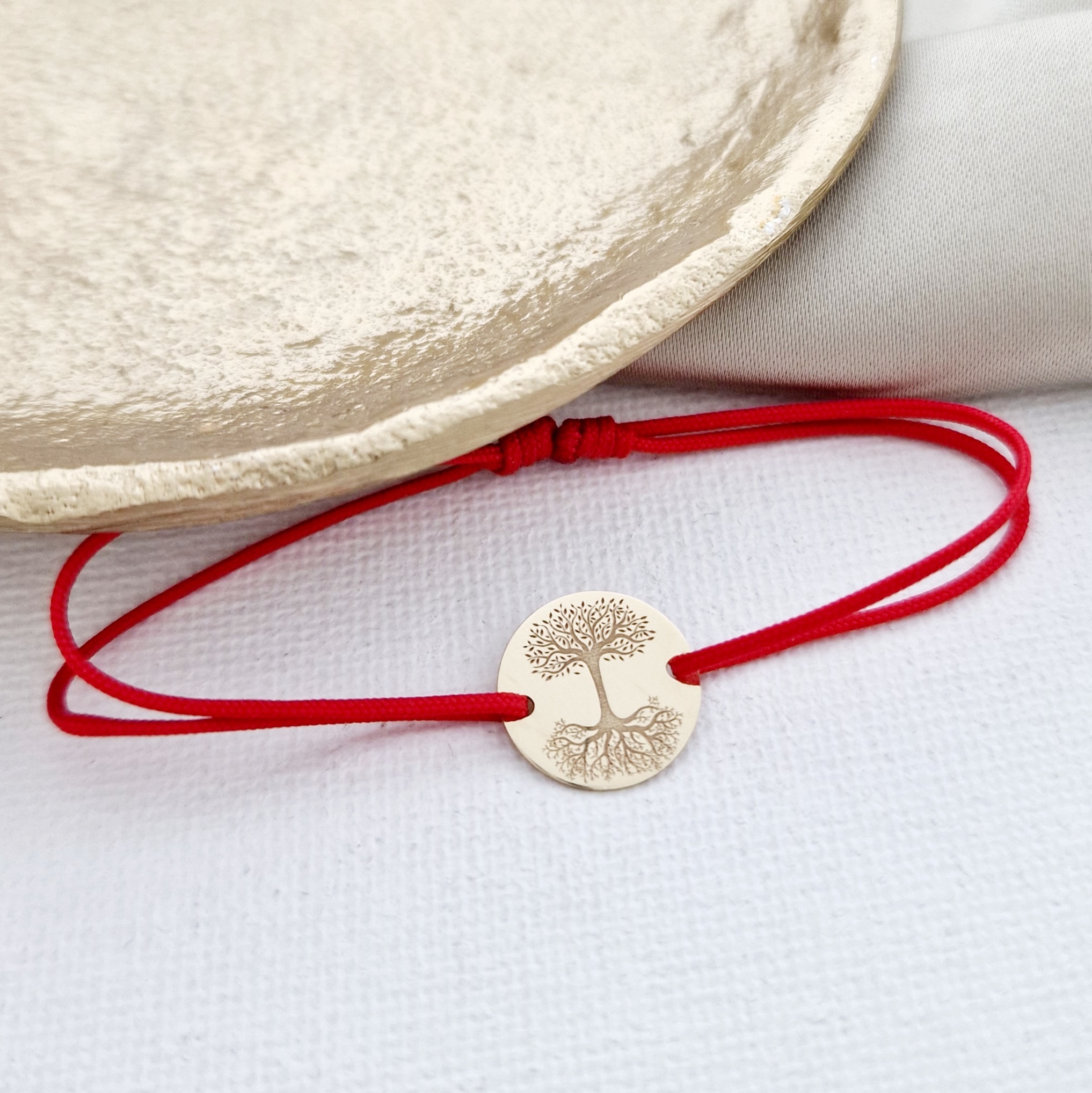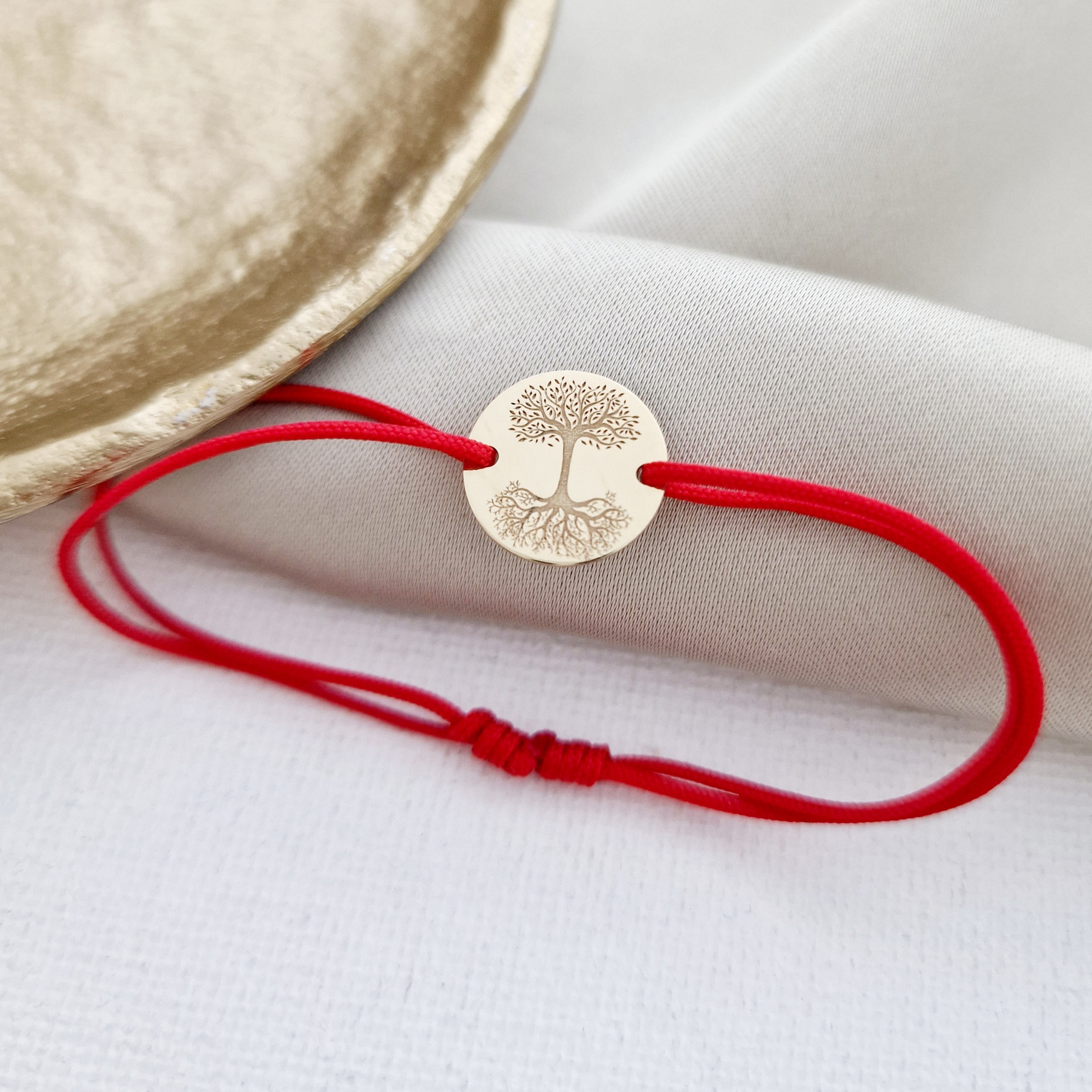 Bratara Copacul Vietii Oglindit - banut 12 mm - Aur Galben 9K - snur reglabil