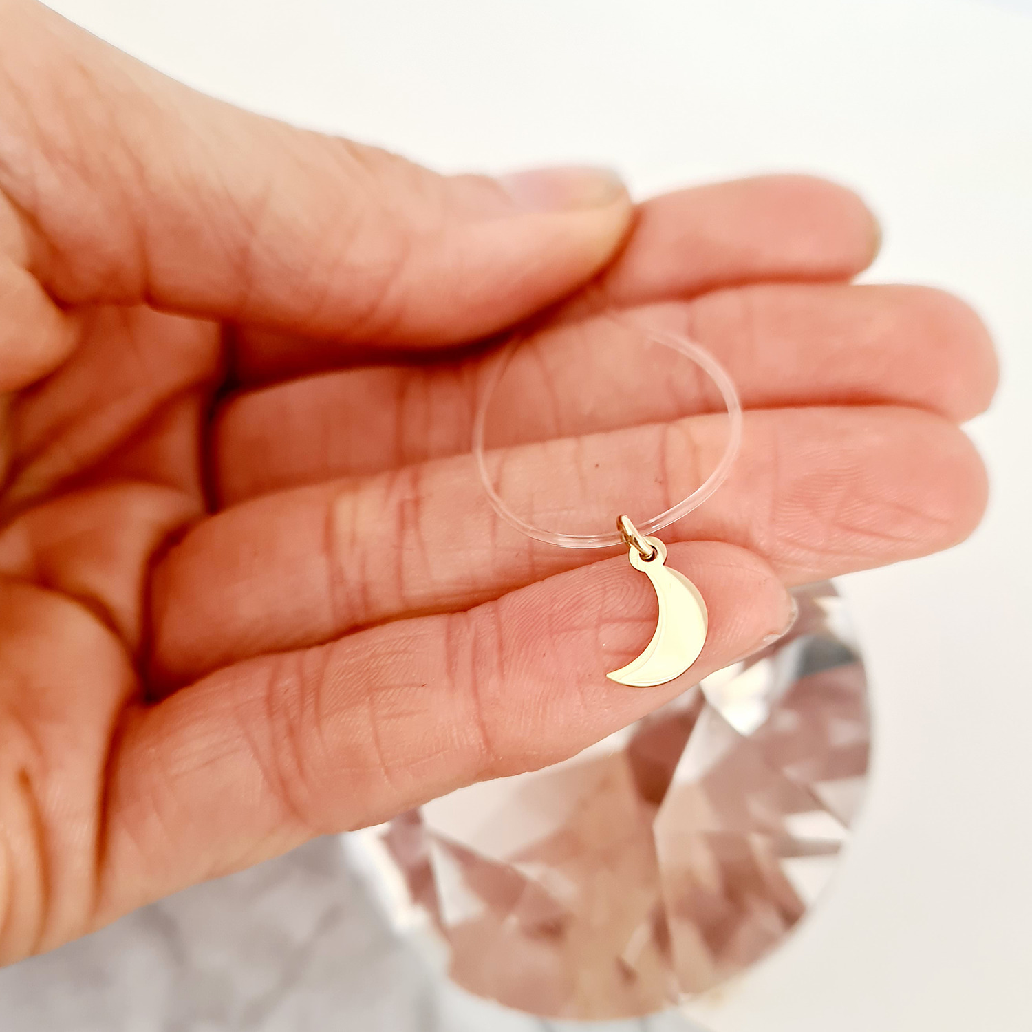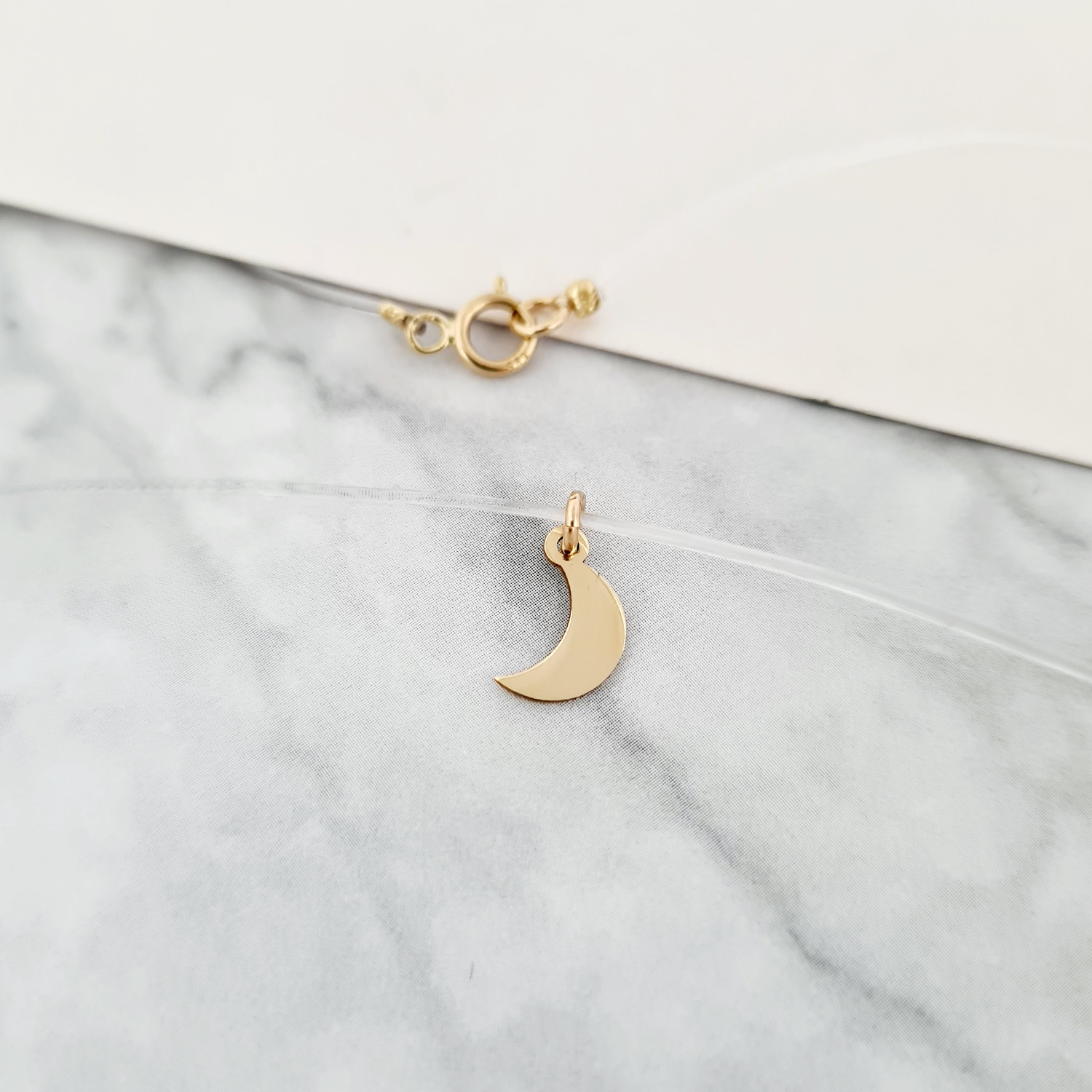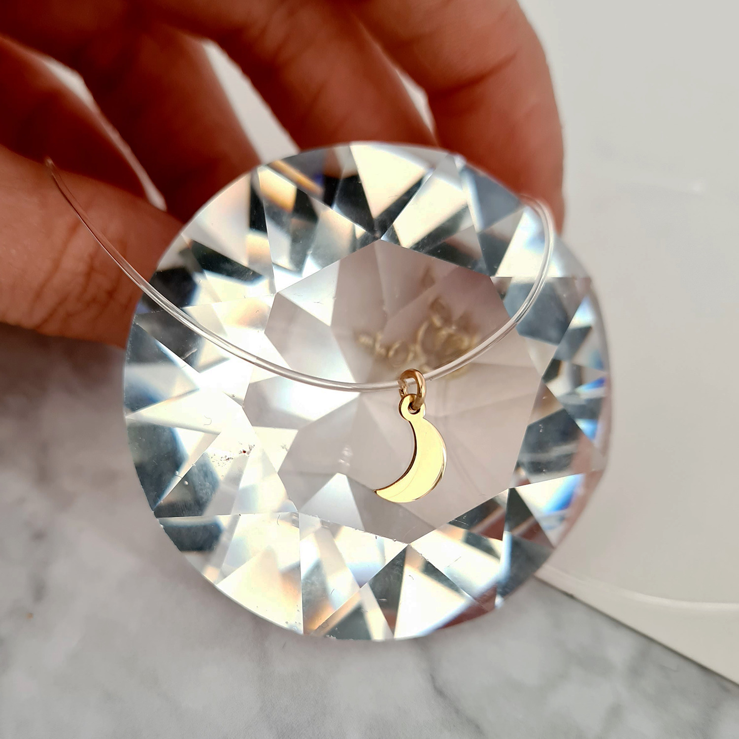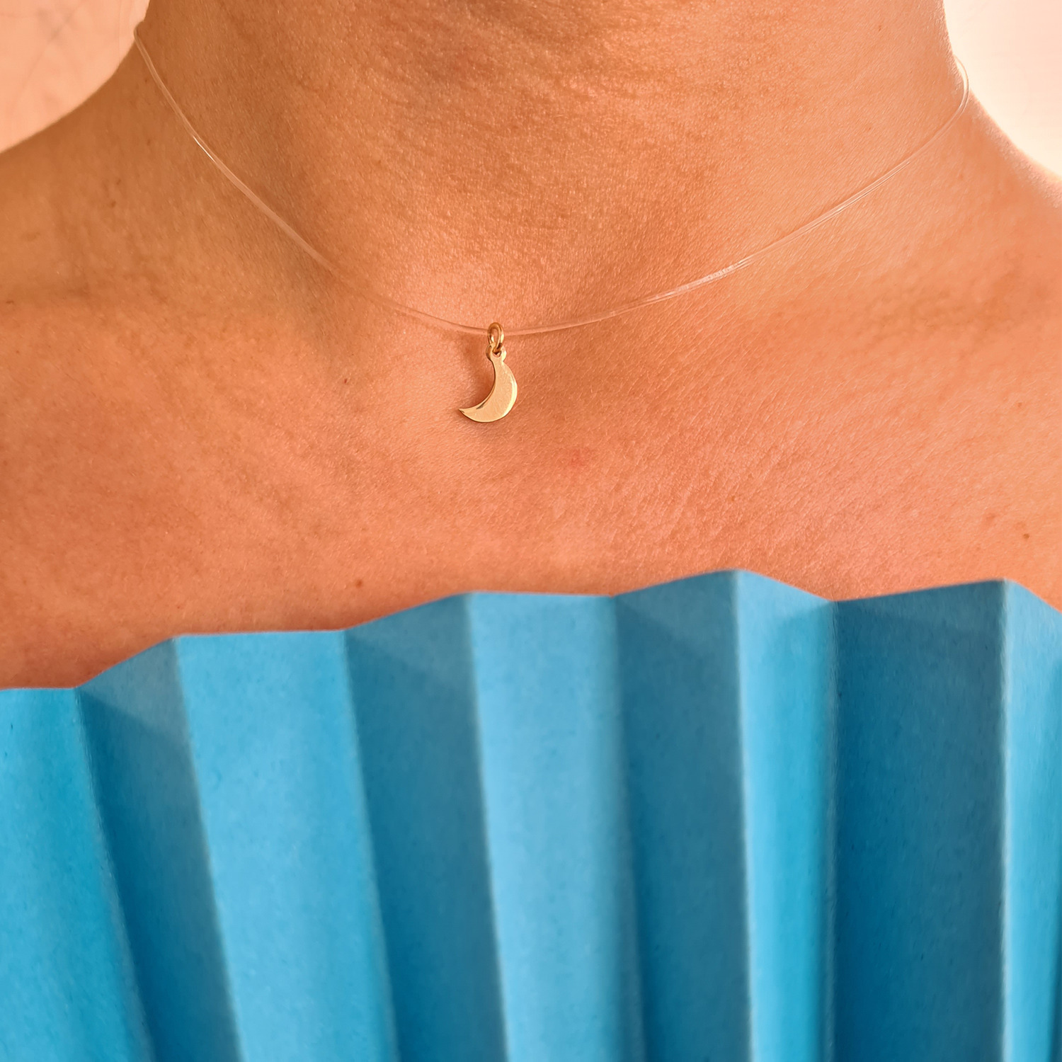 Choker Aur Galben 14K - Pandantiv Semiluna - Lant silicon cu inchizatoare carabina
