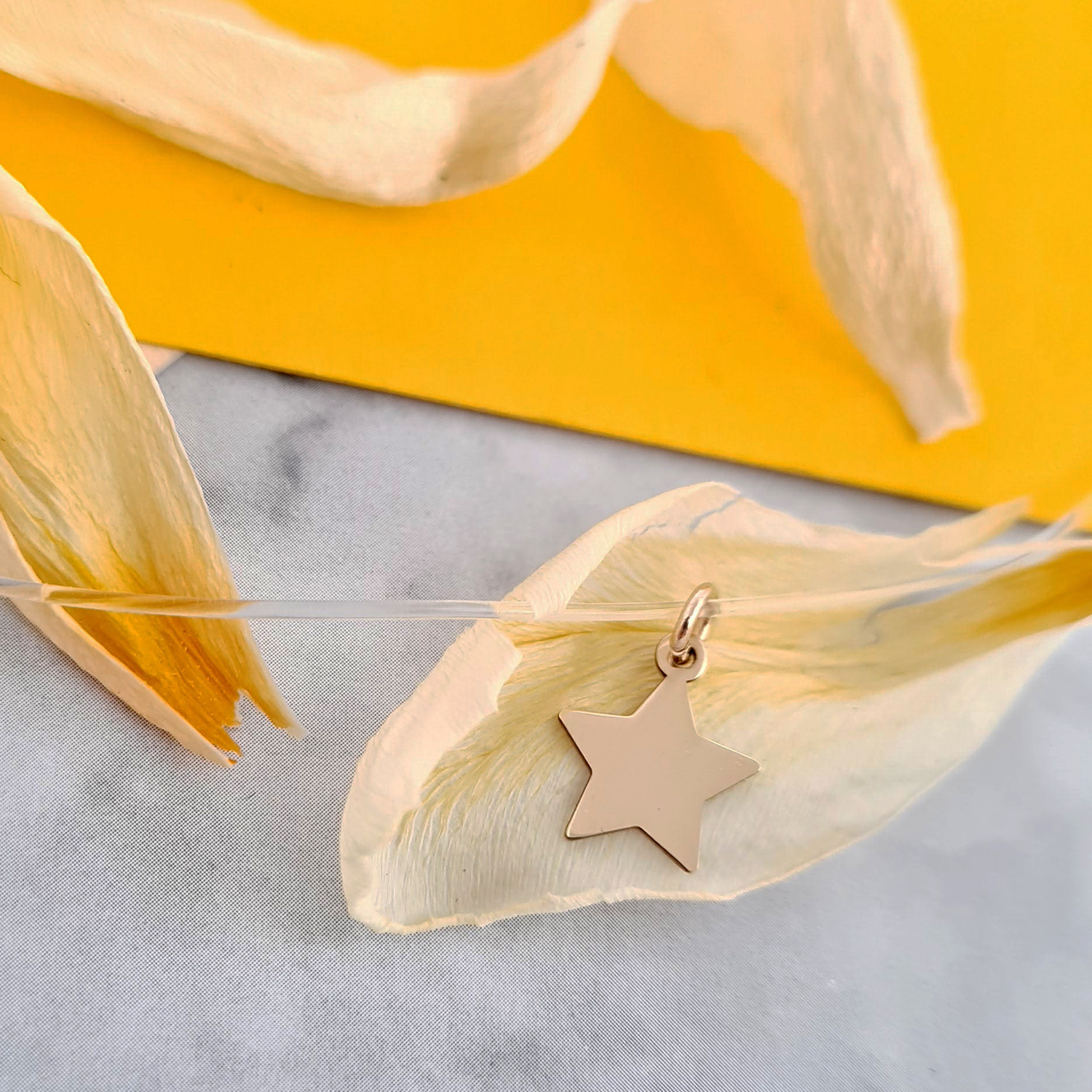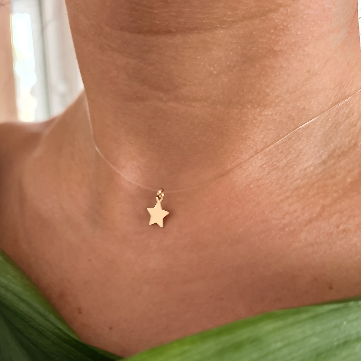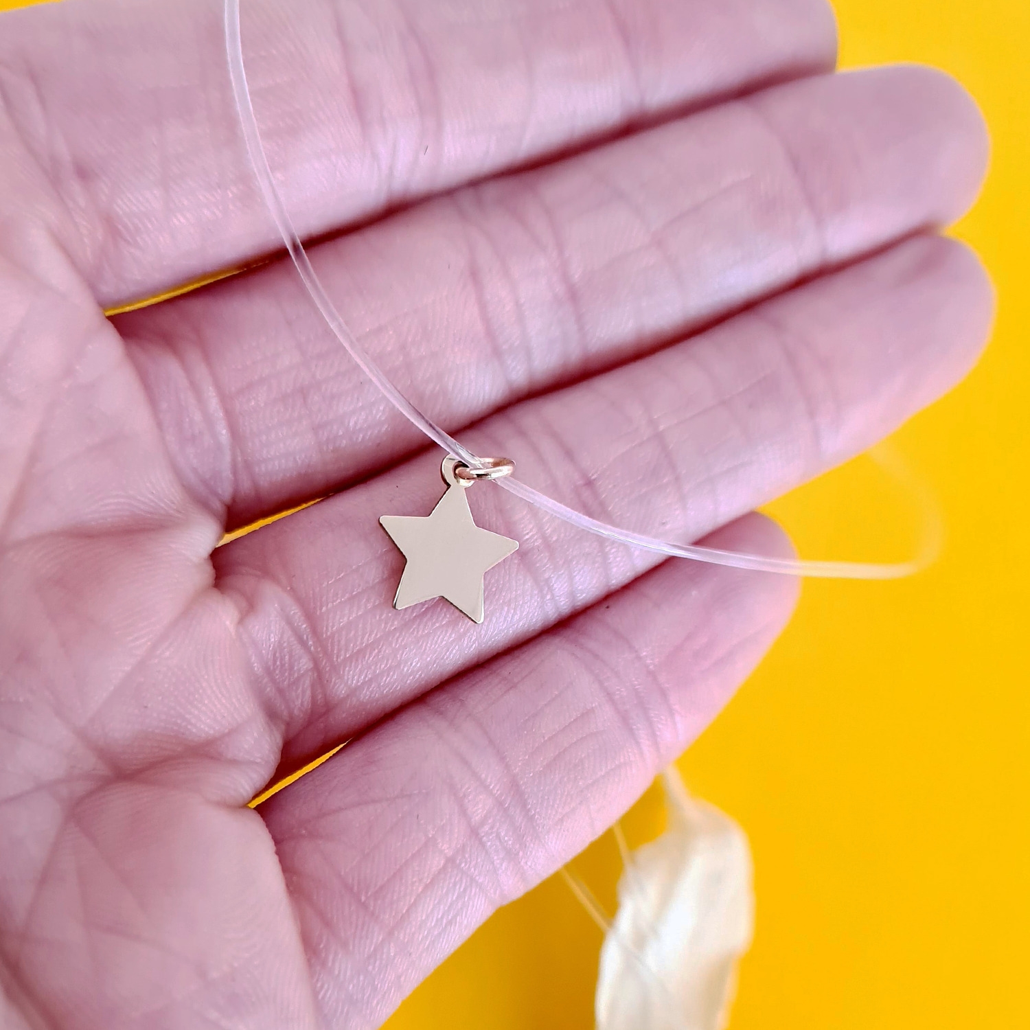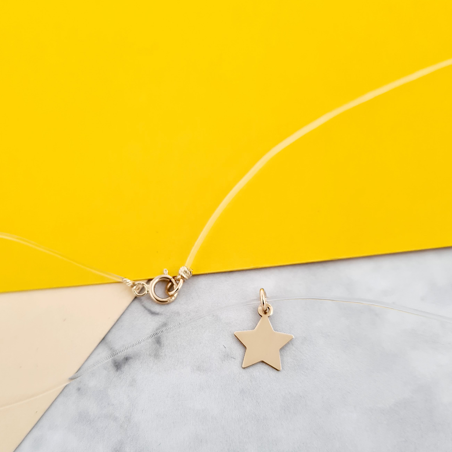 Choker Aur Galben 14K - Pandantiv Steluta - Lant silicon cu inchizatoare carabina