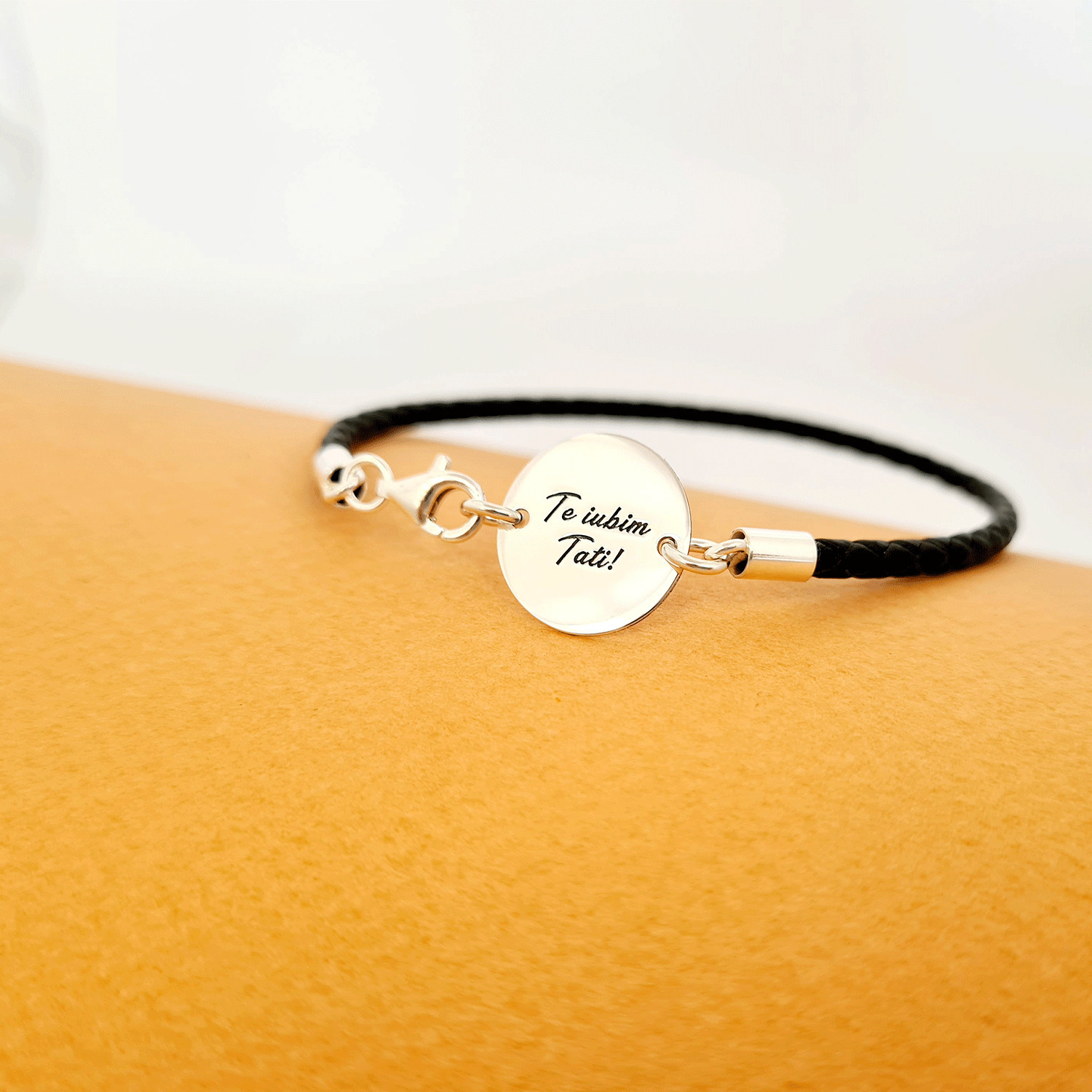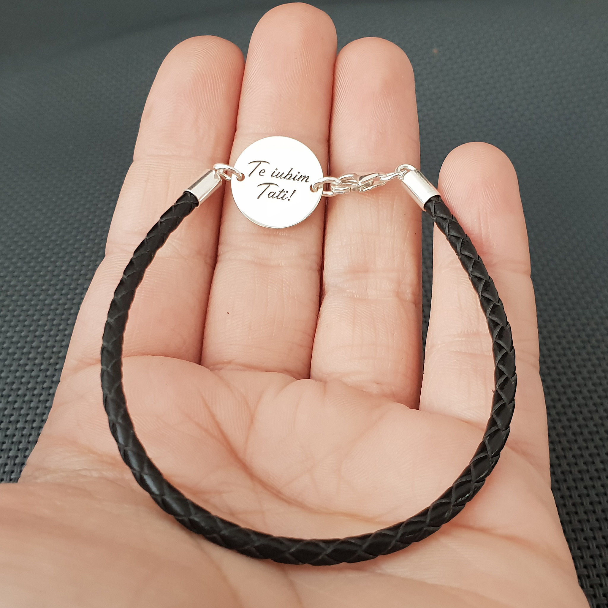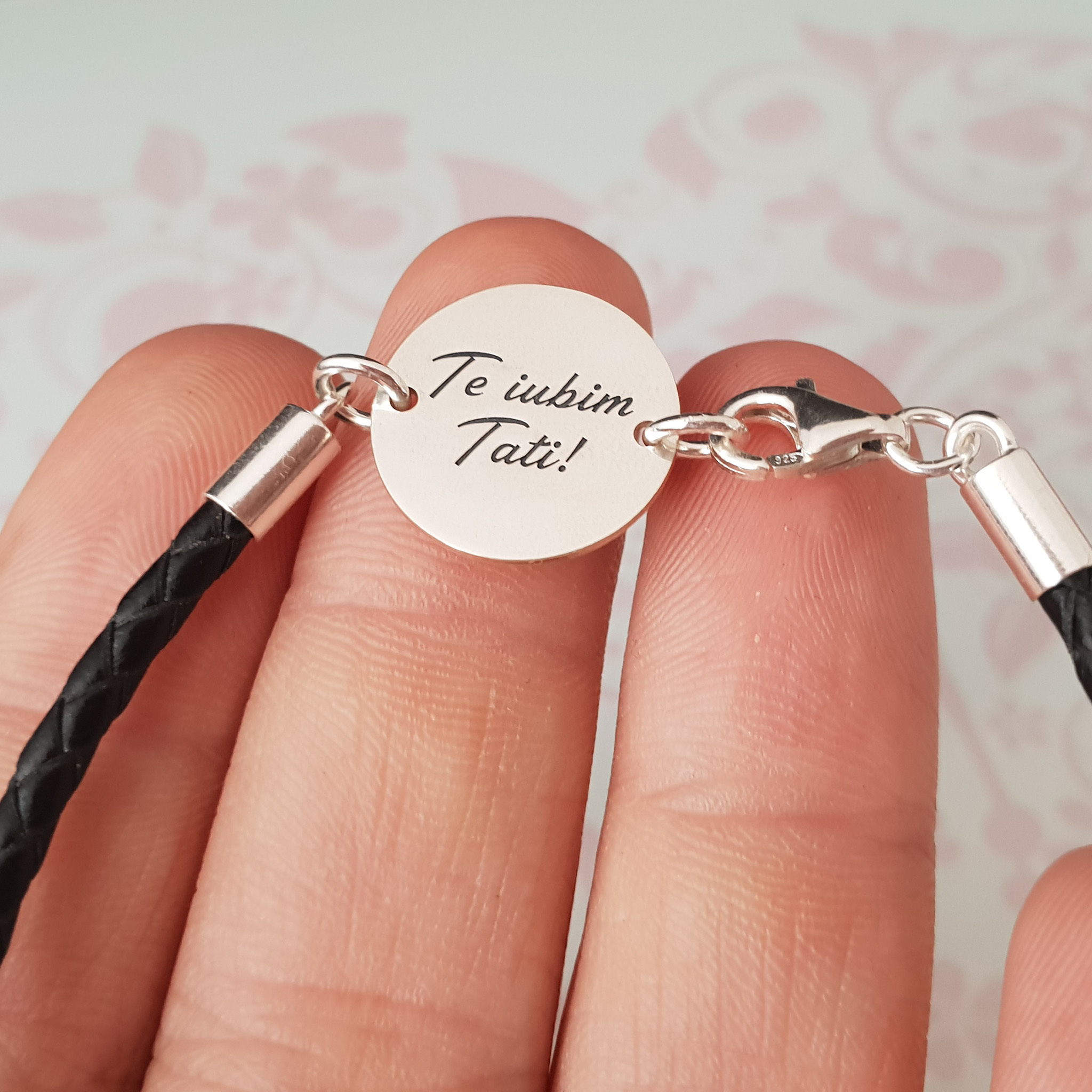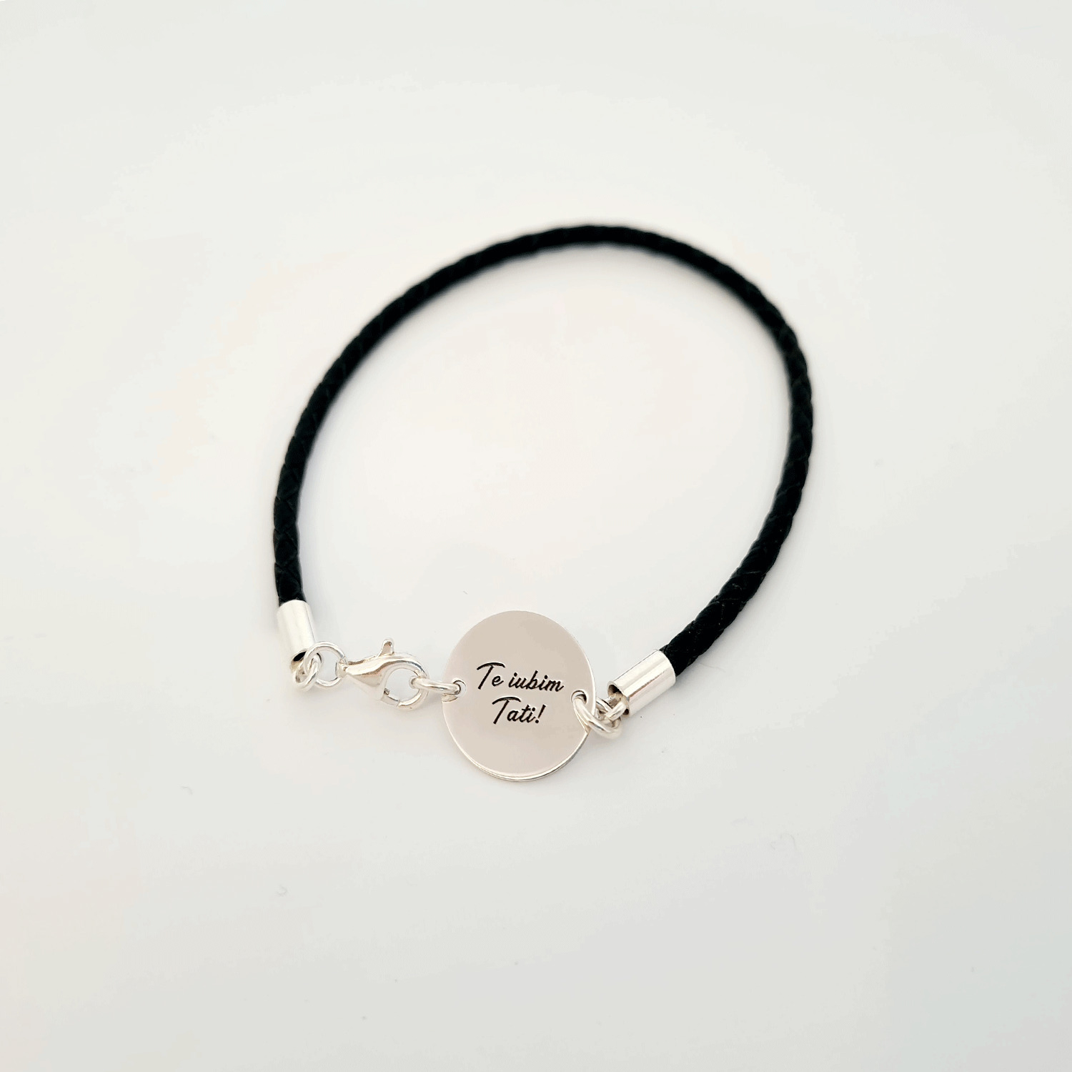 Bratara banut cu mesaj - Te iubim tati - Argint 925, piele impletita