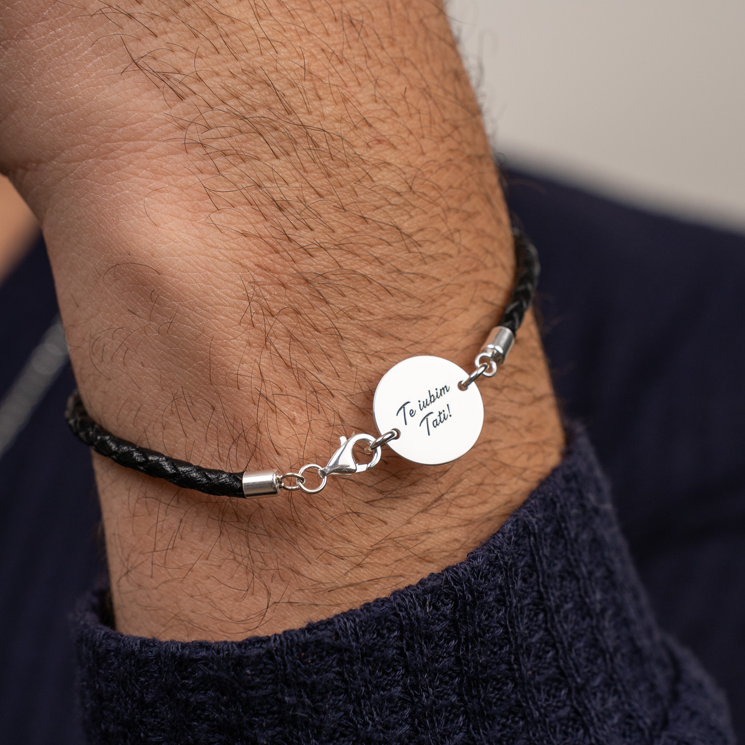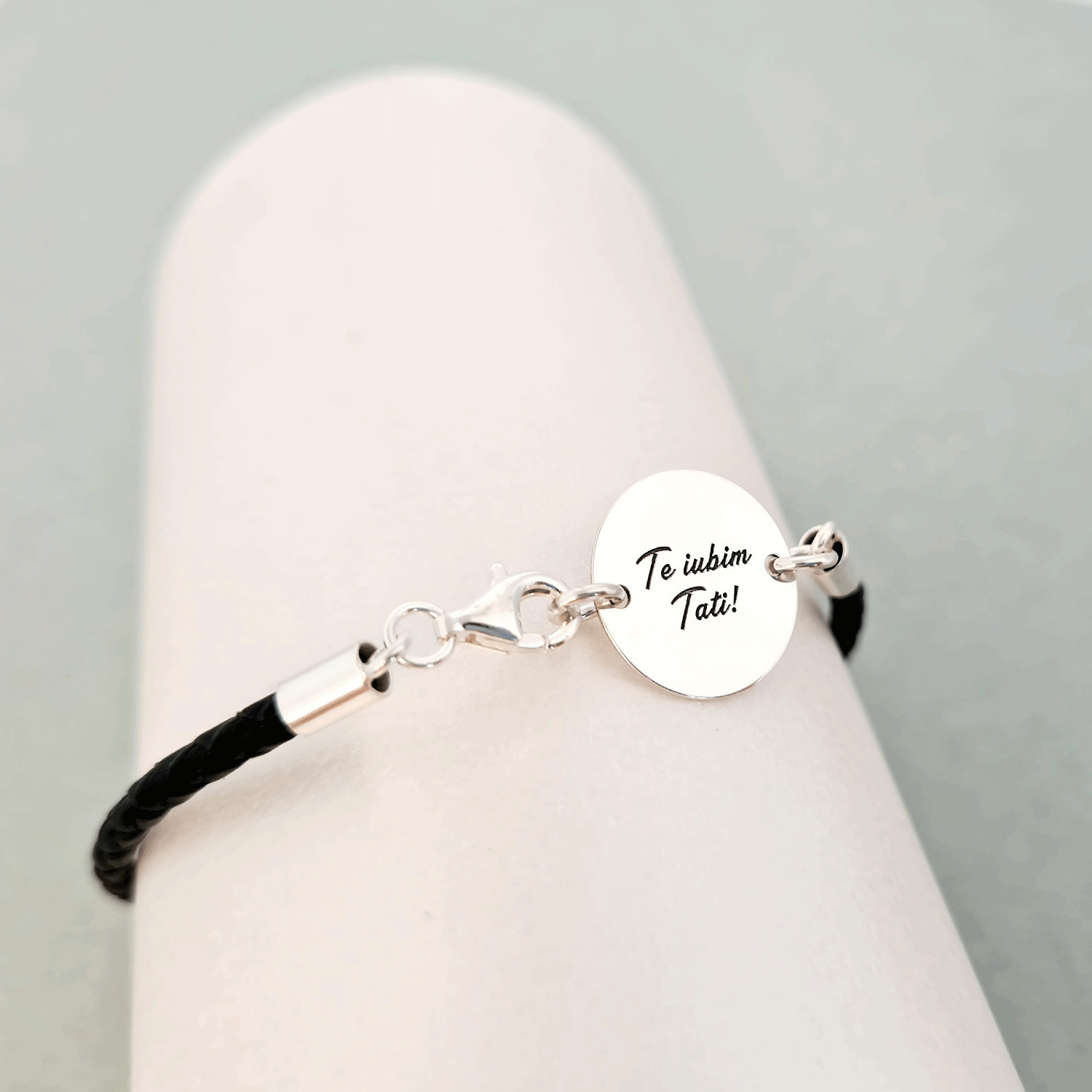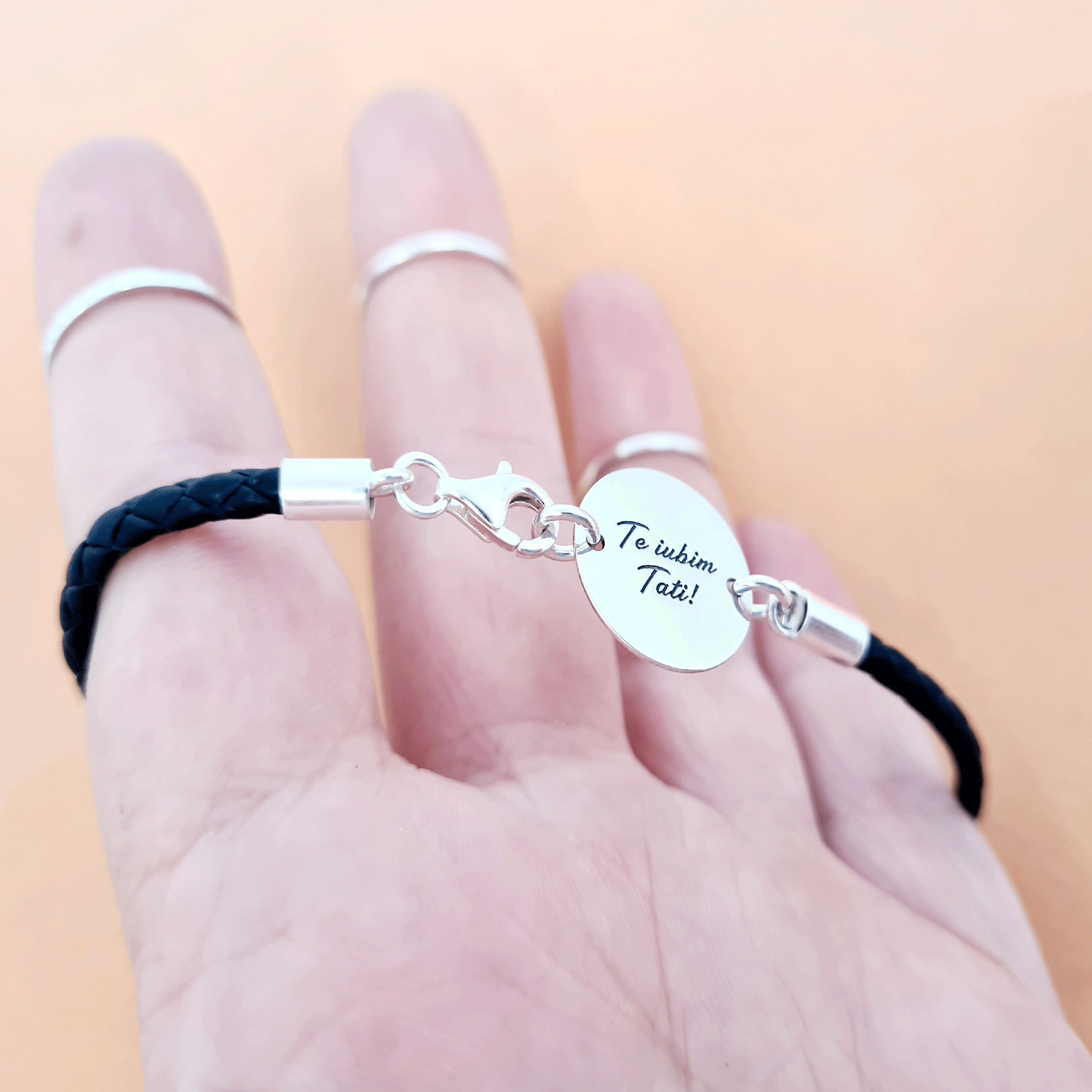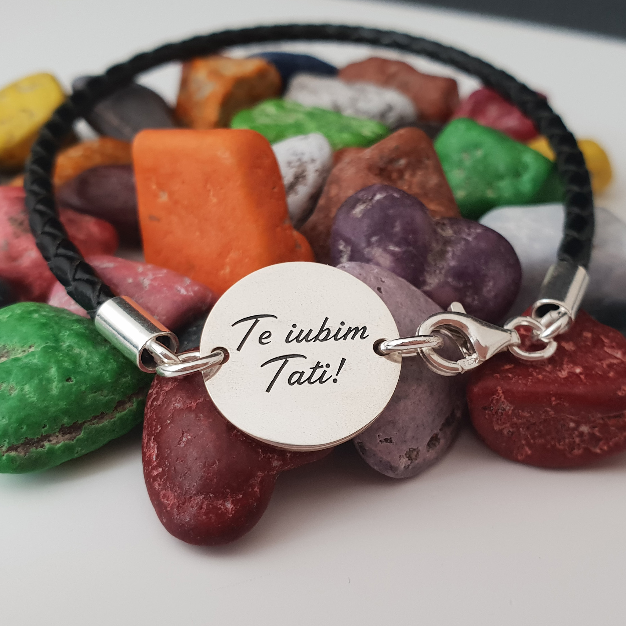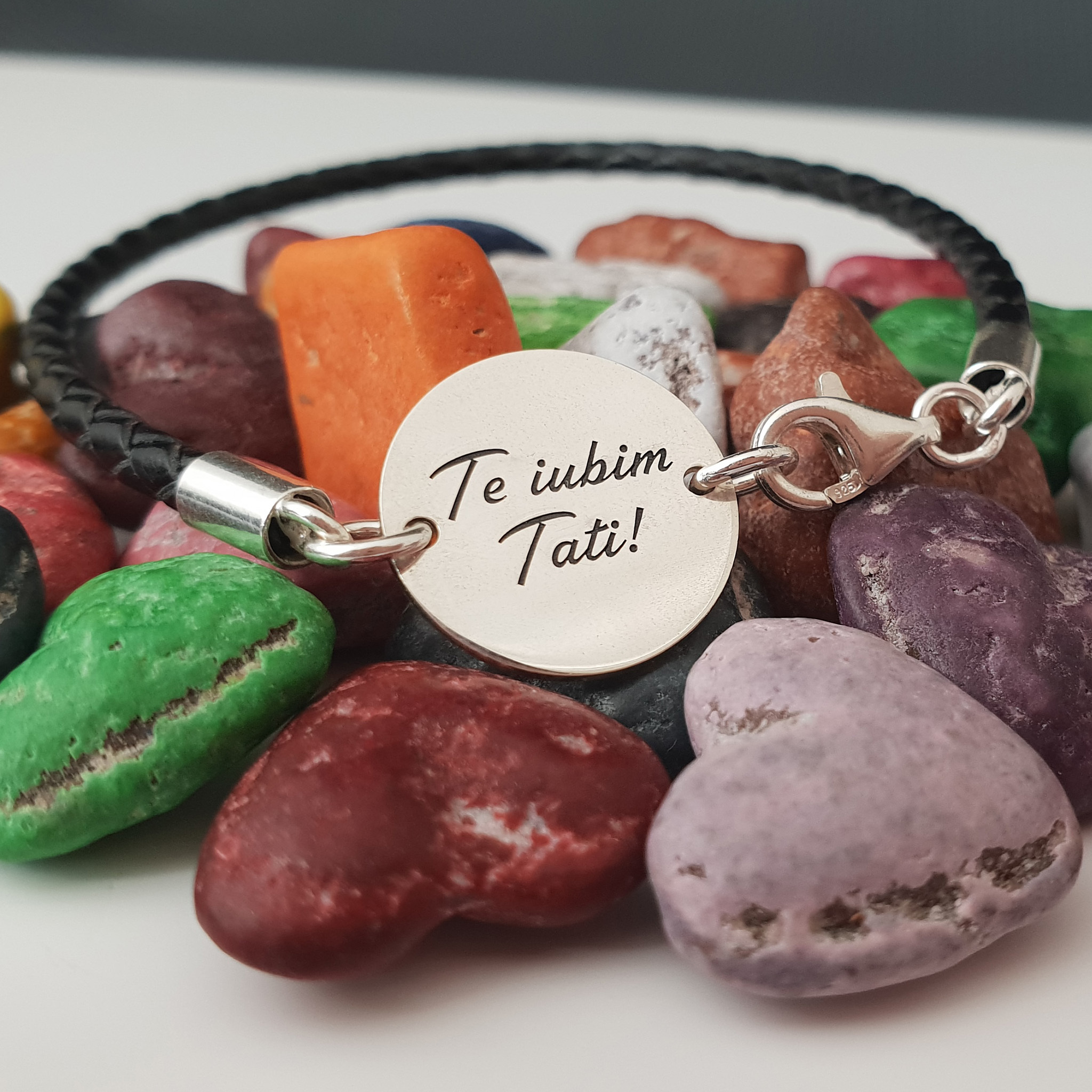 Bratara banut cu mesaj - Te iubim tati - Argint 925, piele impletita