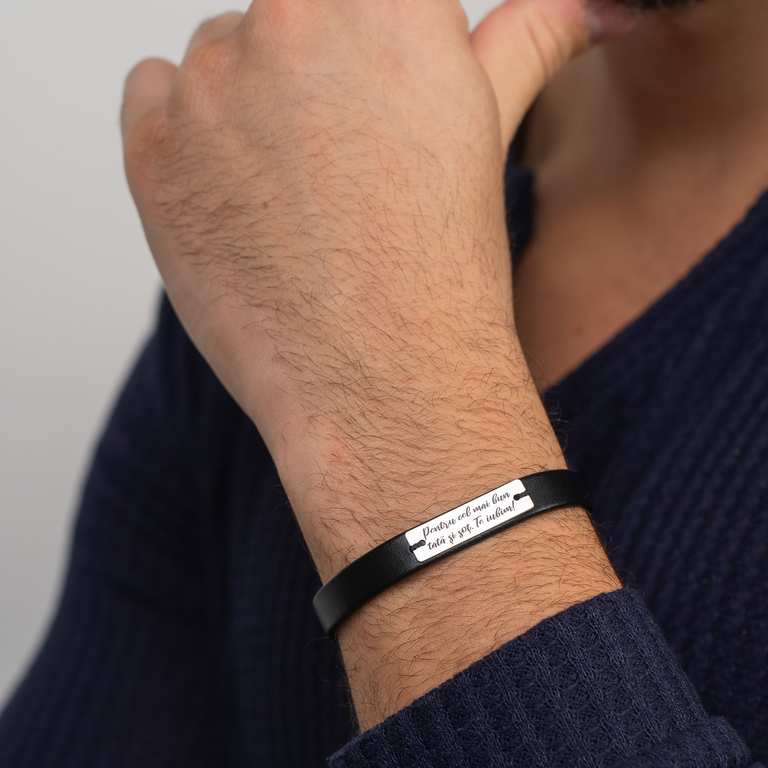 O bratara clasica cu aspect mat si cu inchizatoare magnetica, perfecta pentru a-i arata unui prieten, sotului sau tatalui cat de mult inseamna pentru tine. Alege sa gravezi pe placuta un mesaj personal din suflet.