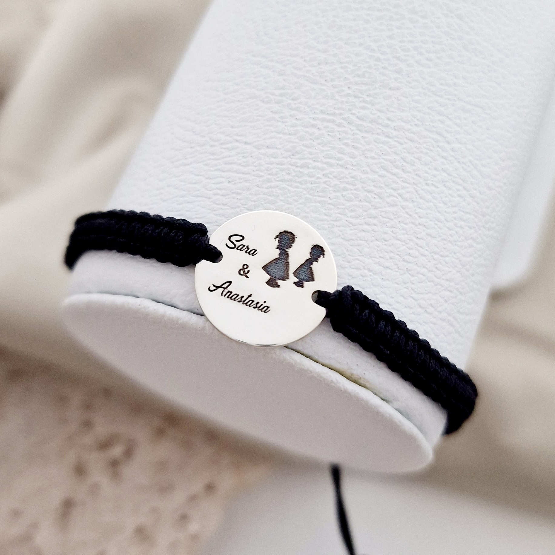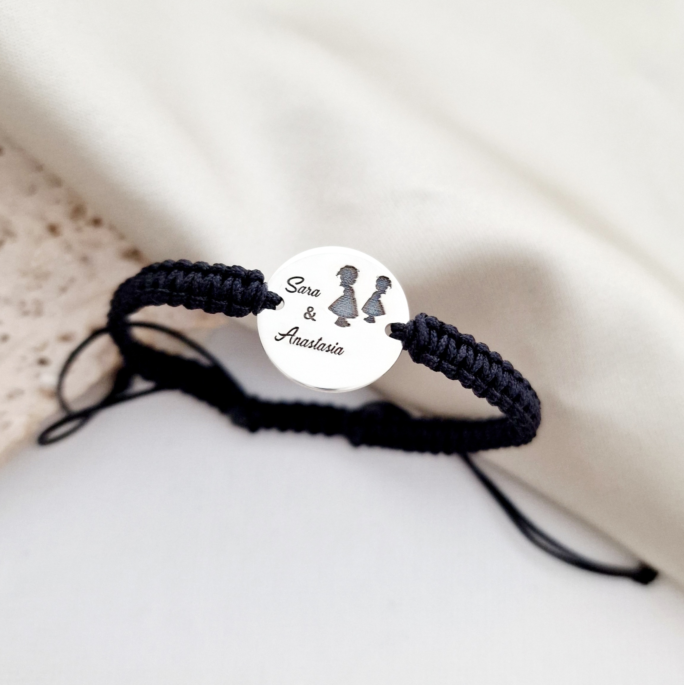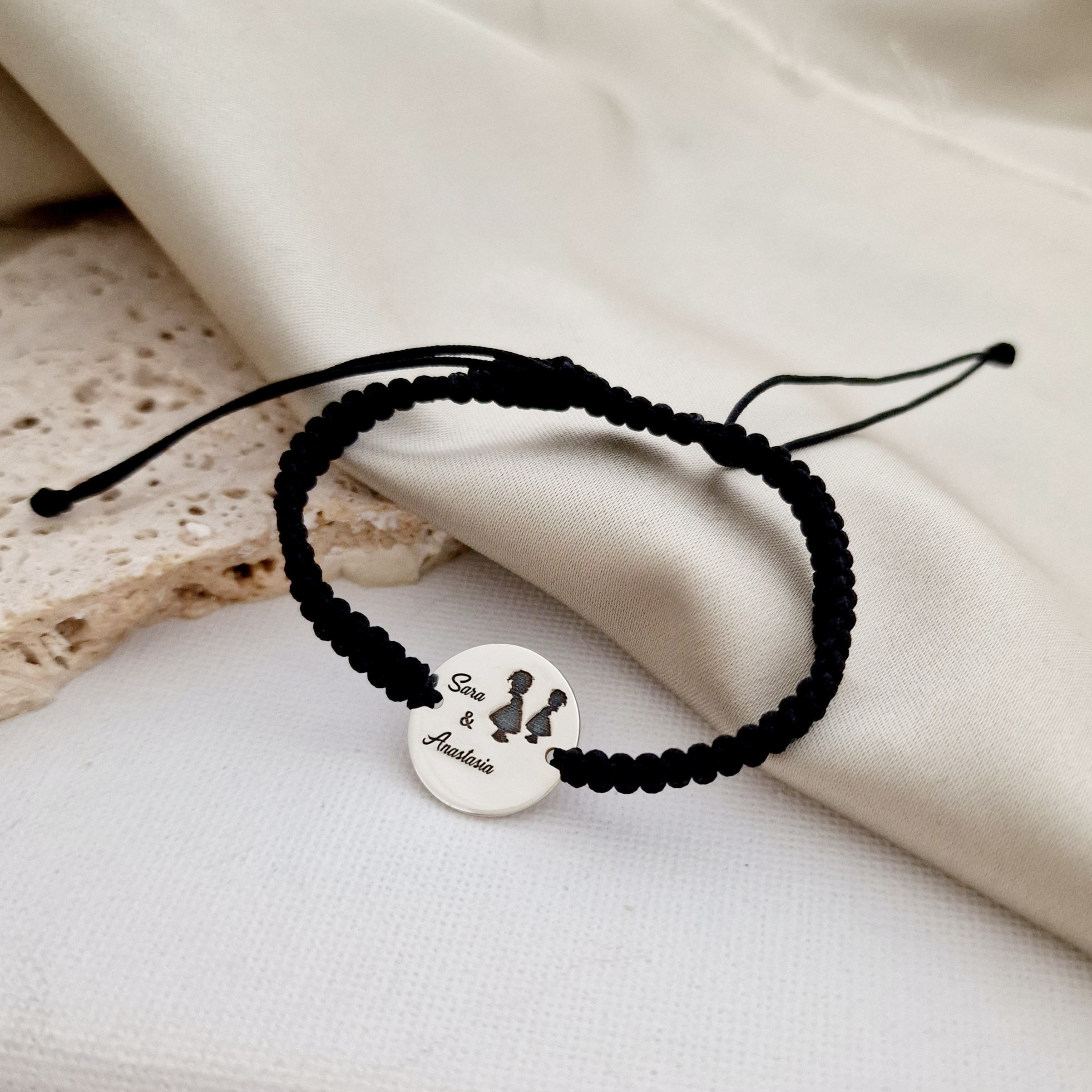 Bratara personalizata - Are tata 2 fete - Banut de 15 mm - Argint 925 - Snur impletit reglabil