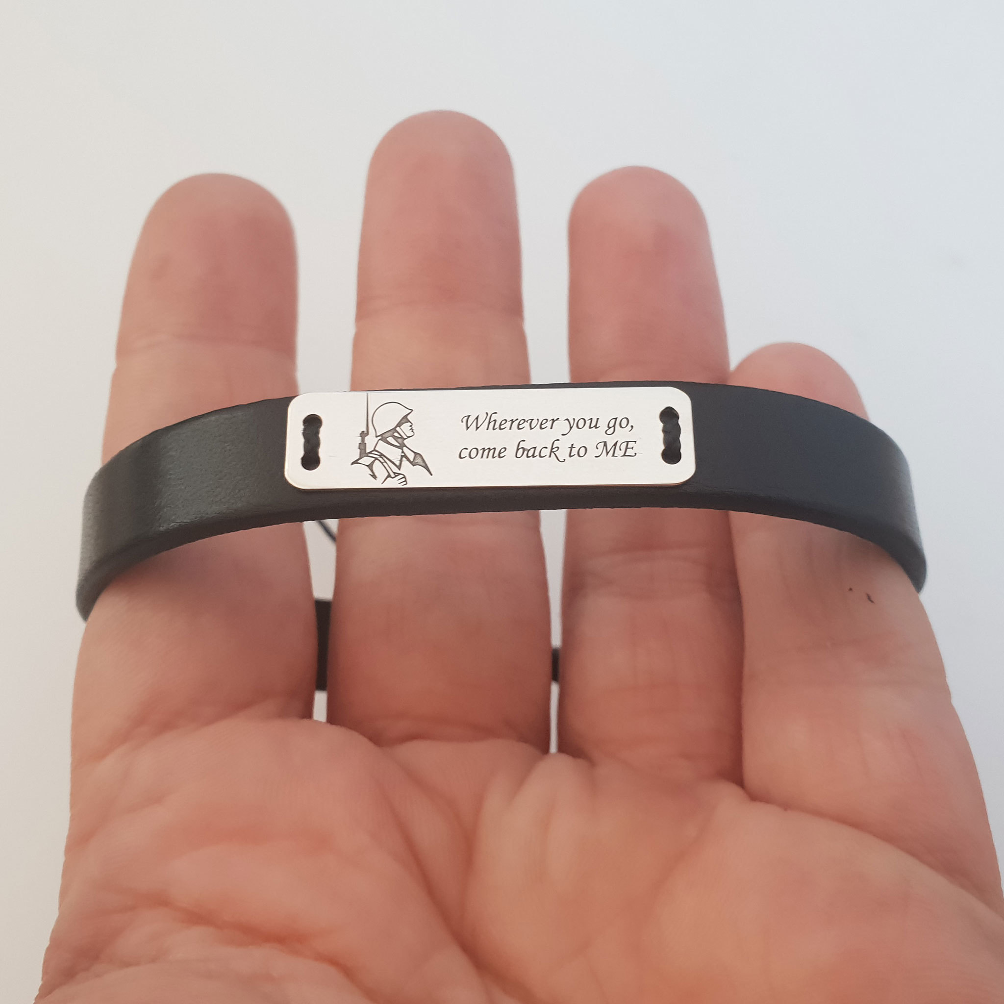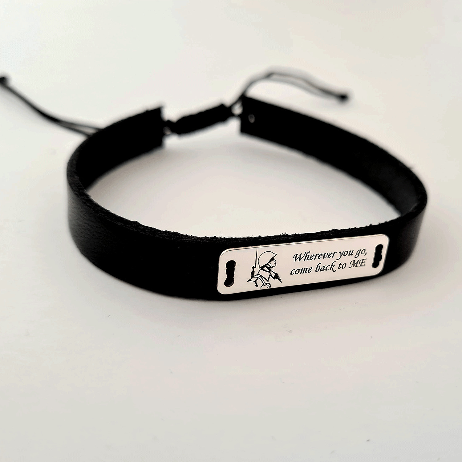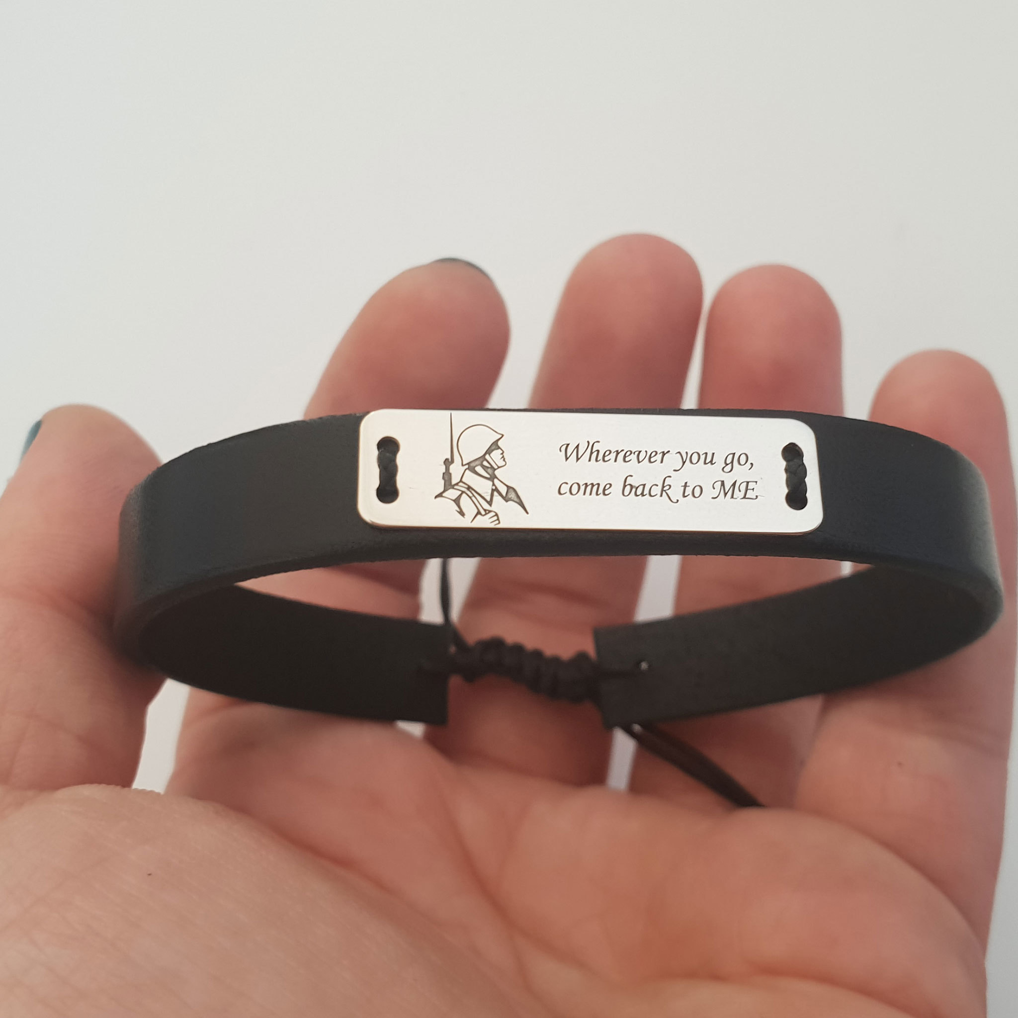 Bratara Placuta gravata cu un Soldat si Text - Argint 925, piele
