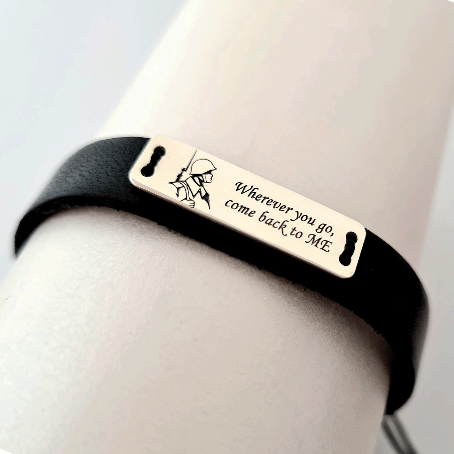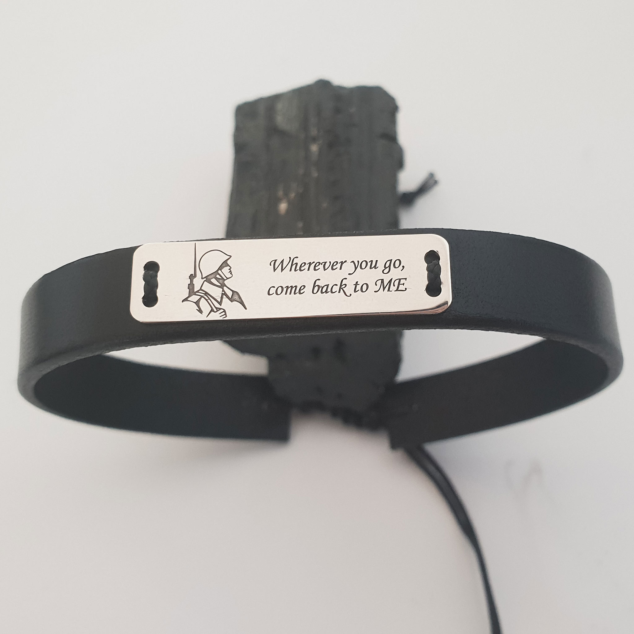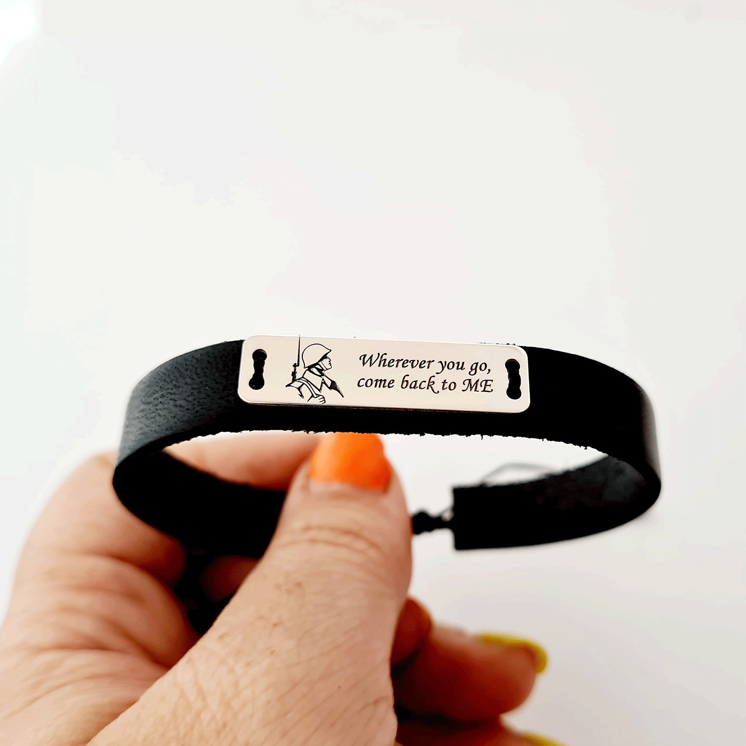 Bratara Placuta gravata cu un Soldat si Text - Argint 925, piele