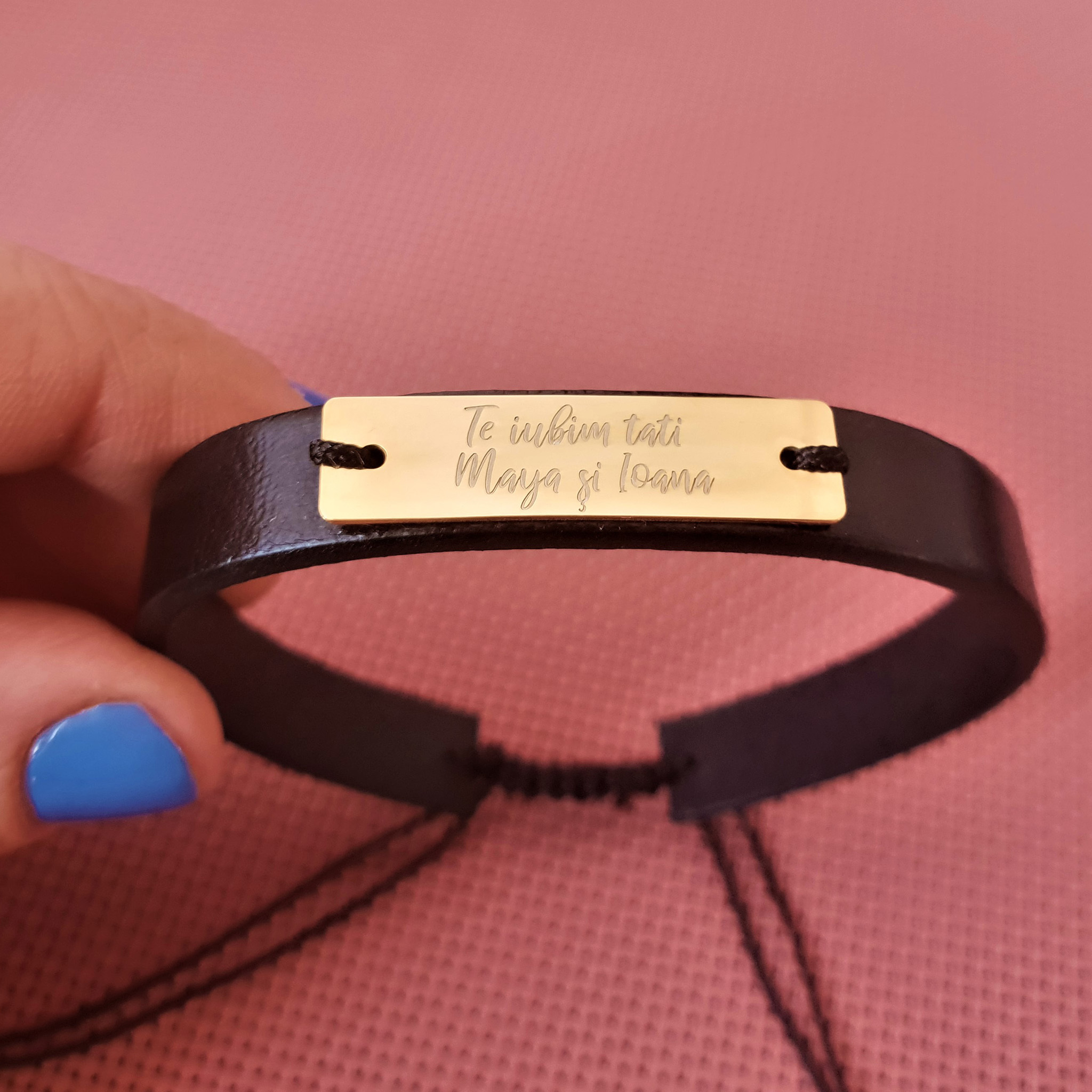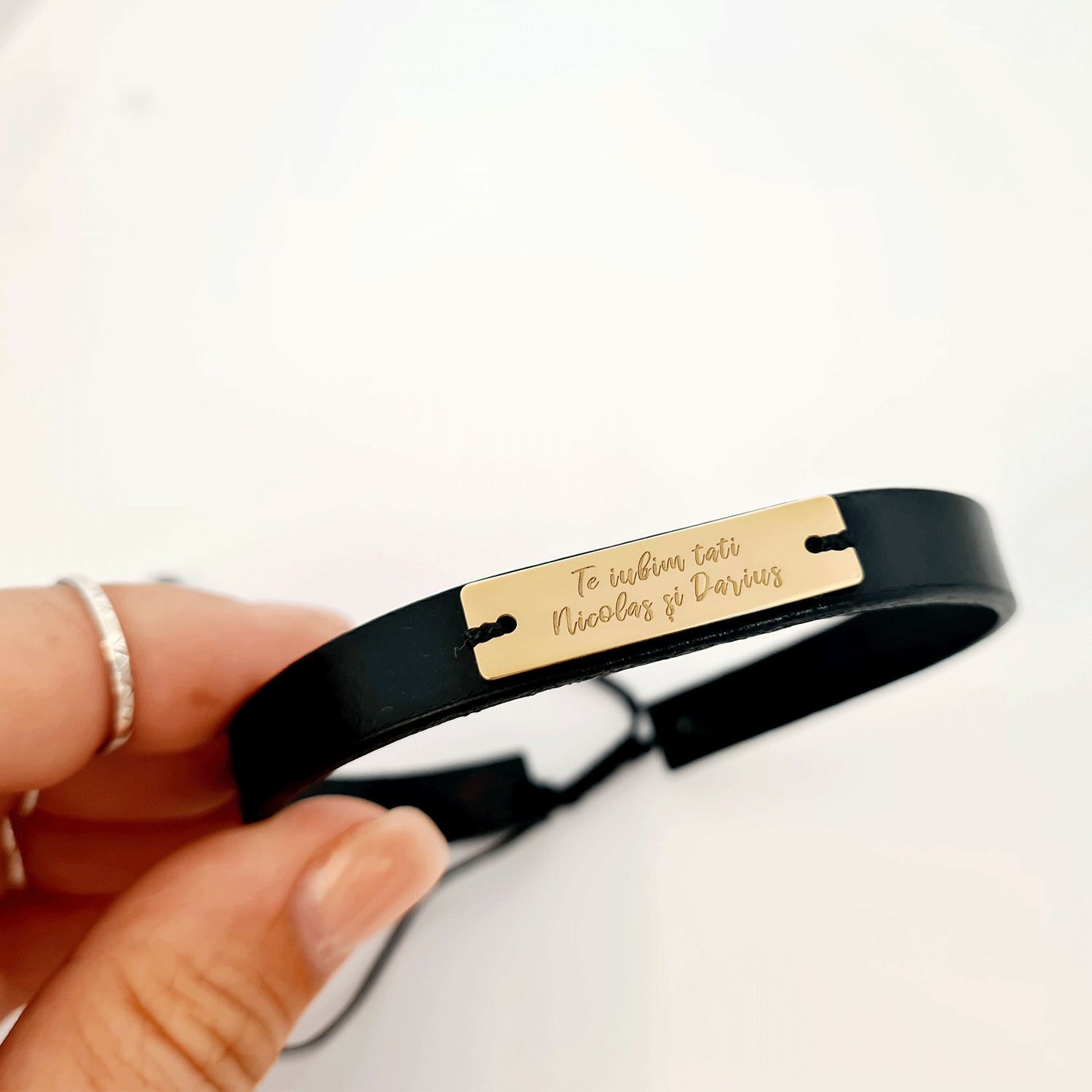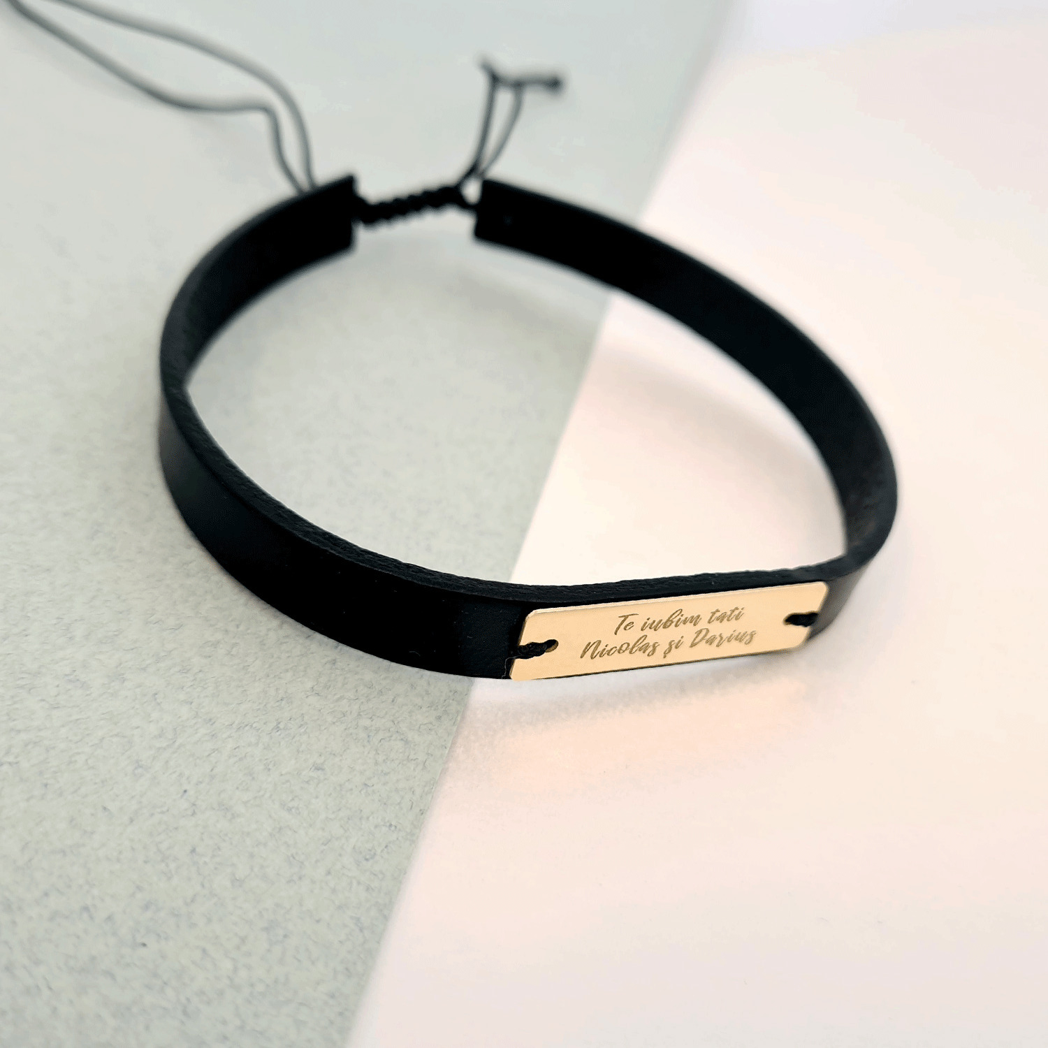 Bratara Te iubim tati si nume gravate - Argint 925 placat cu Aur 18k, piele