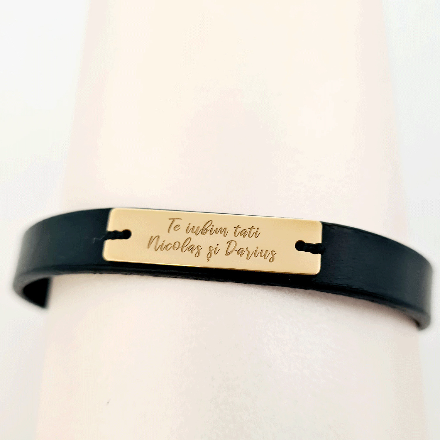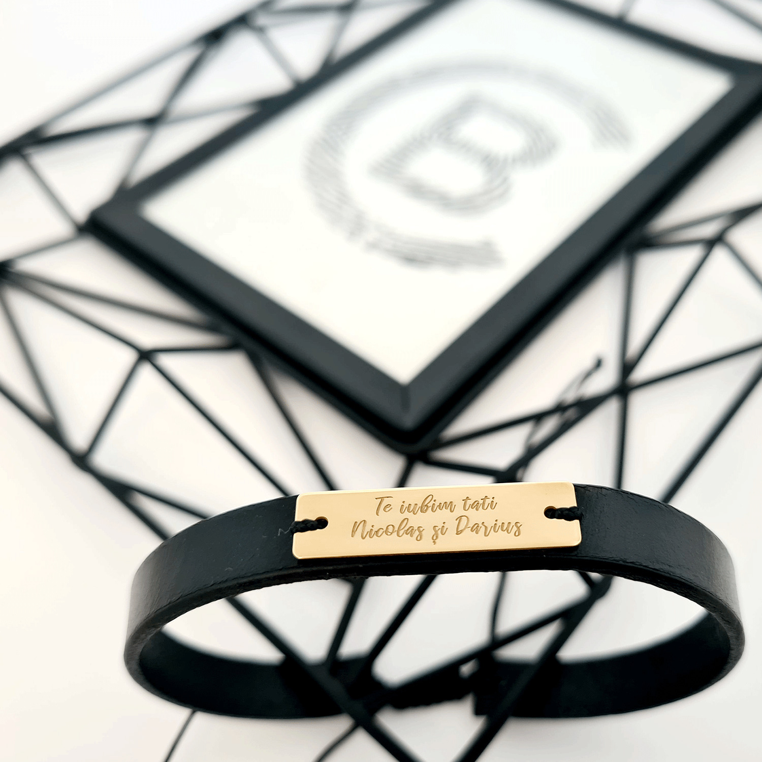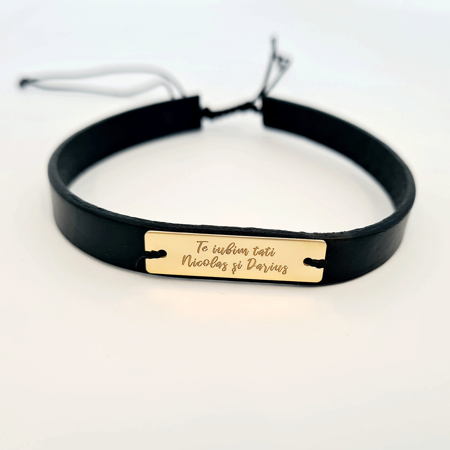 Bratara Te iubim tati si nume gravate - Argint 925 placat cu Aur 18k, piele