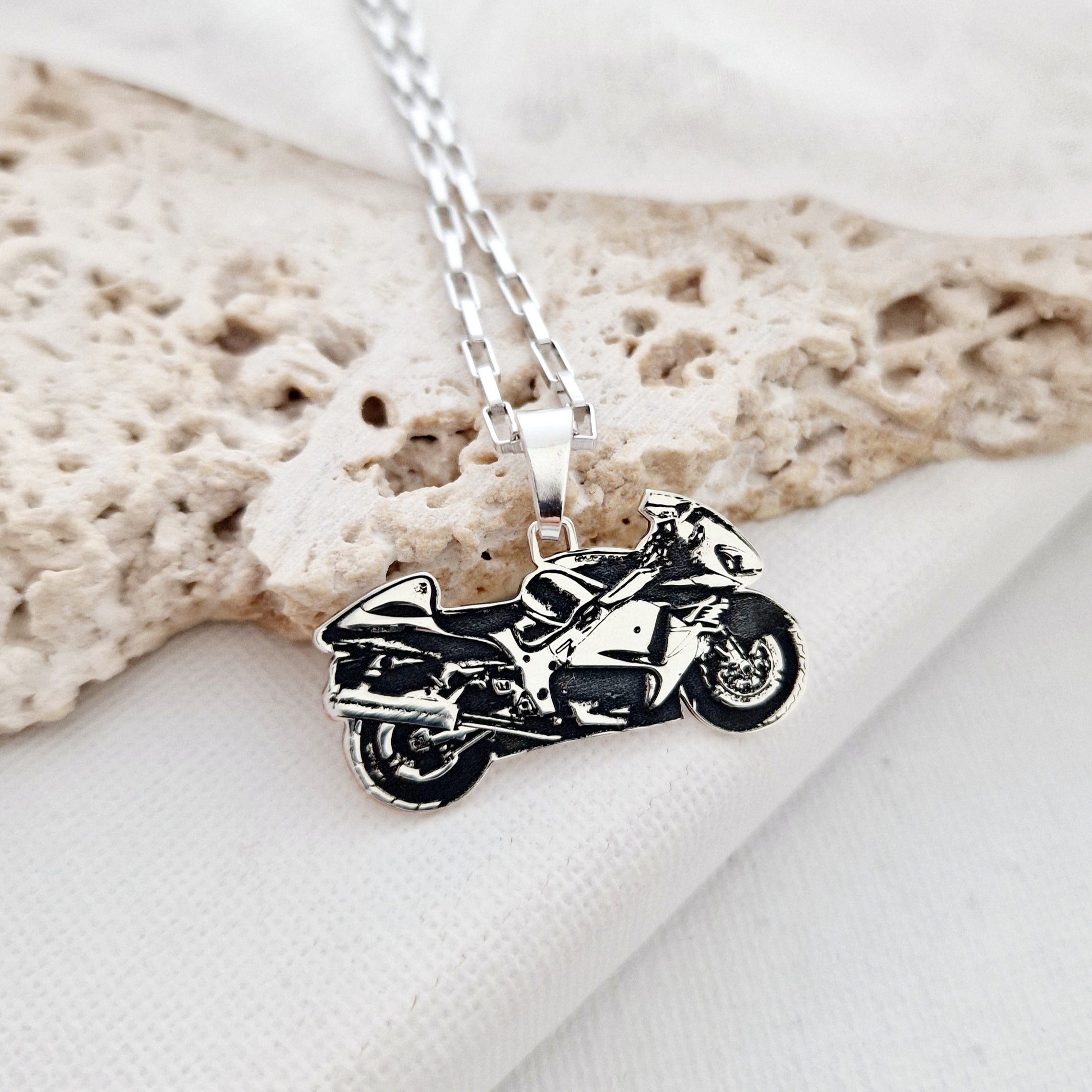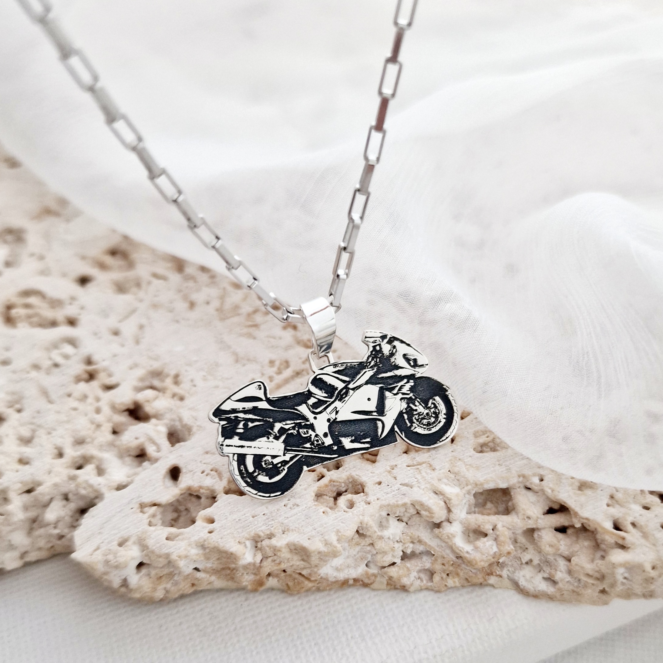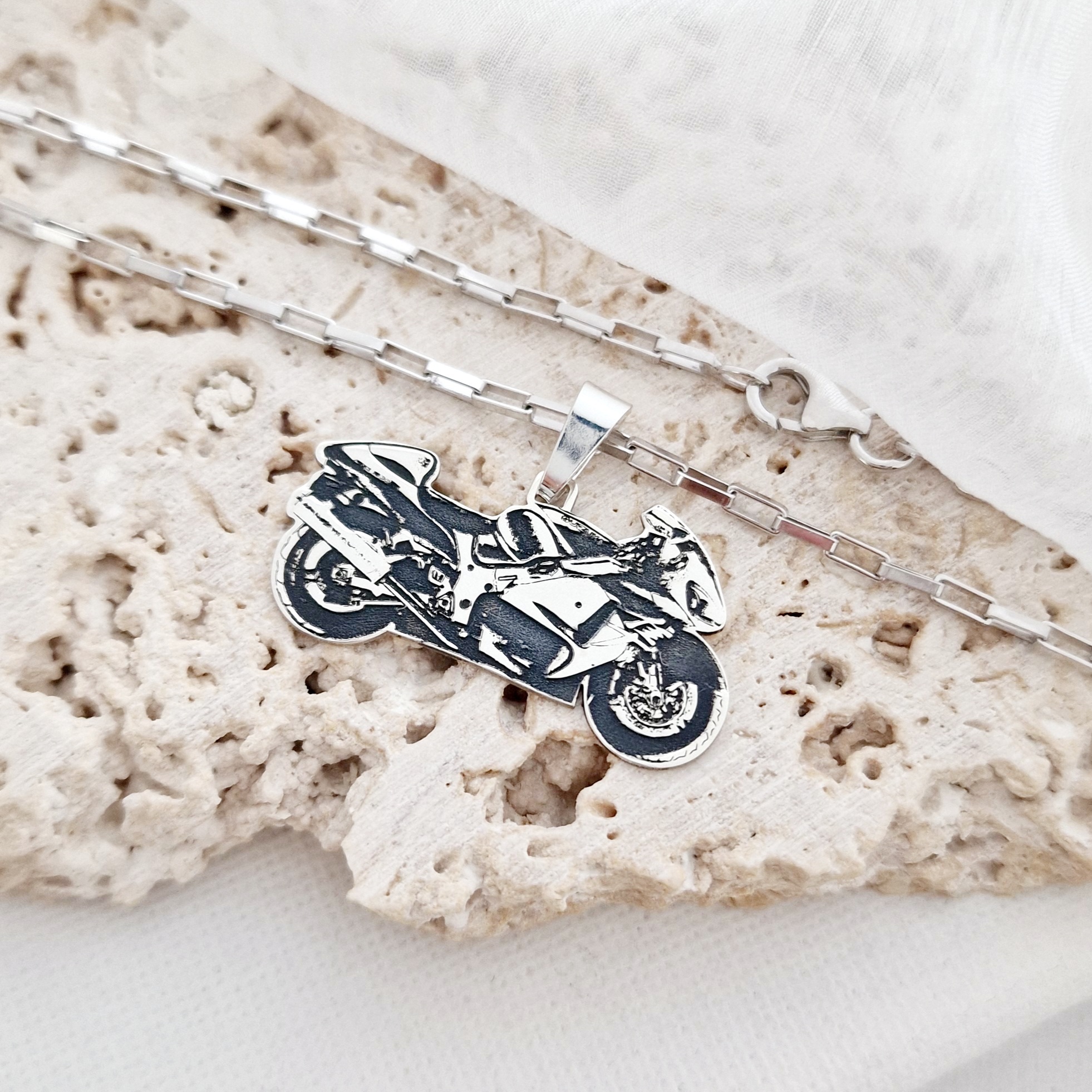 Lant barbatesc cu pandantiv personalizat - Motocicleta - Argint 925