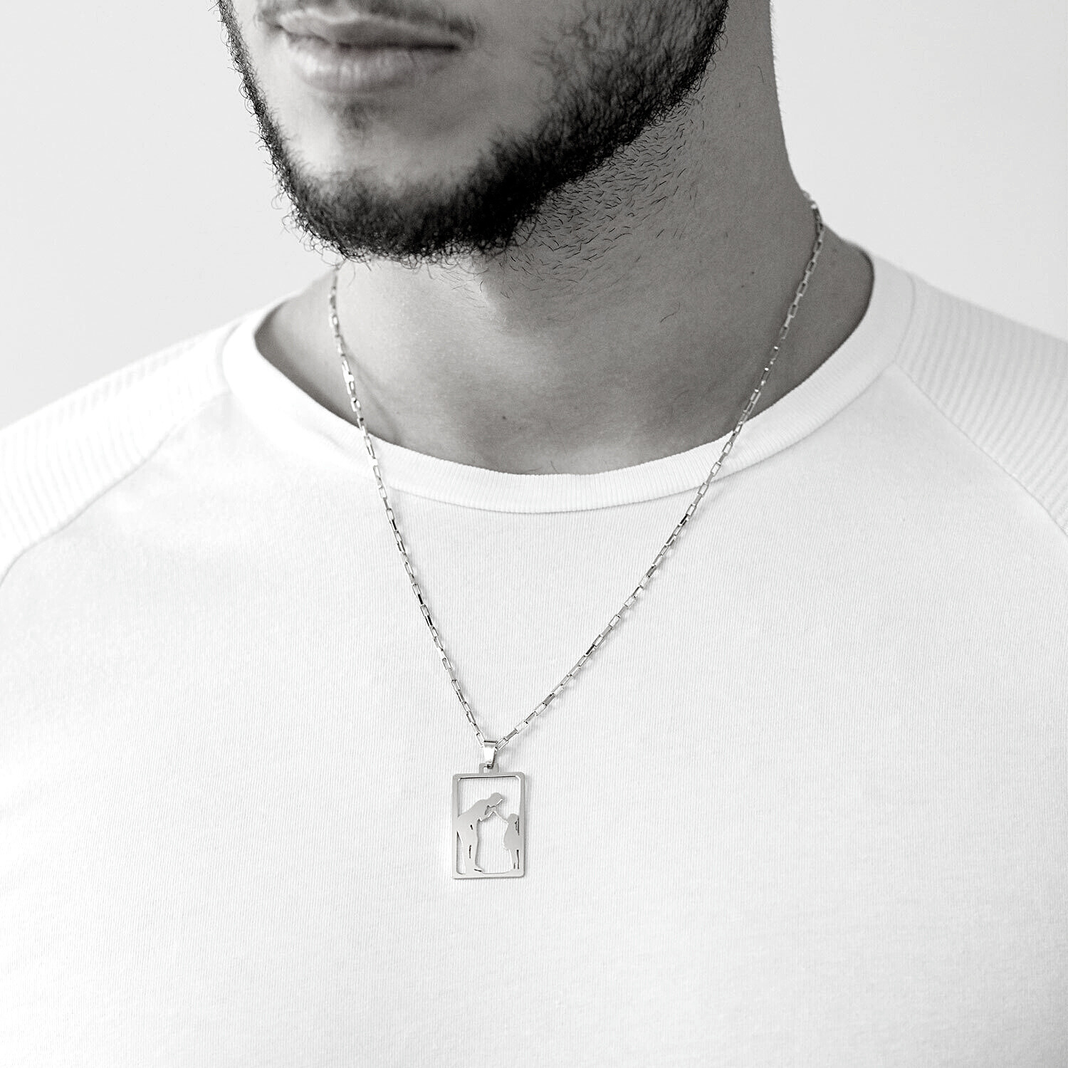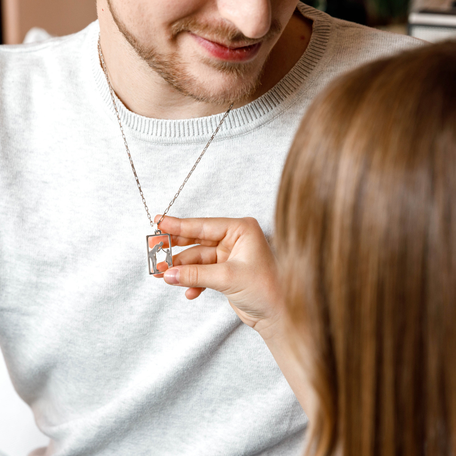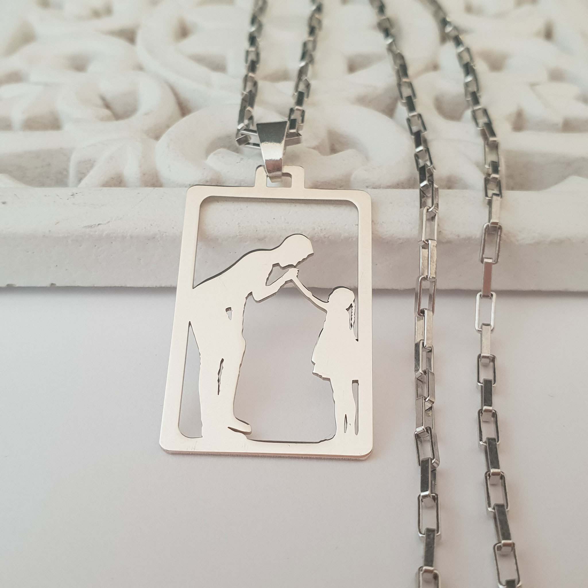Lant cu pandantiv decupat - Tata si fiica - Argint 925