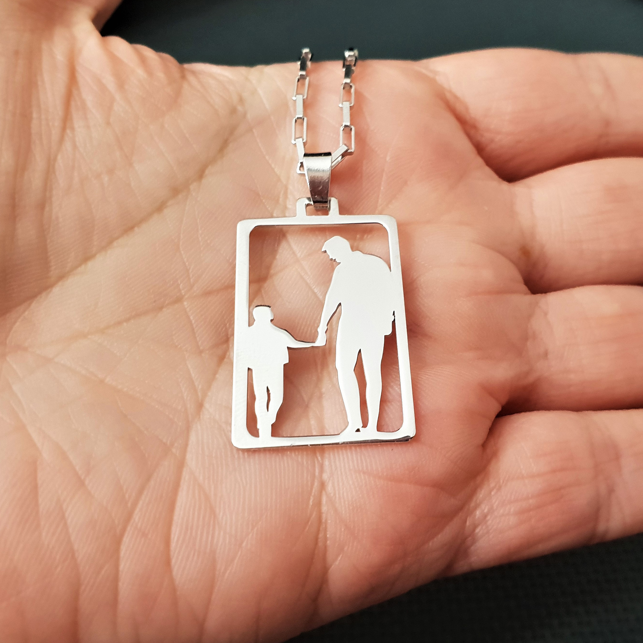 Lant cu pandantiv decupat - Tata si fiu - Argint 925