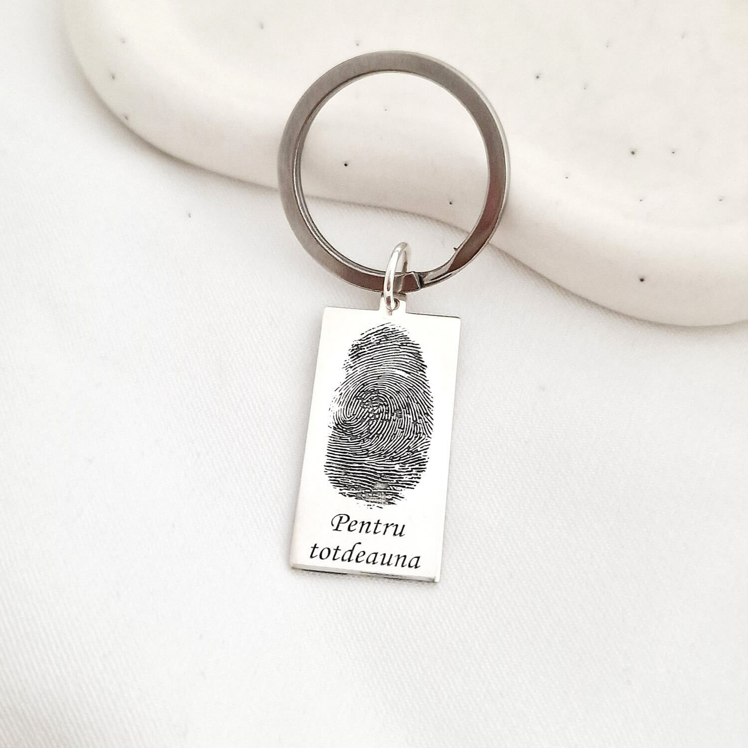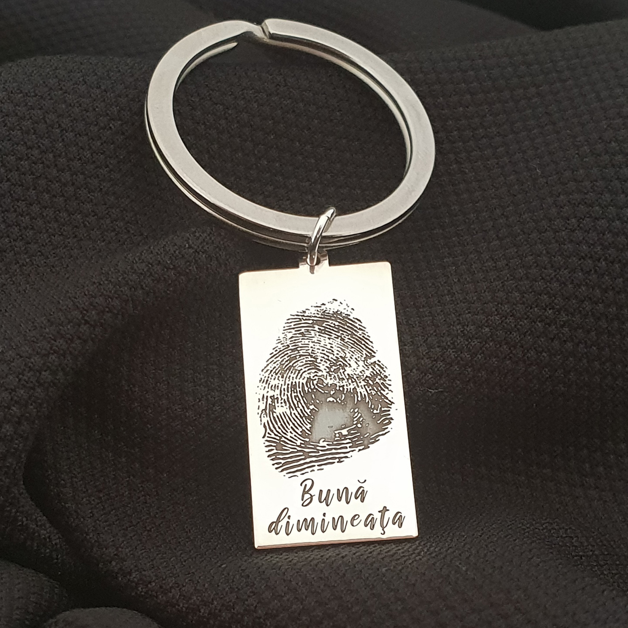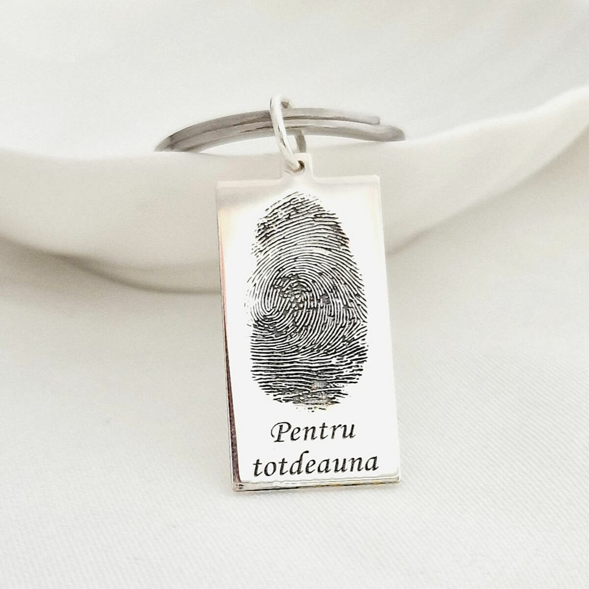 Breloc placuta gravata cu amprenta si mesaj- Argint 925