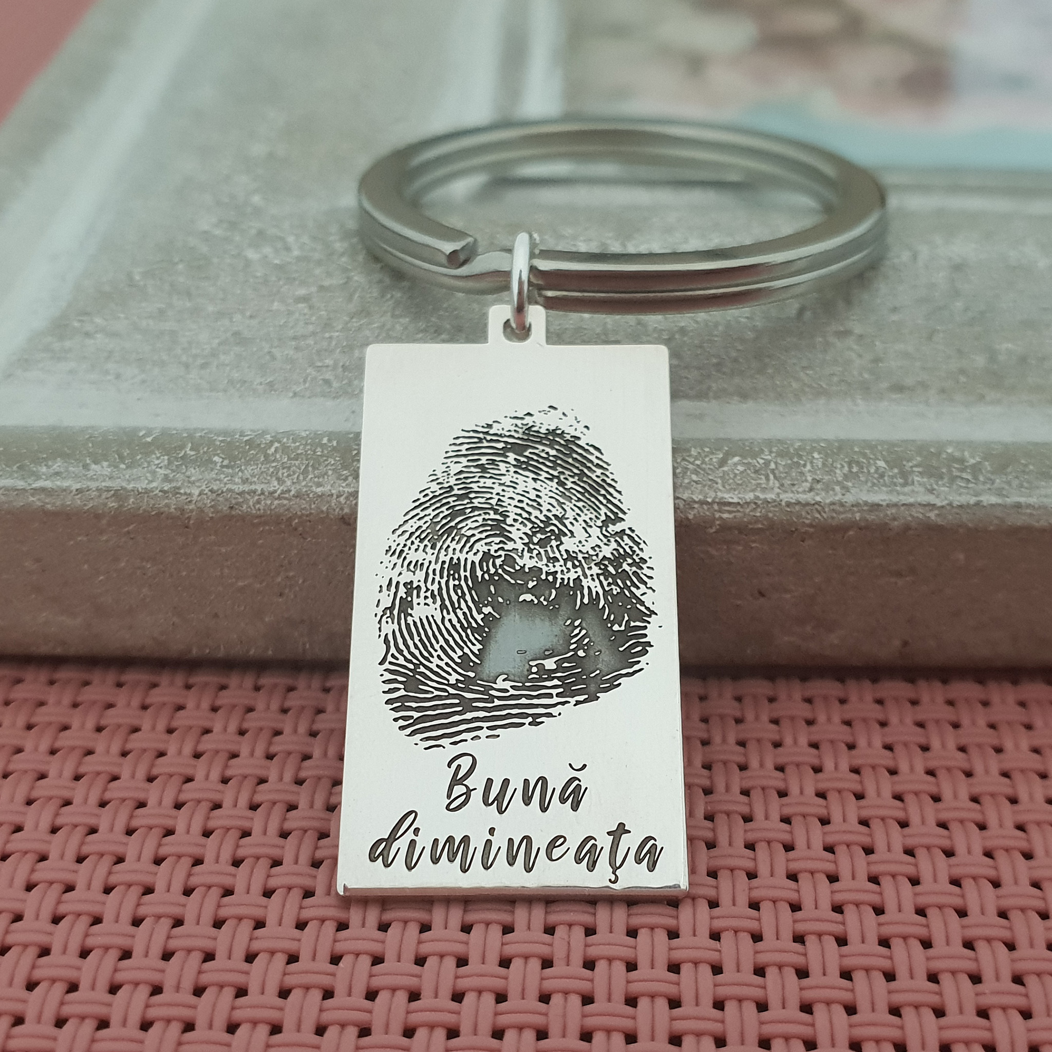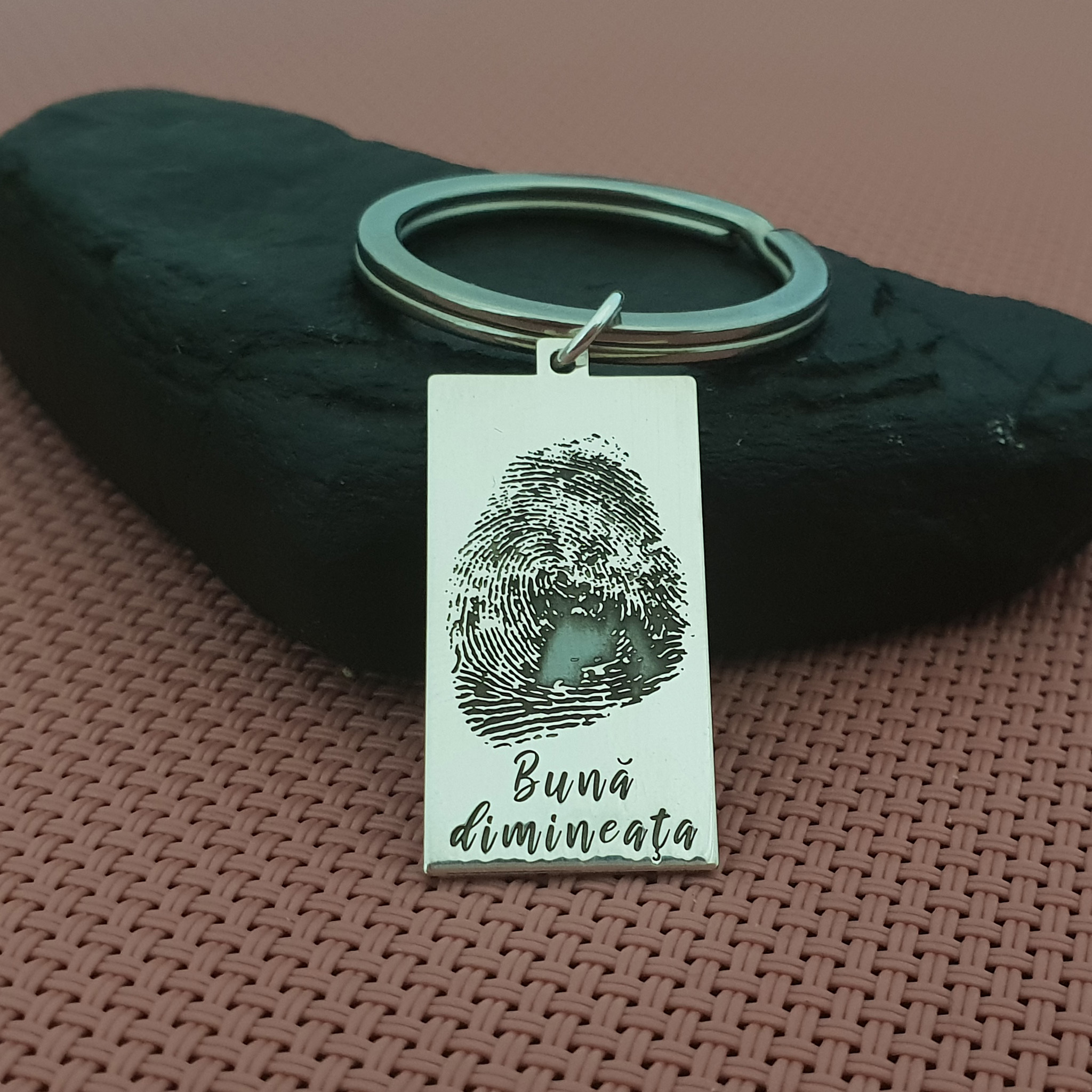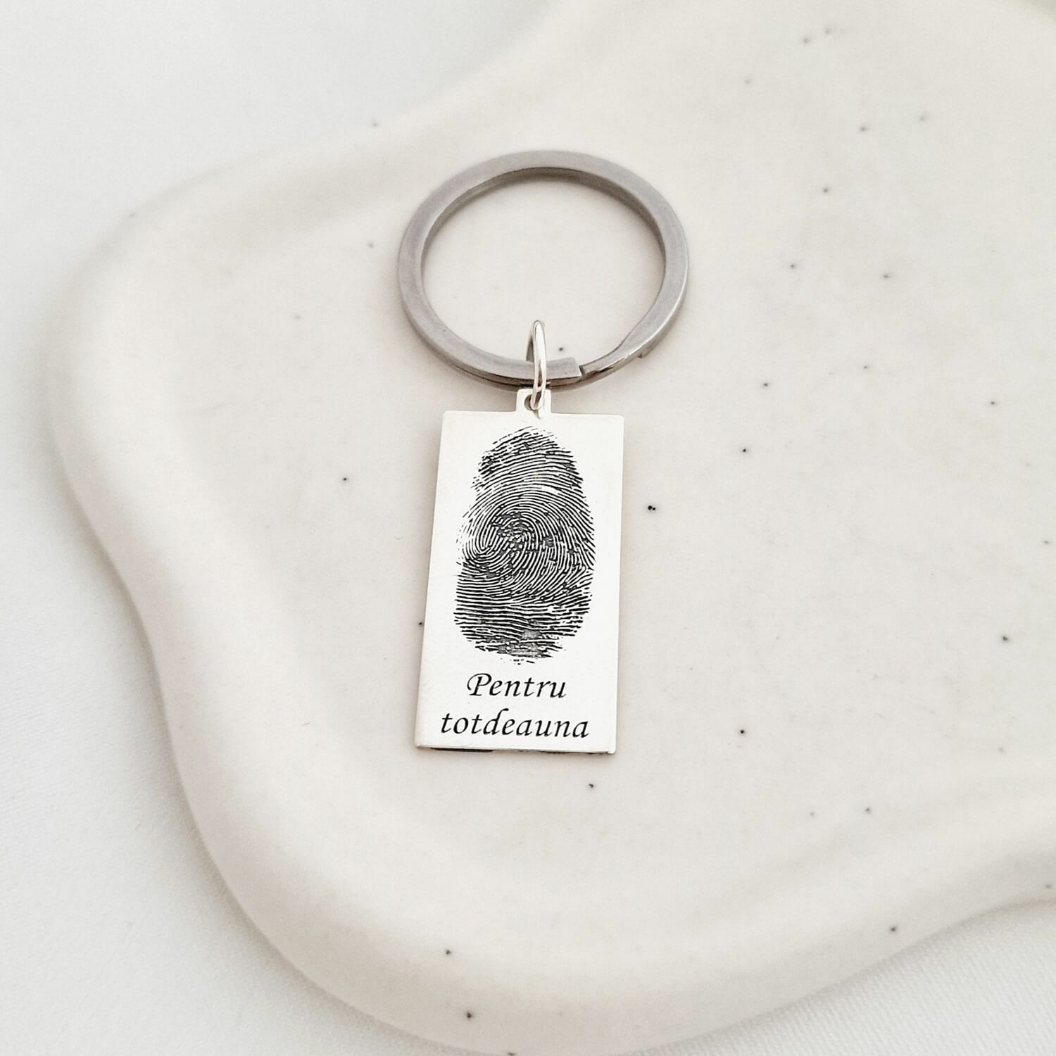 Breloc placuta gravata cu amprenta si mesaj- Argint 925