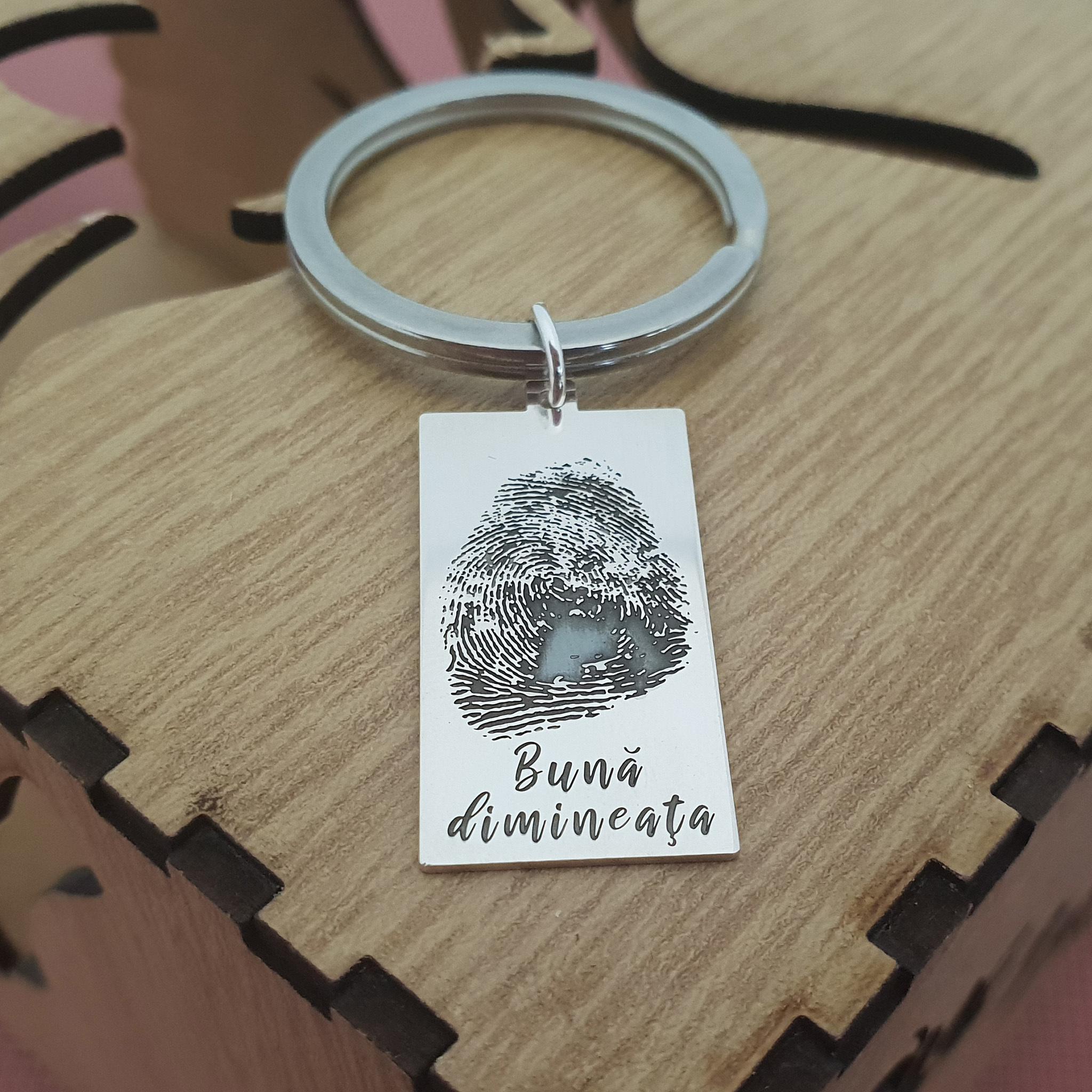 Brelocurile personalizate de la Chic Bijoux pot fi gravate cu fotografii, nume, date importante, qr code, simboluri sau mesaje cu valoare emotionala. Poti alege gravuri moderne cu o fotografie proprie, cu animalul iubit, cu membrii familiei sau cu mesaje care transmit iubire. Tot ce trebuie sa faci este sa incarci imaginea dorita sau sa specifici mesajul in momentul in care selectezi brelocul dorit pentru comanda. Echipa noastra realizeaza gravura cu laser de inalta precizie, pastrand detaliile clare, pe termen lung.