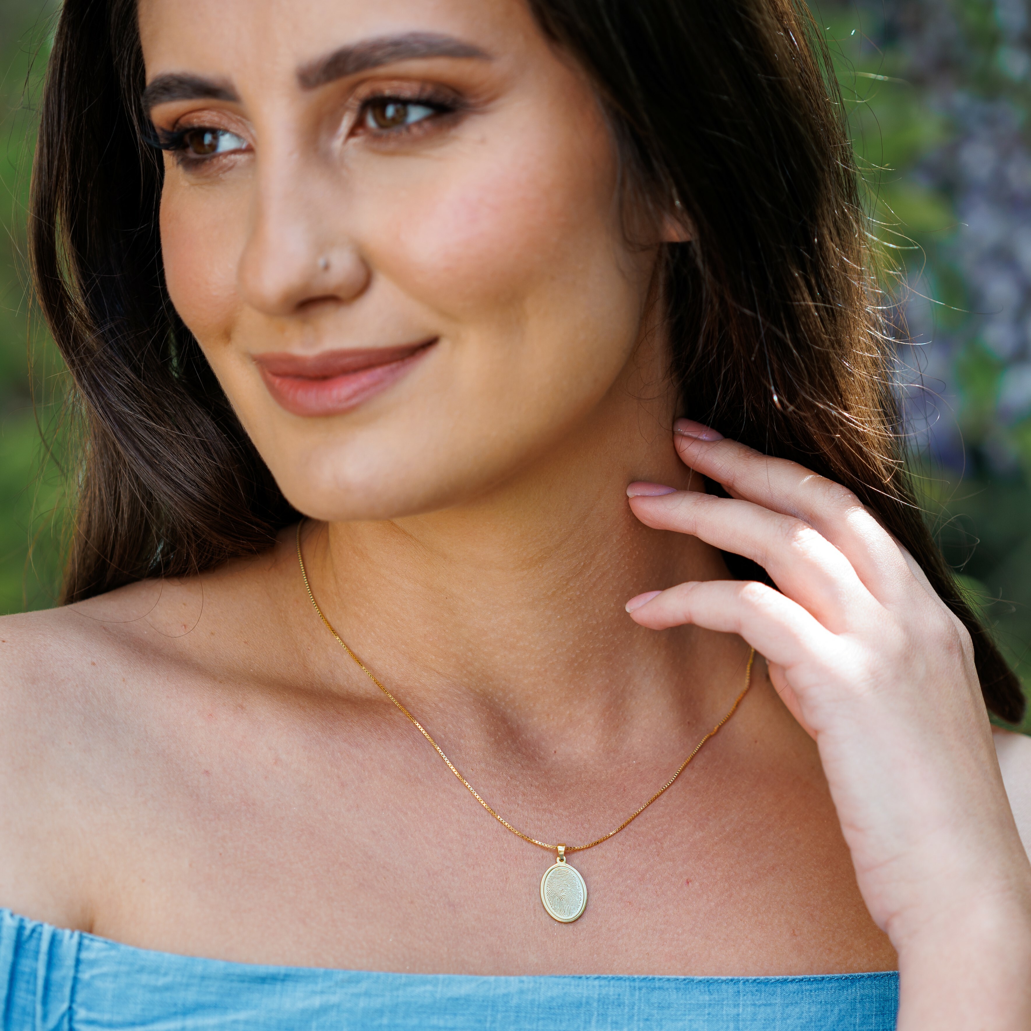 Lantisor Identitate Gravată - Pandantiv oval cu amprenta - Argint 925 placat cu Aur Galben 18K