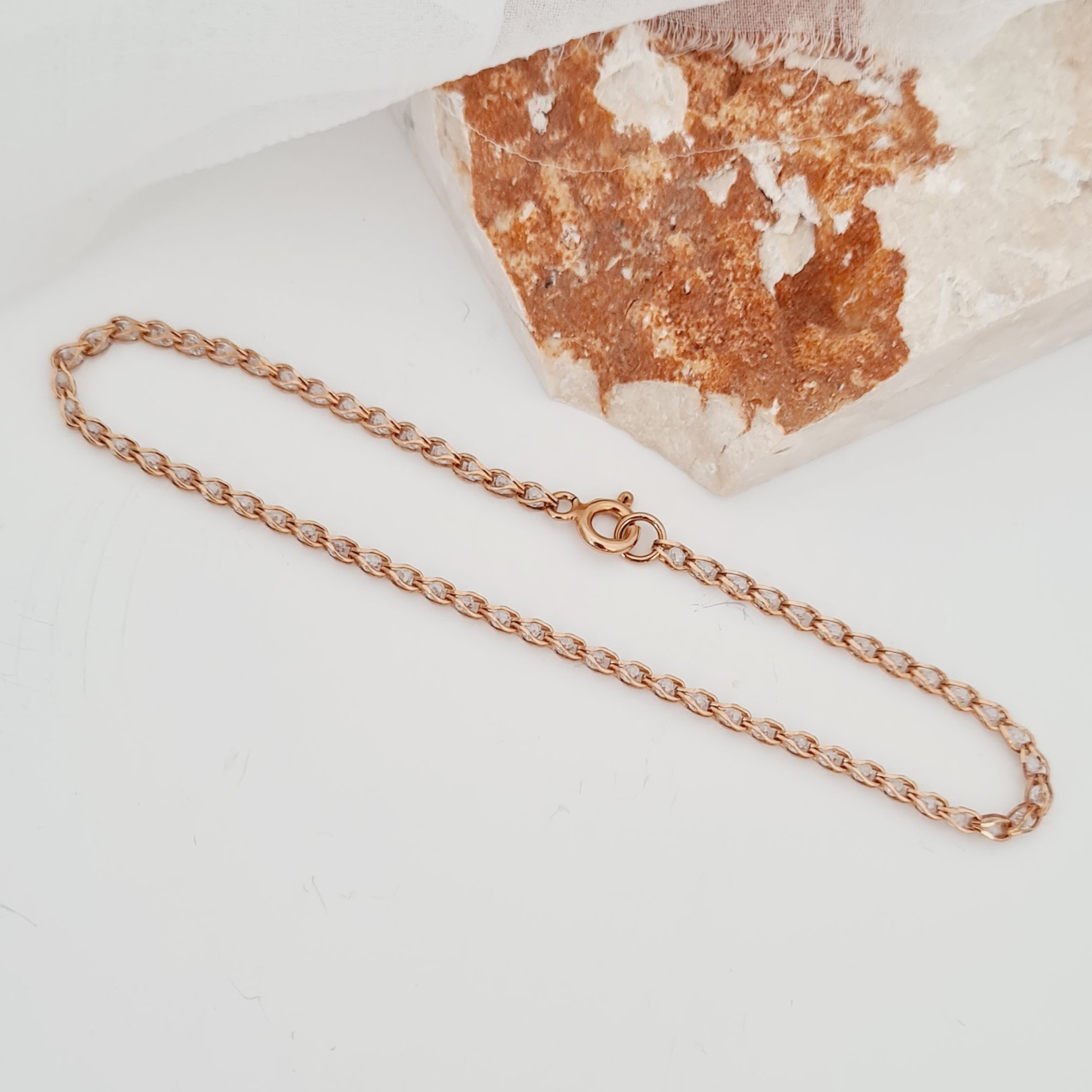 Bratara cromatica - Model cu lant impletit cu Zirconii - Argint 925 placat cu Aur Roz 18K