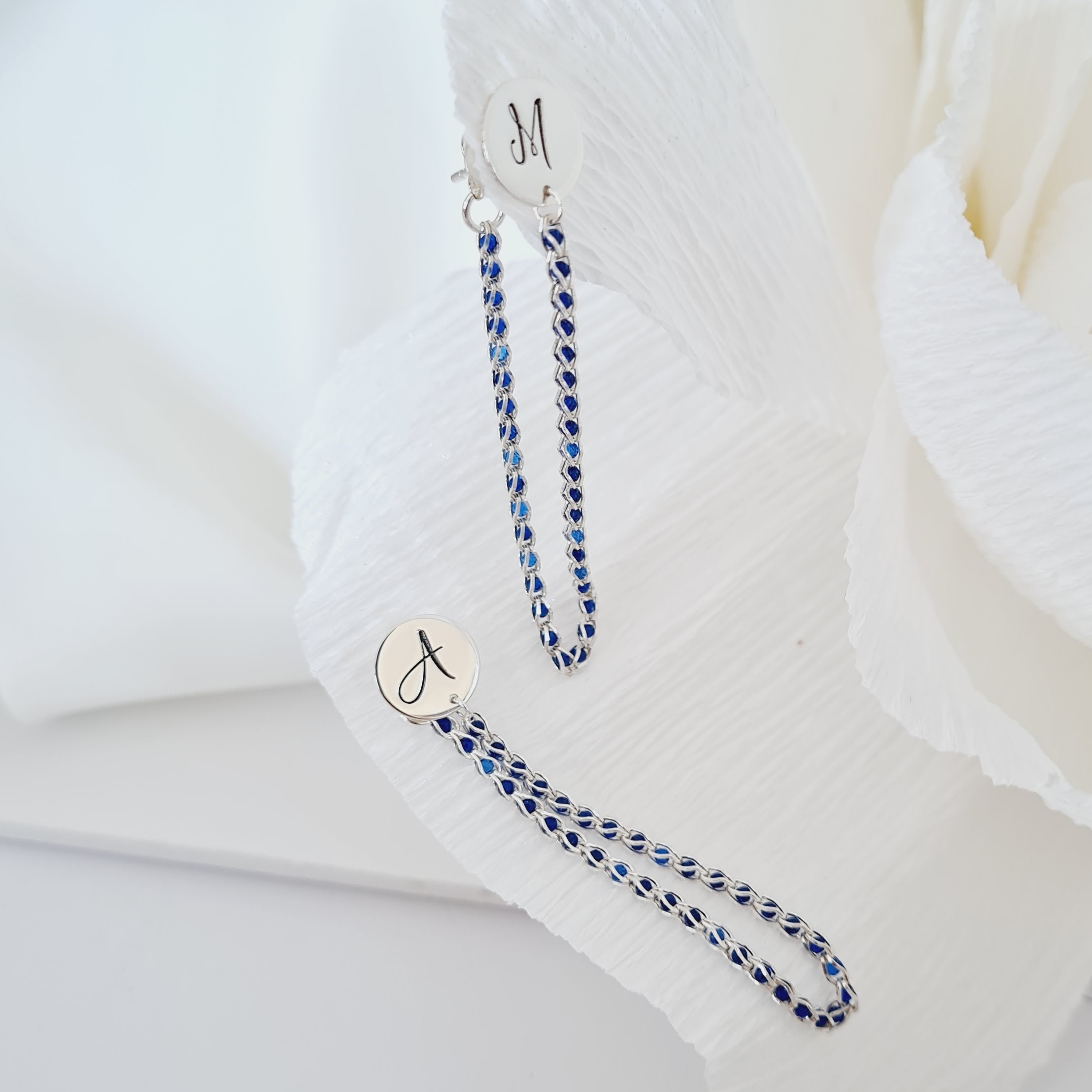 Cercei cromatici - Model banut cu initiale si lantisor impletit cu Zirconii - Argint 925