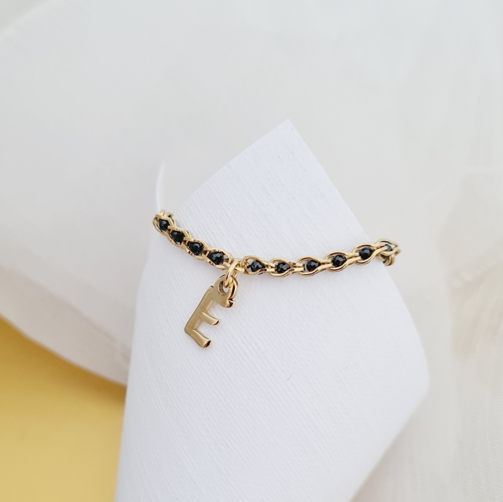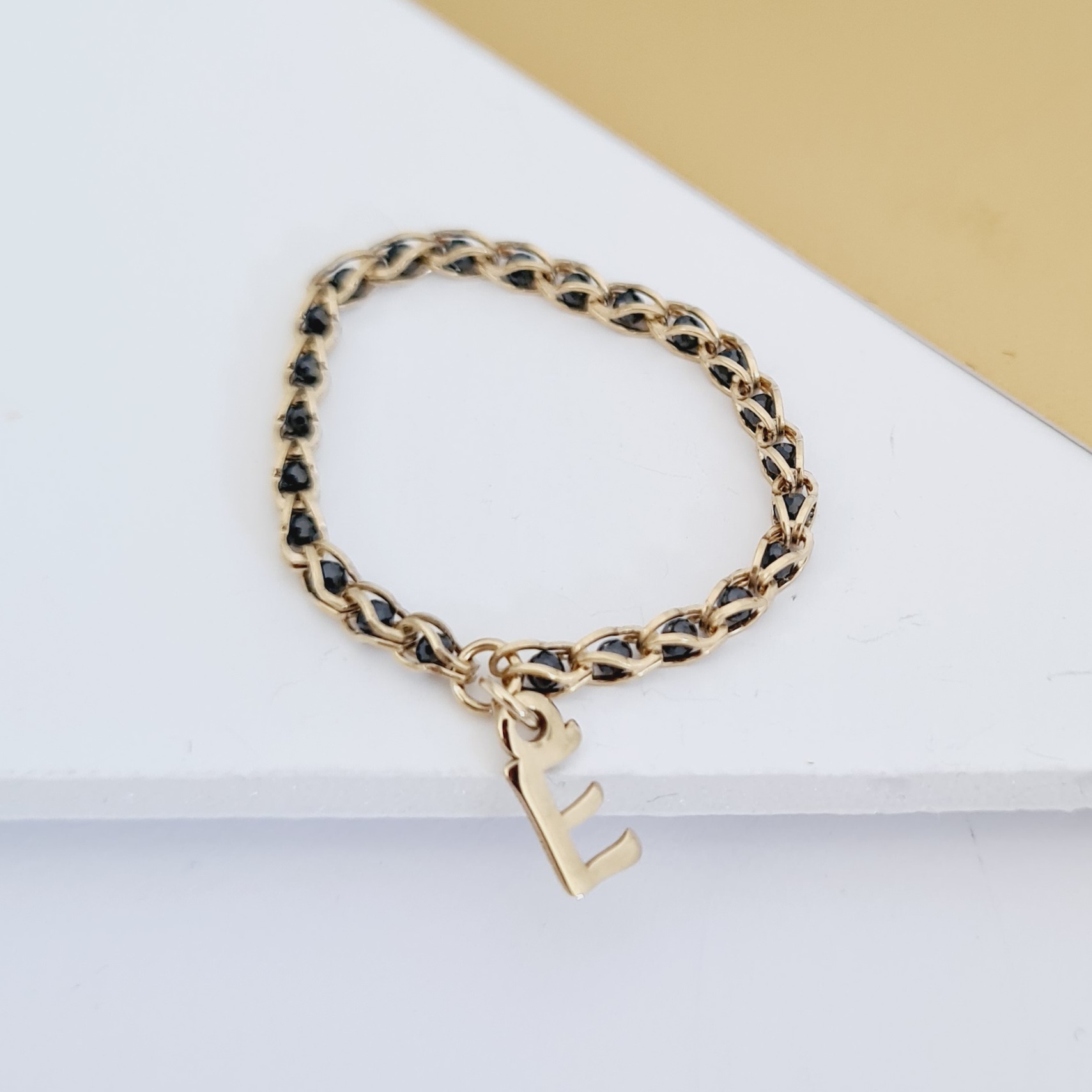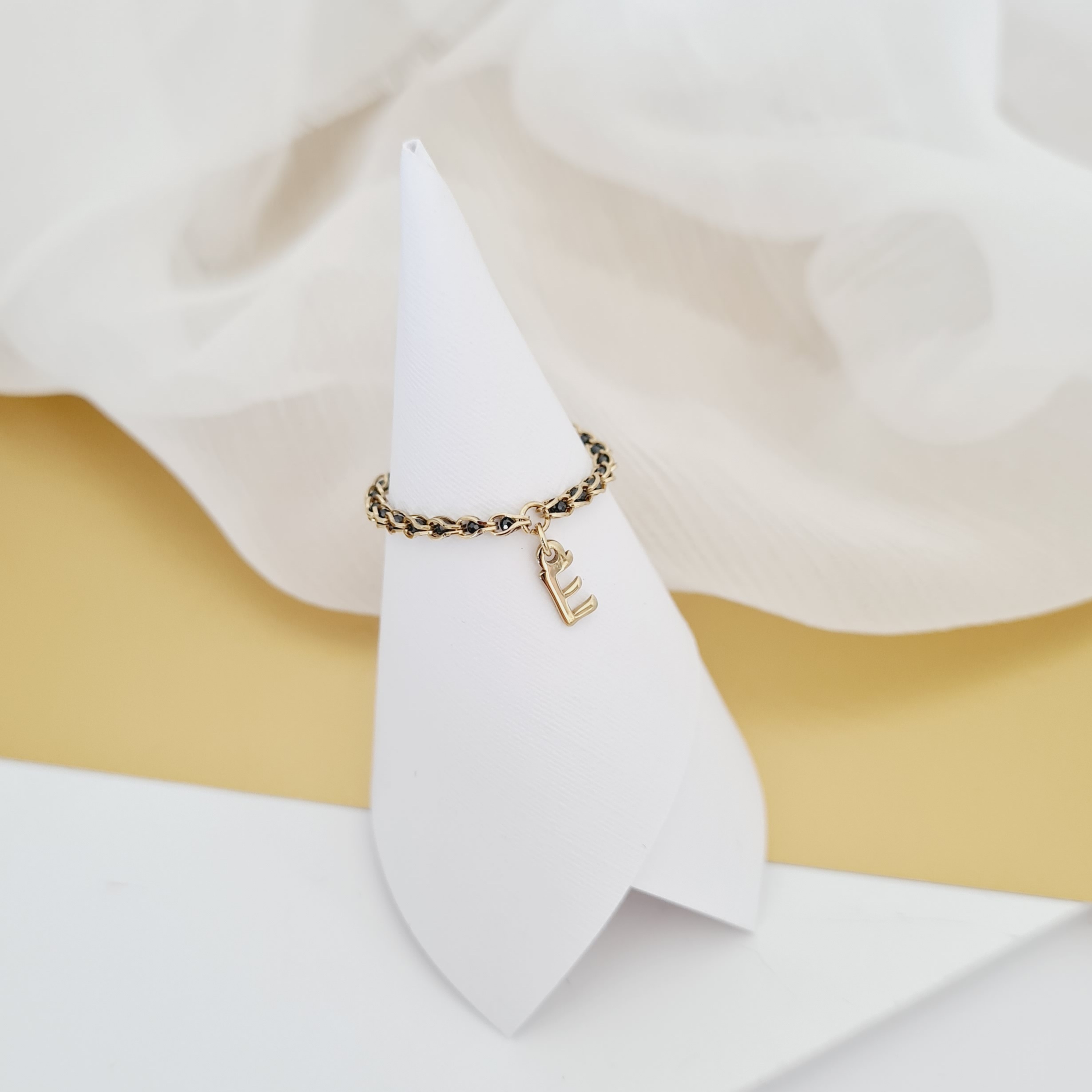 Inel cromatic cu initiala - Model cu lant impletit cu Zirconii - Argint 925 placat cu Aur Galben 18K