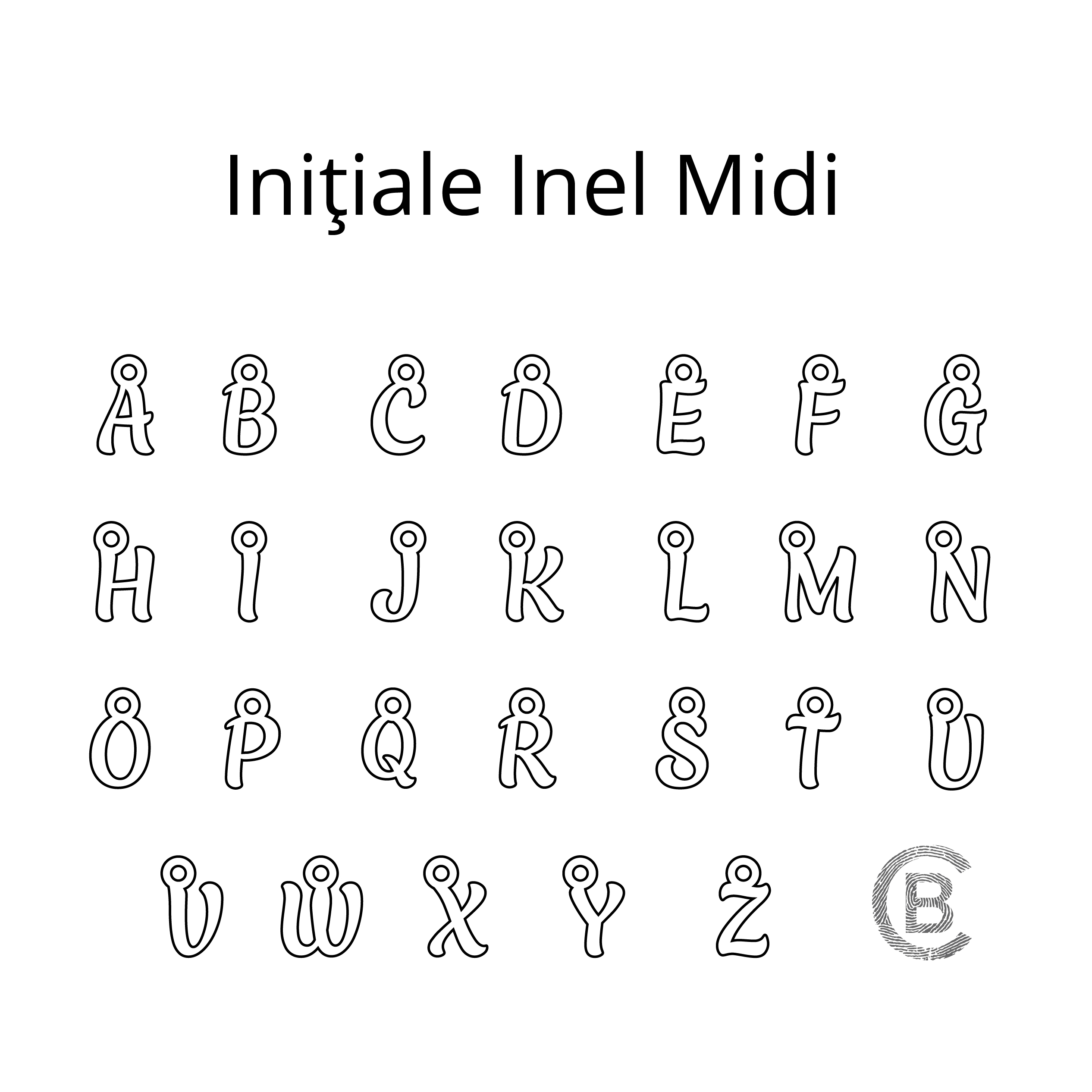 - De inel este atasat un charm initiala de 6x5 mm - vezi poza explicativa cu restul modelelor de initiale.