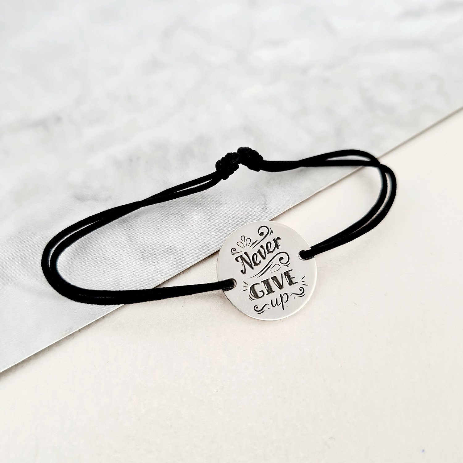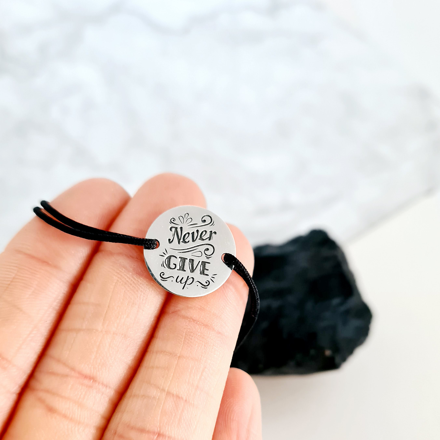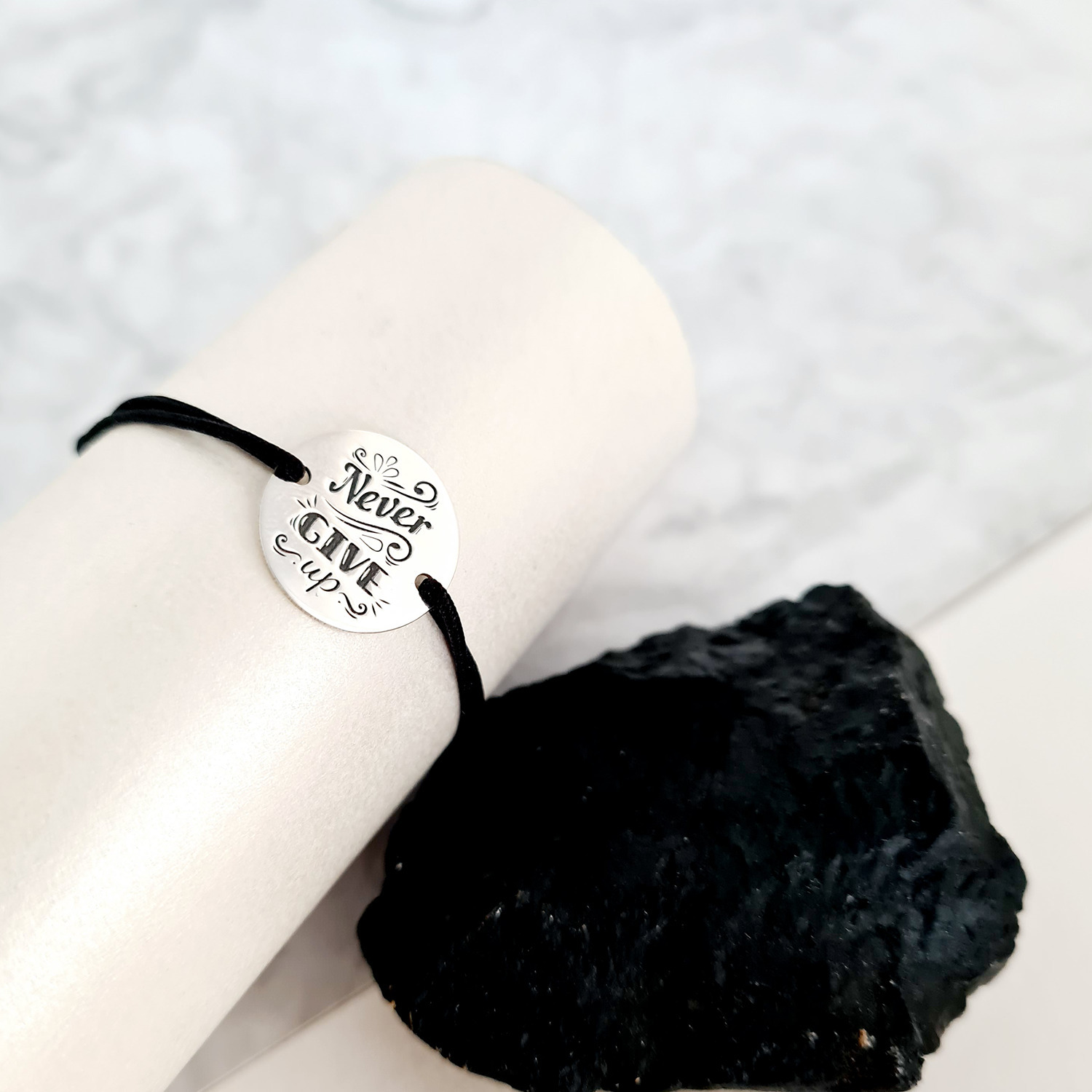 Bratara Never give up - snur negru