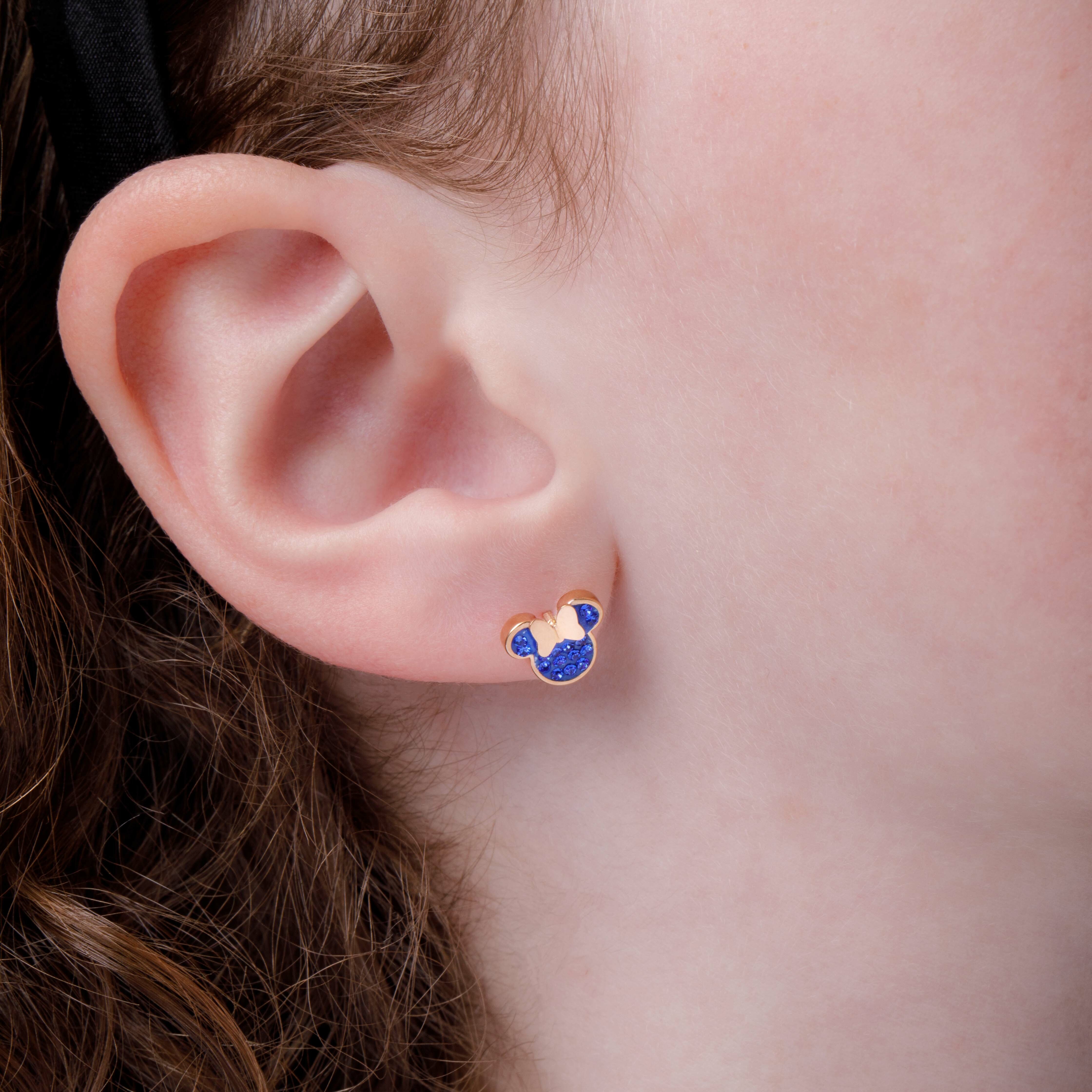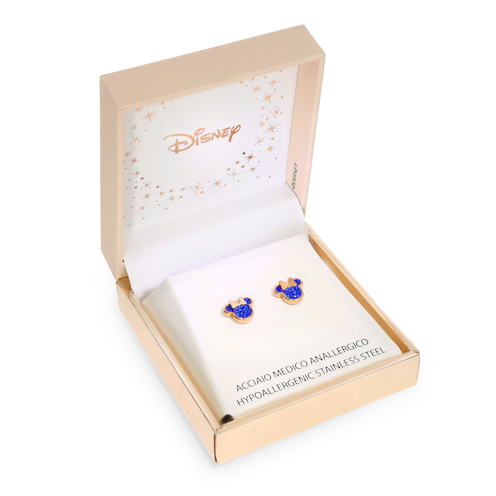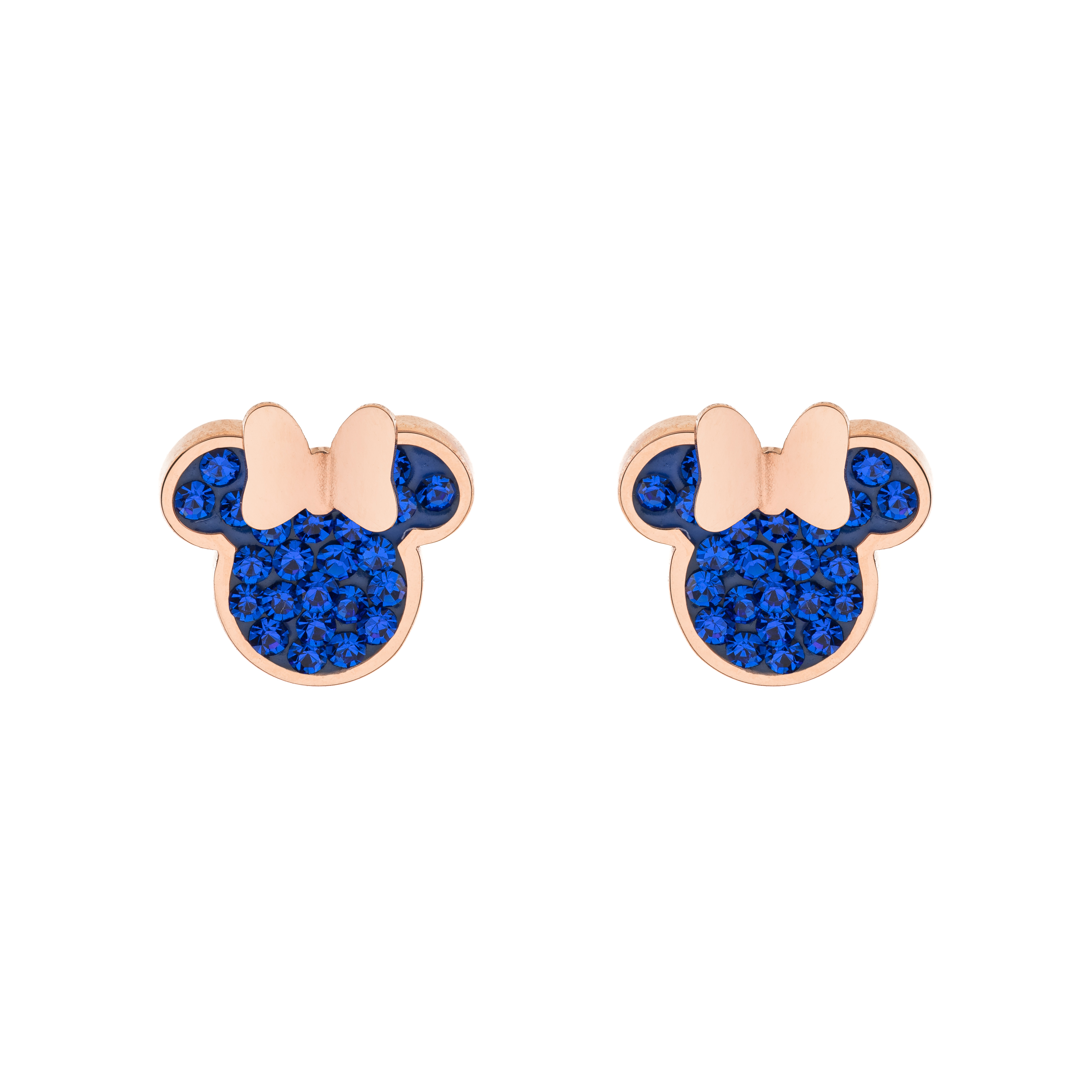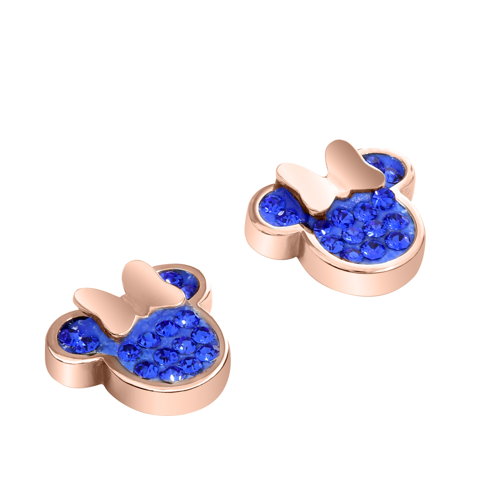 Cercei Disney Minnie Mouse - Otel Medical Inoxidabil Rose si Cristale Albastre