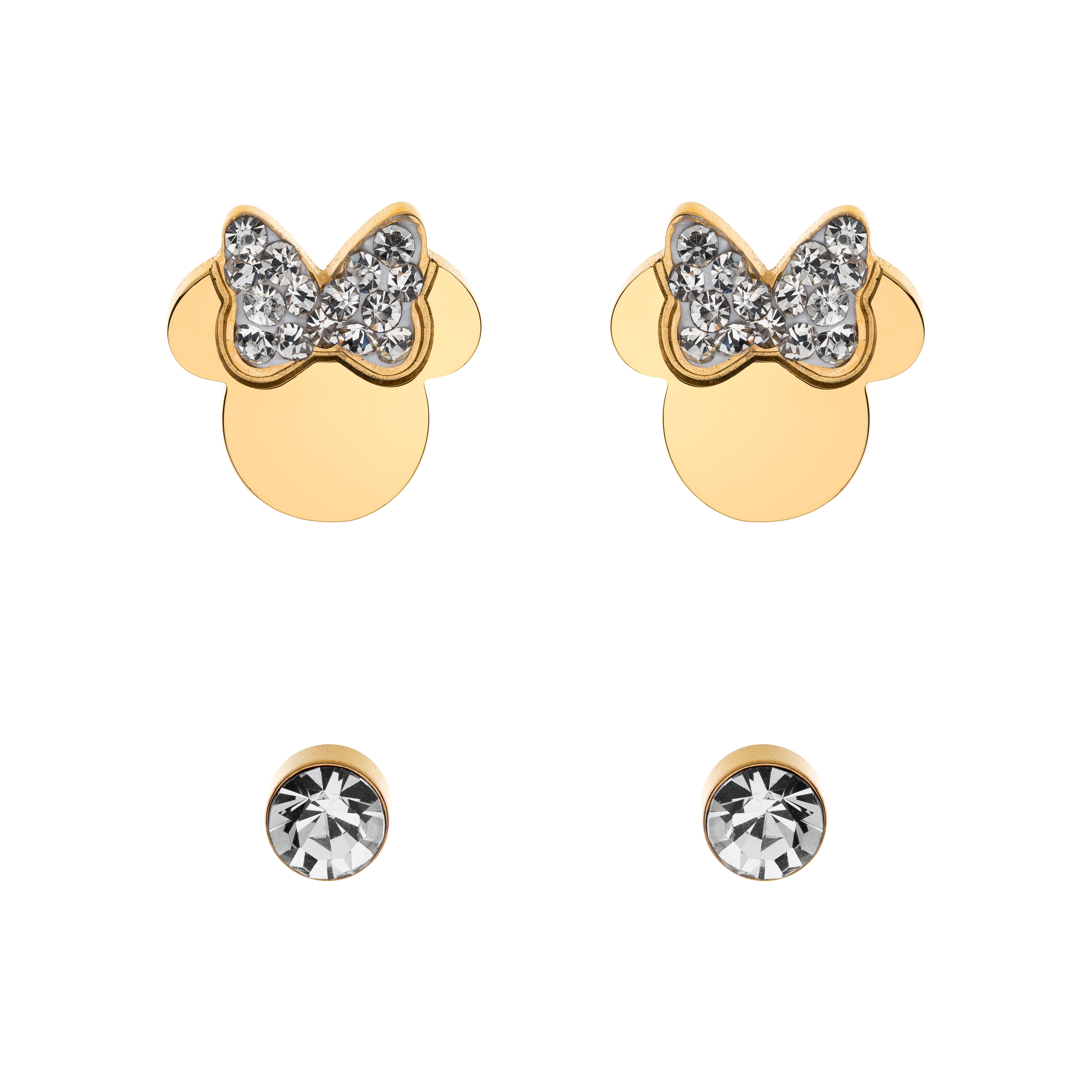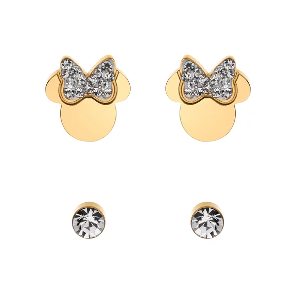 Set Cercei Disney Minnie Mouse - Otel Medical Inoxidabil Auriu si Cristale Albe