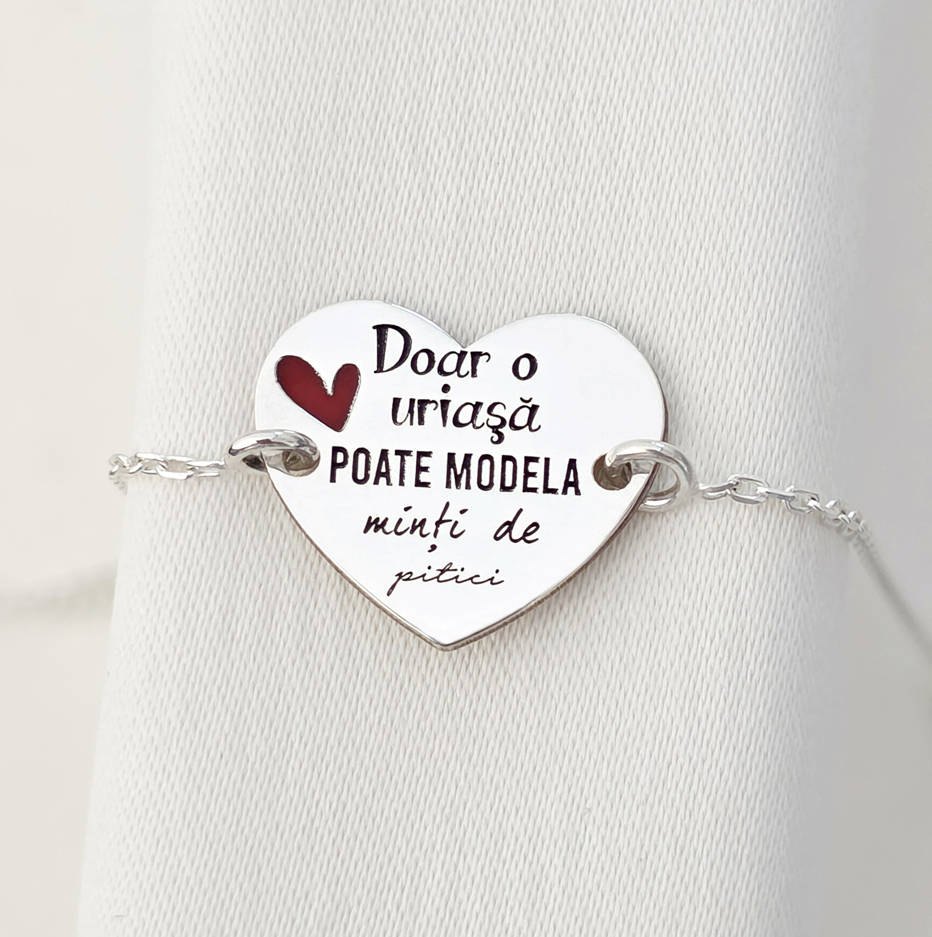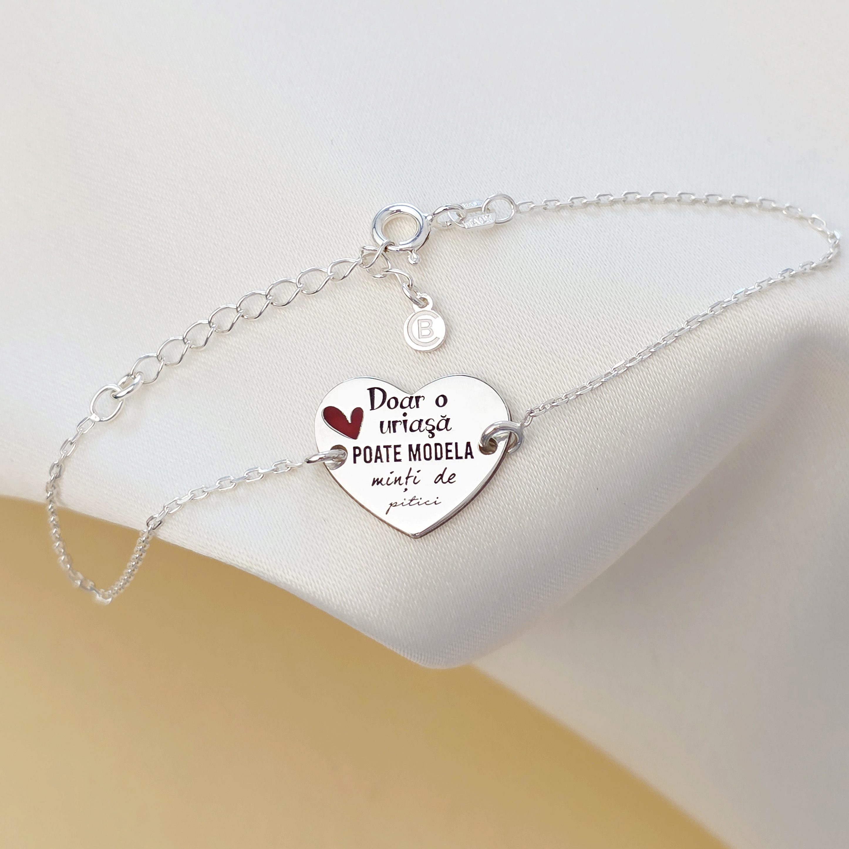 Bratara personalizata - Educatoare/Invatatoare - Inima decorata cu email - Argint 925 - cu lantisor