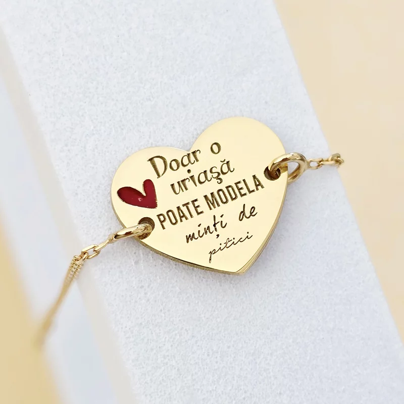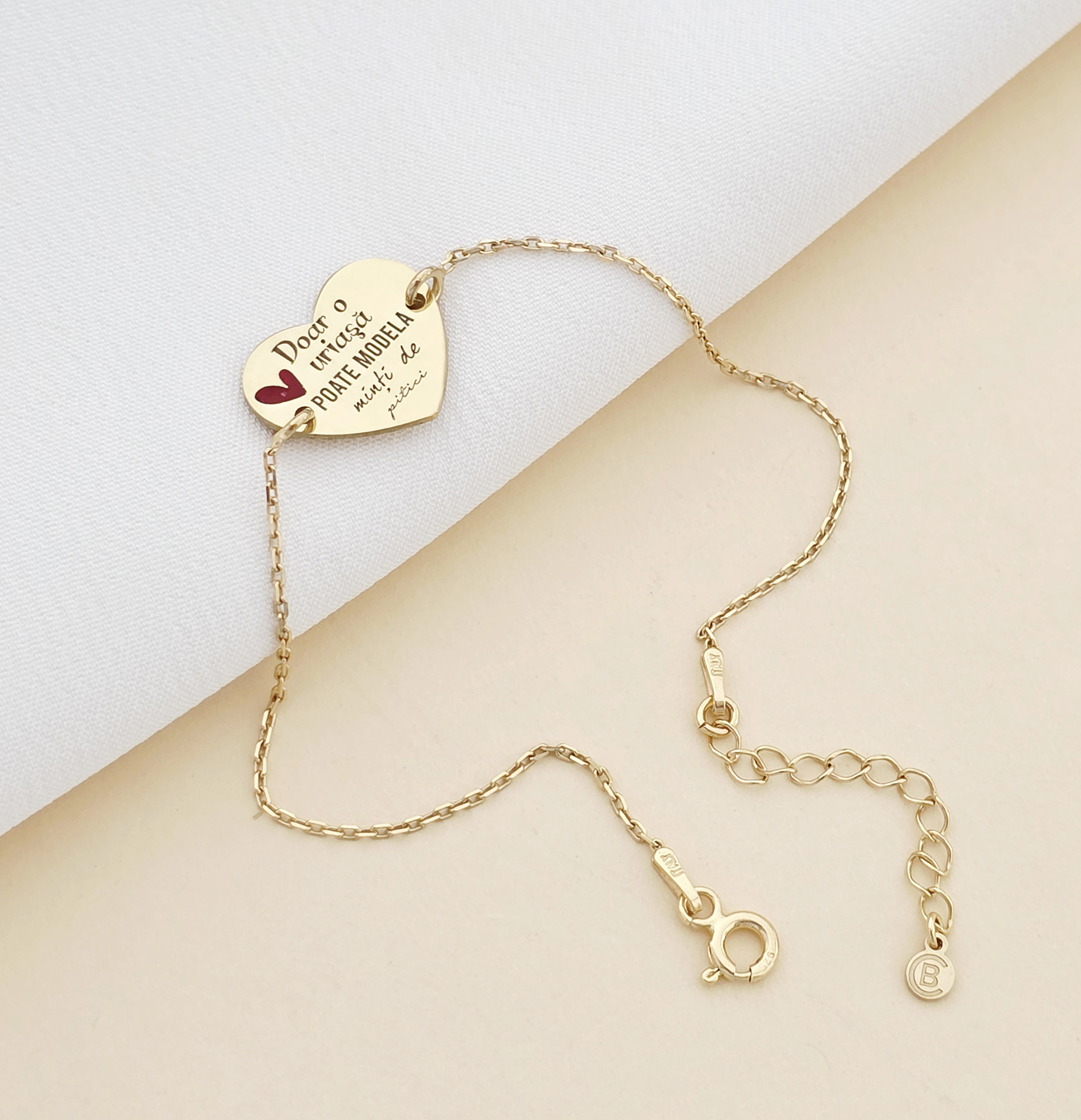 Bratara personalizata - Educatoare/Invatatoare - Inima decorata cu email - Argint 925 placat cu Aur Galben 18K - cu lantisor