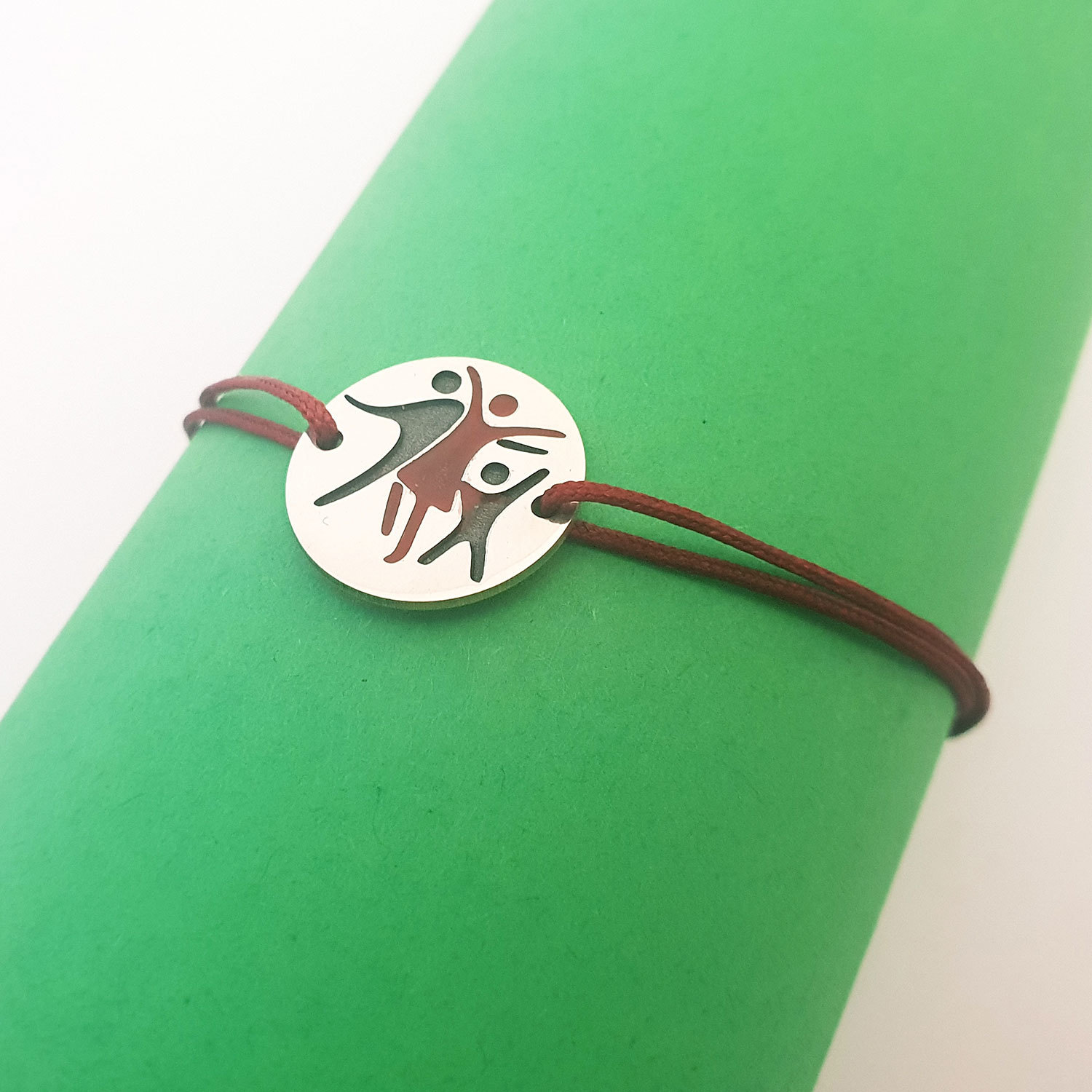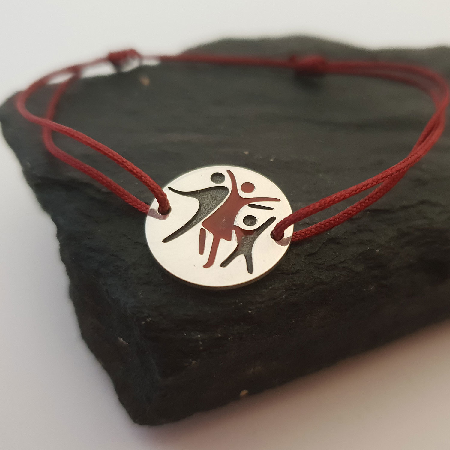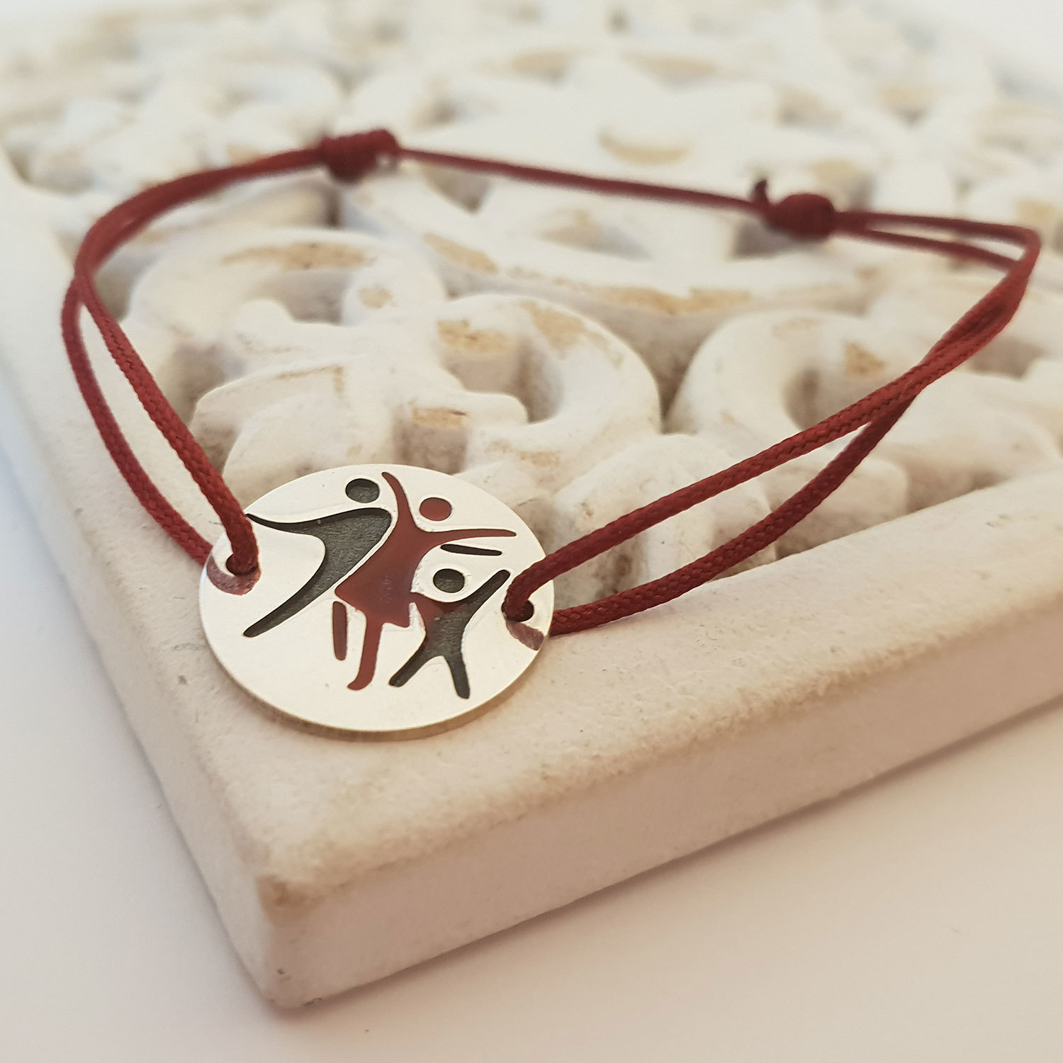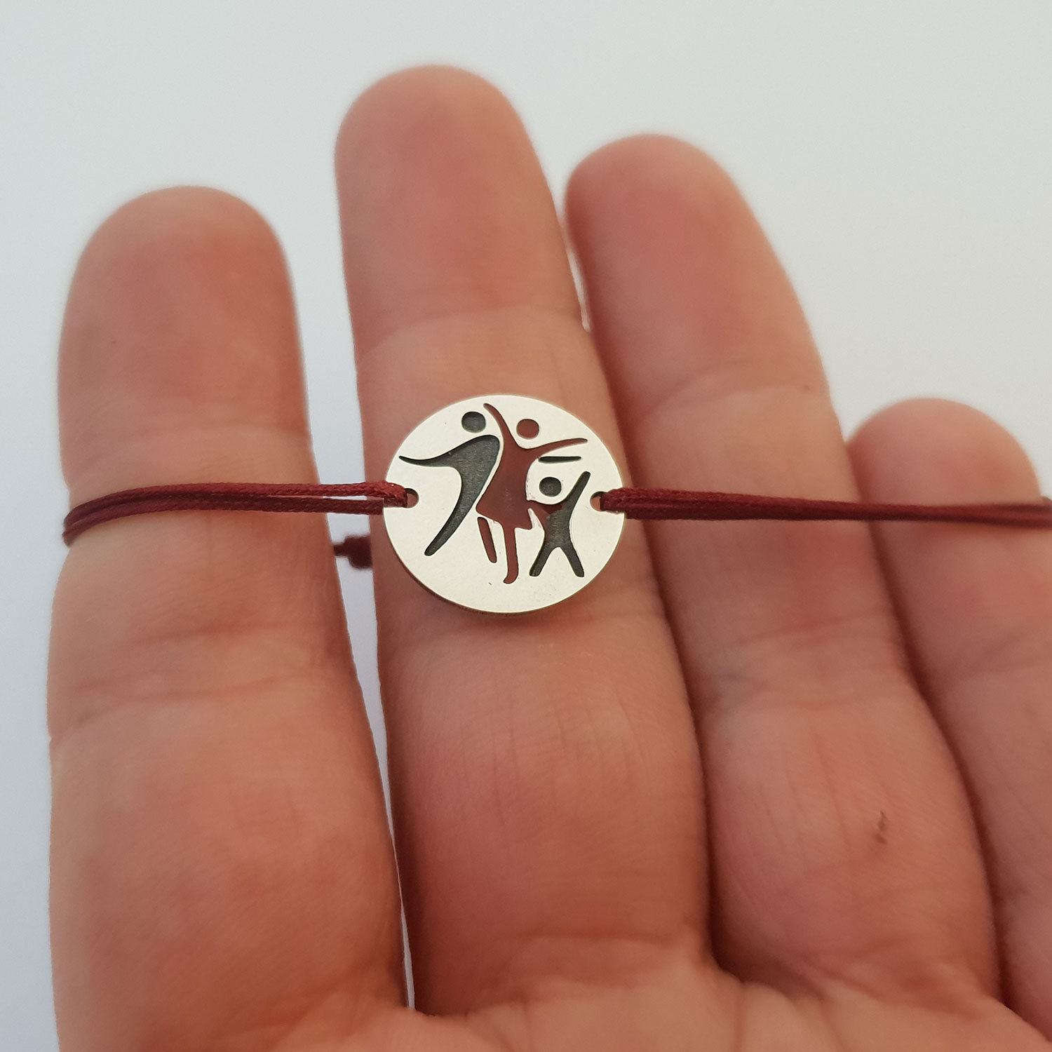Bratara personalizata si decorate cu email colorat - Familie 3 membri cu copil mare - Model banut Argint 925 - snur reglabil