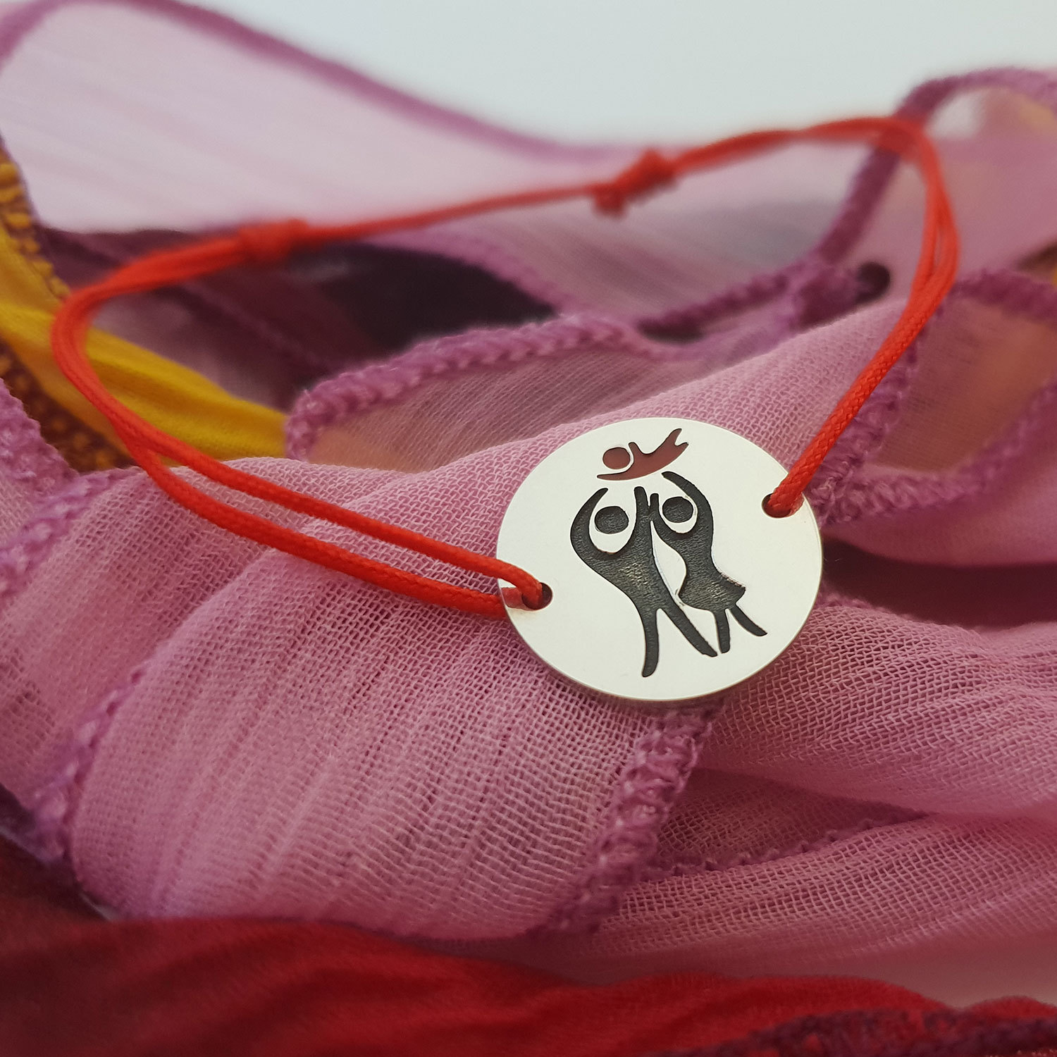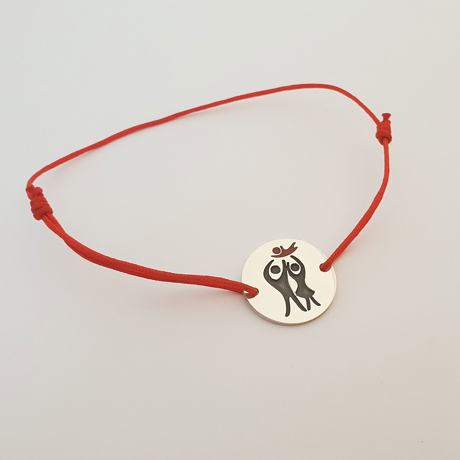 Bratara este creata din Argint 925 prin taiere si gravare laser, avand diametrul banutului de 15 mm si fiind atasata de un snur de matase vegetala, marime reglabila.