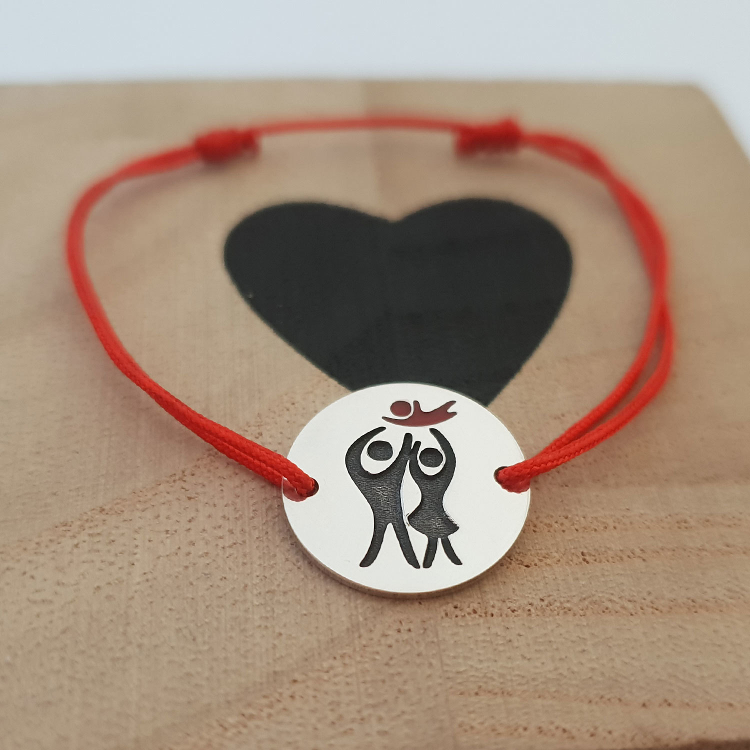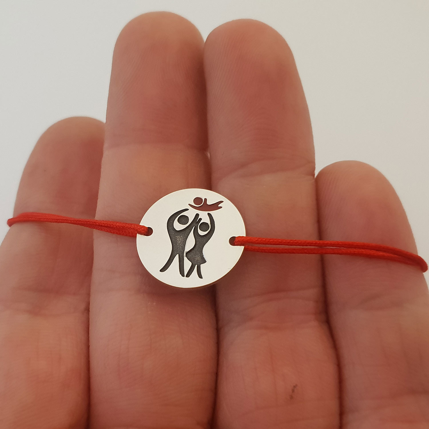 Bratara personalizata si decorate cu email colorat - Familie 3 membri cu copil mic - Model banut Argint 925 - snur reglabil