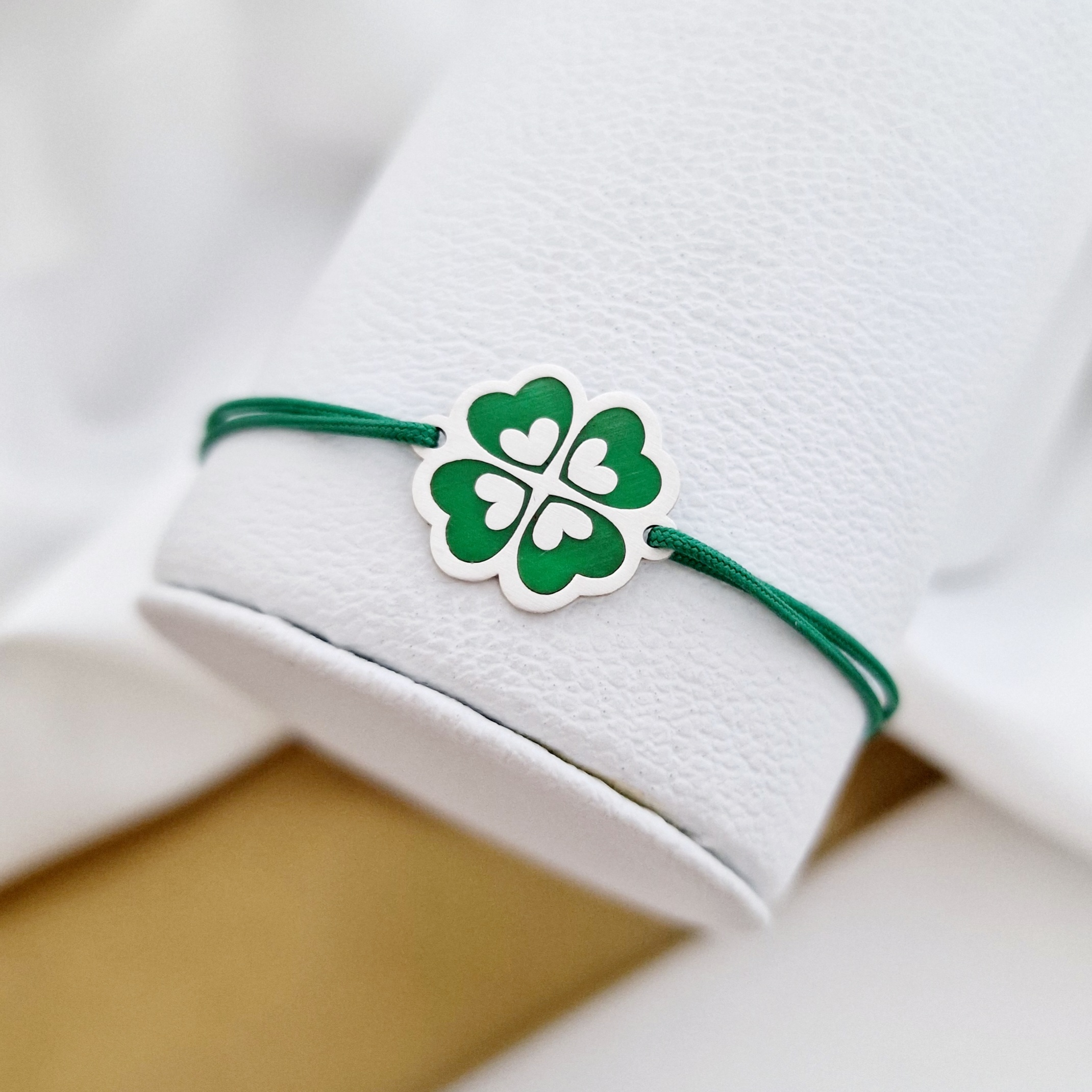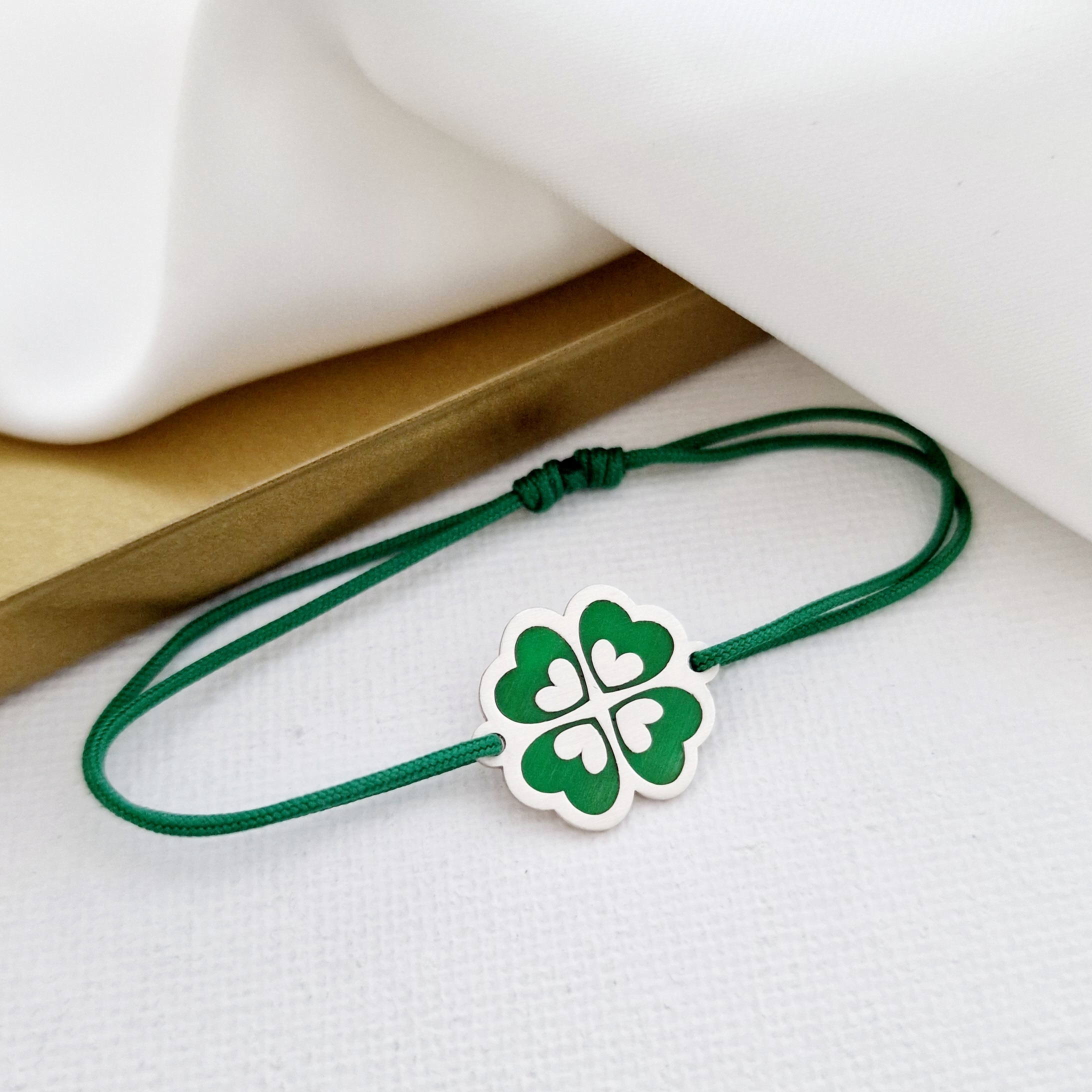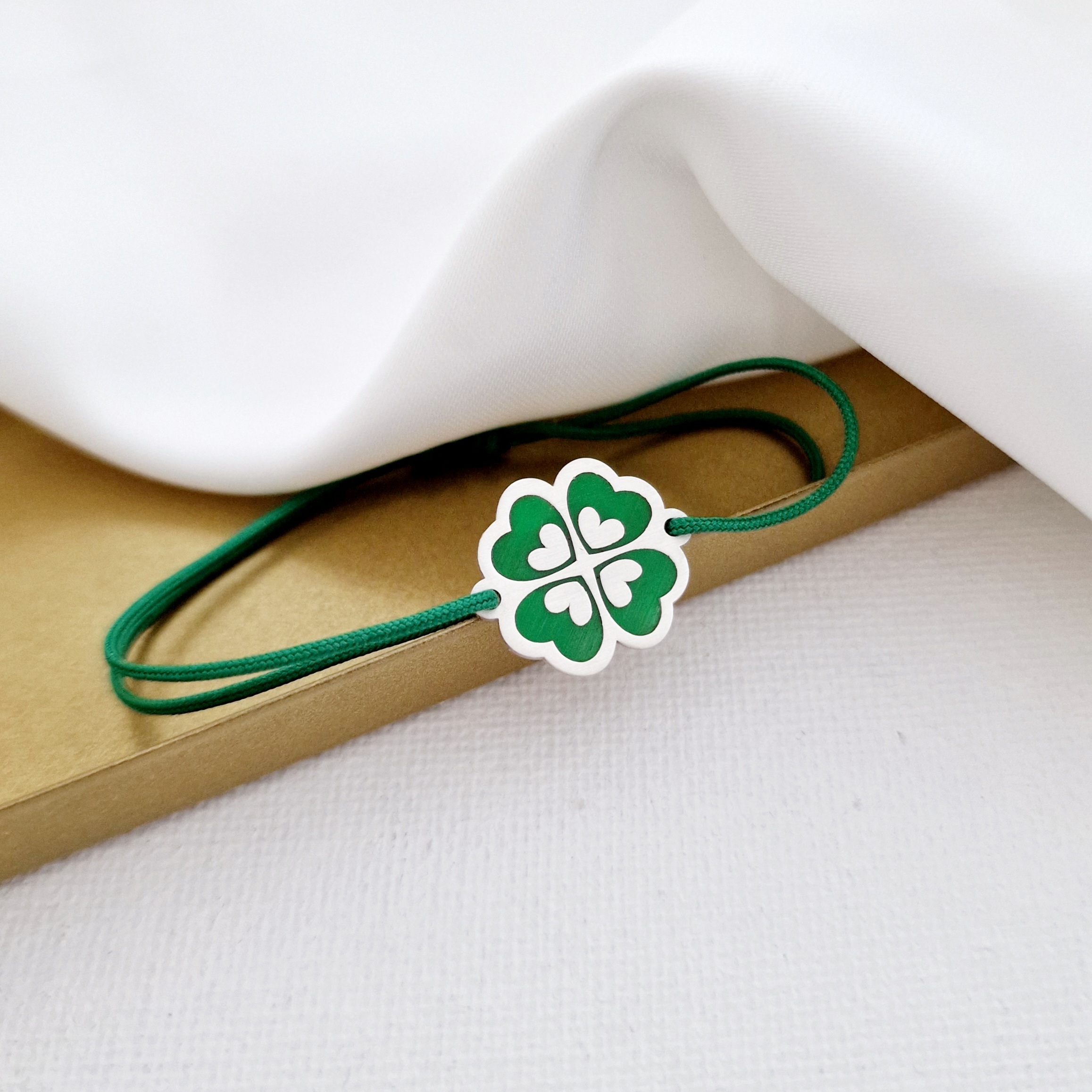 Bratara personalizata - Trifoi decorat cu email - Aspect mat - Argint 925 - Snur reglabil