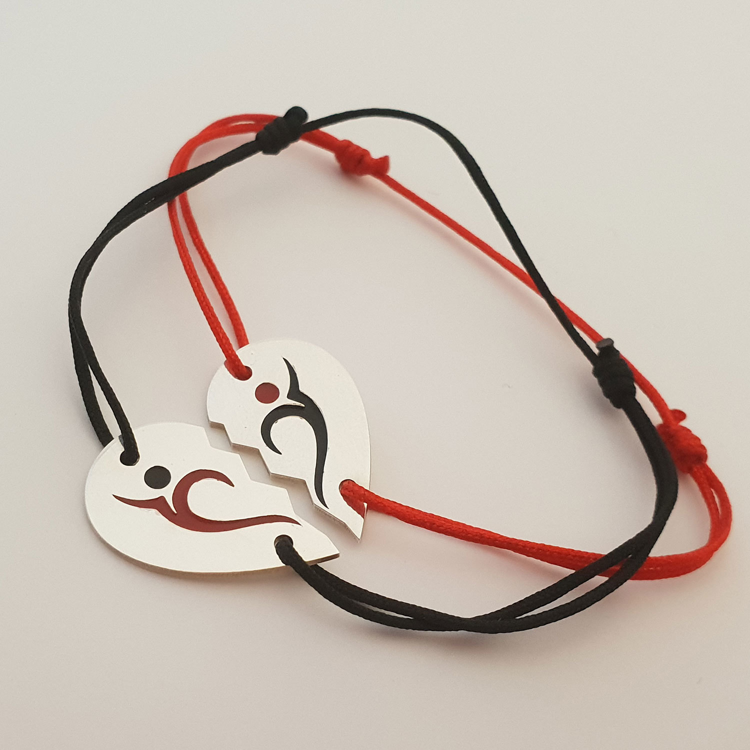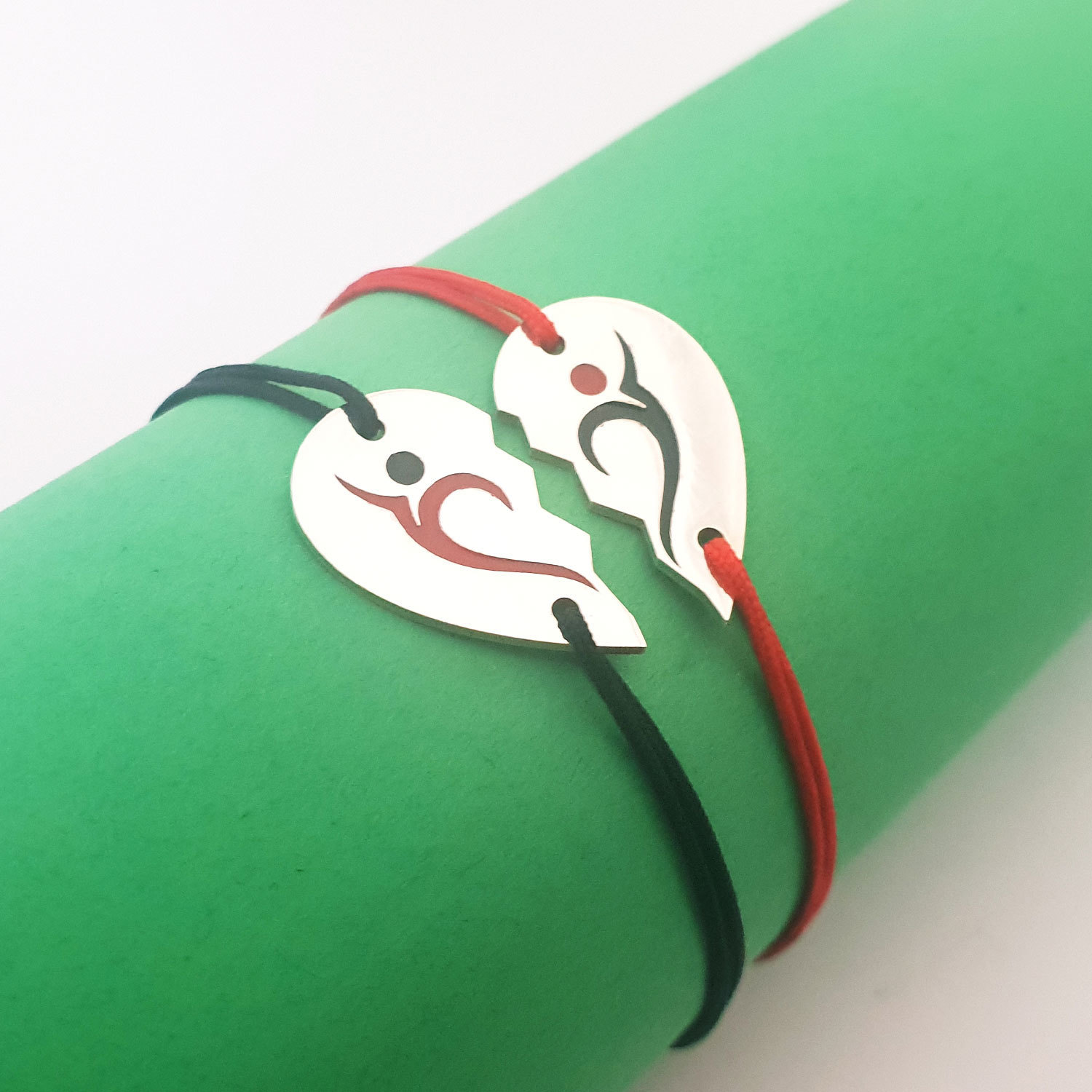 Set 2 bratari personalizate si decorate cu email colorat - Model inima puzzle Argint 925 - snur reglabil