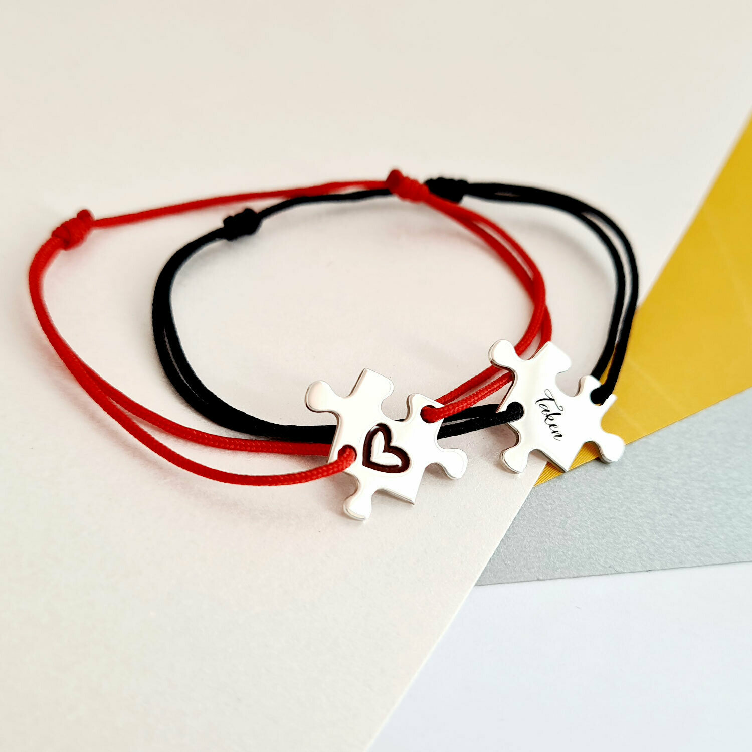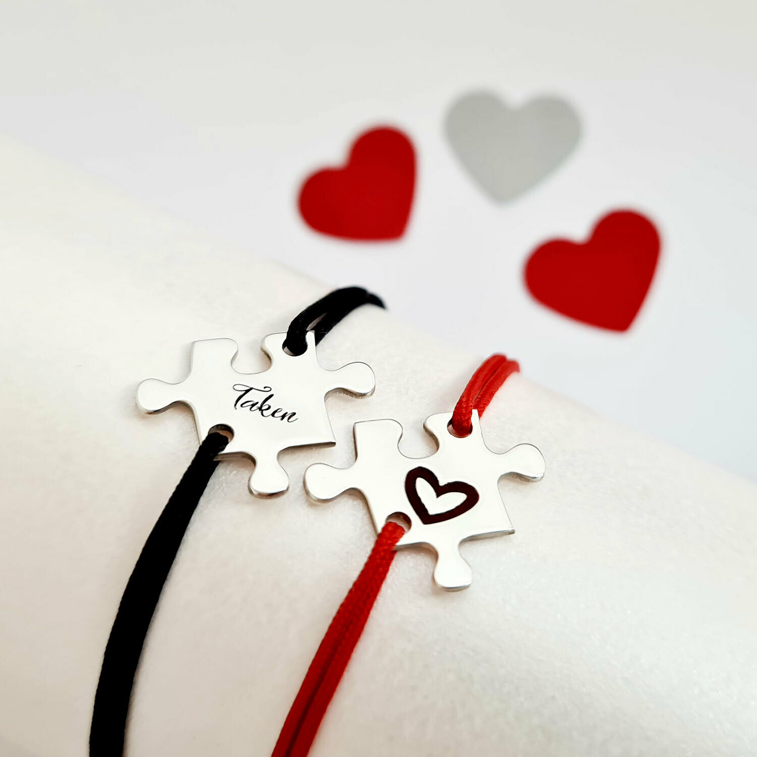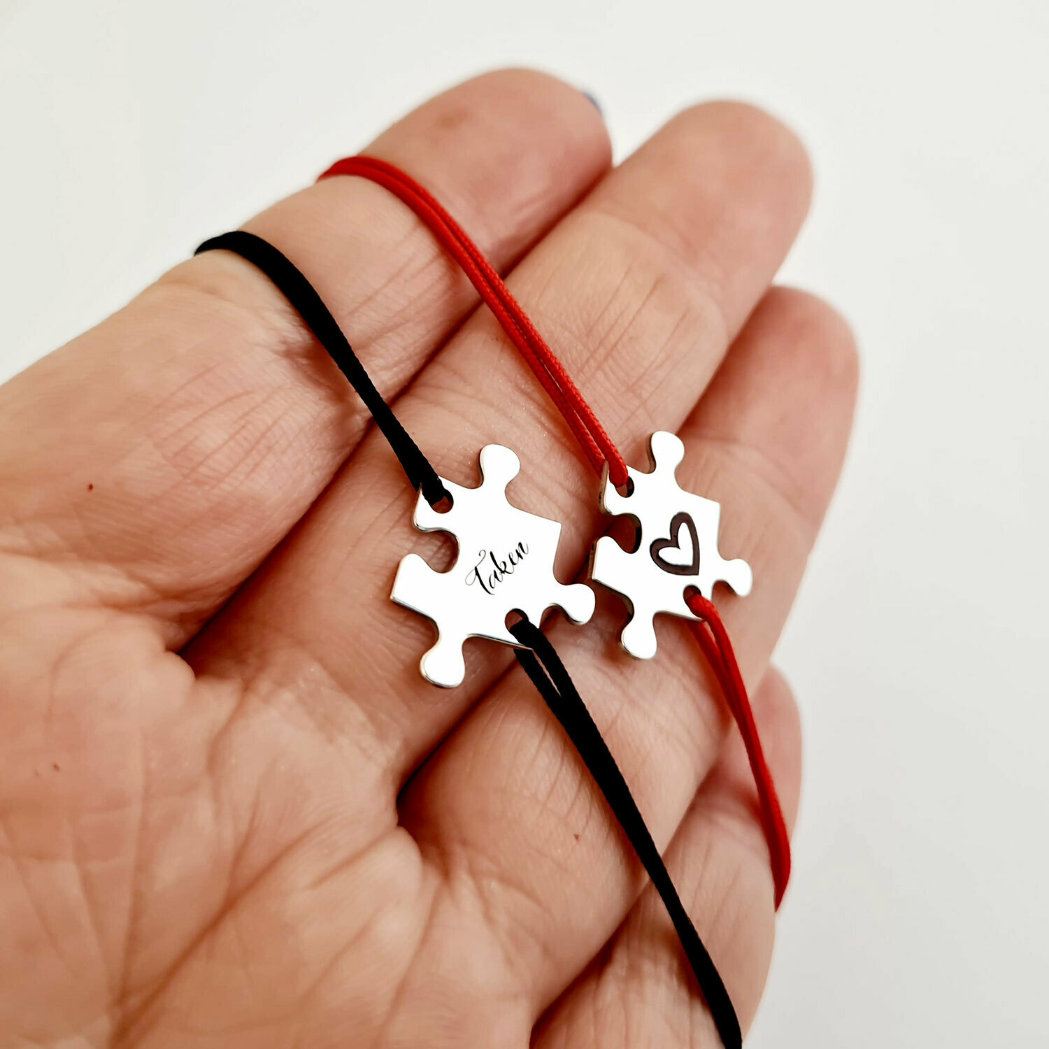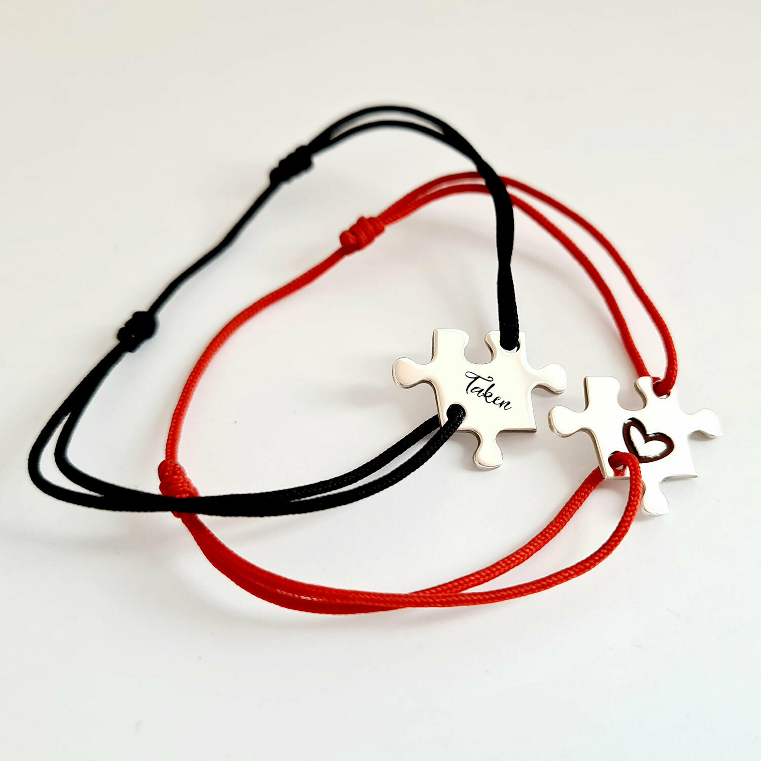 Setul de bratari puzzle exprima o conexiune puternica si reala, 2 piese ce se impletesc in dragoste precum 2 suflete pereche.