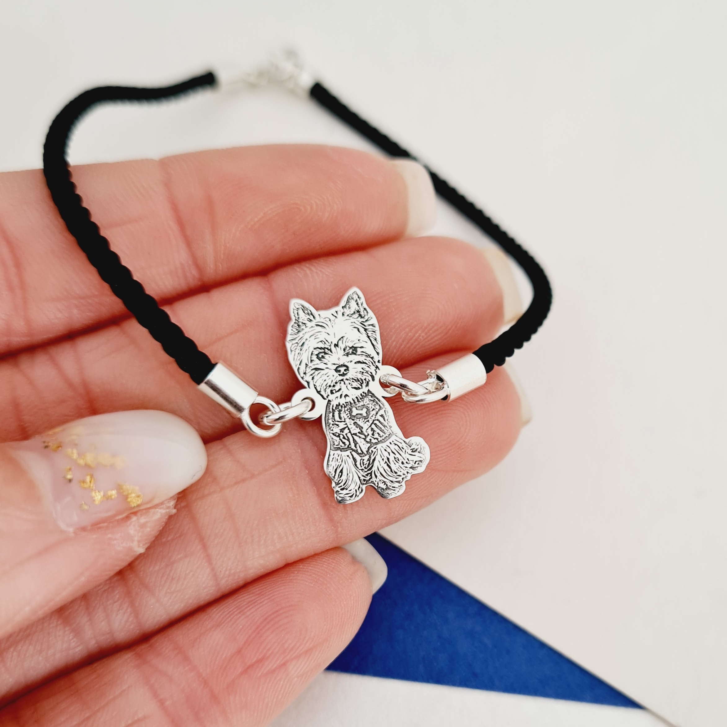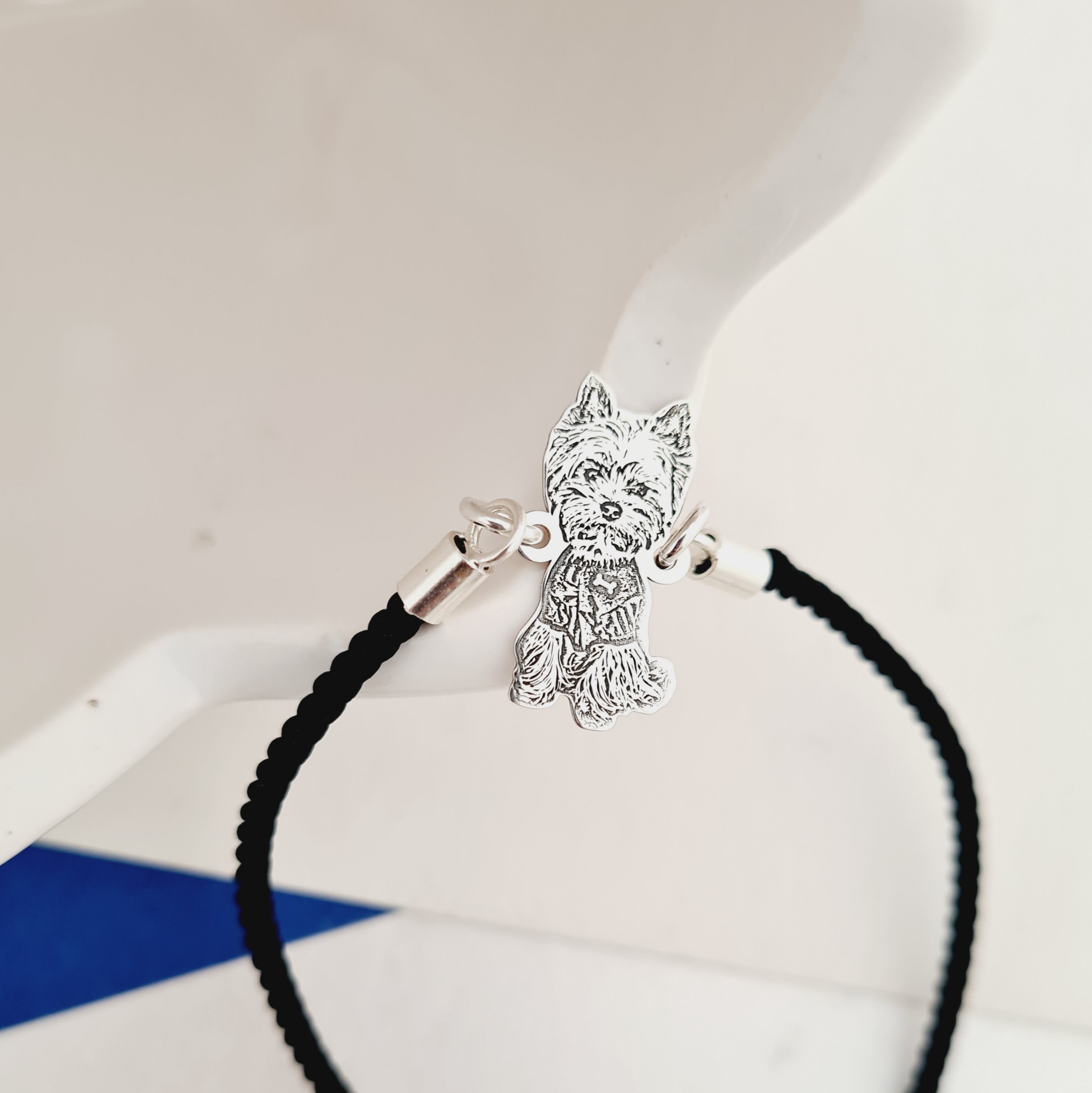 Bratara caine iubit - Personalizare cu poza - Argint 925 - Snur gros,model fix