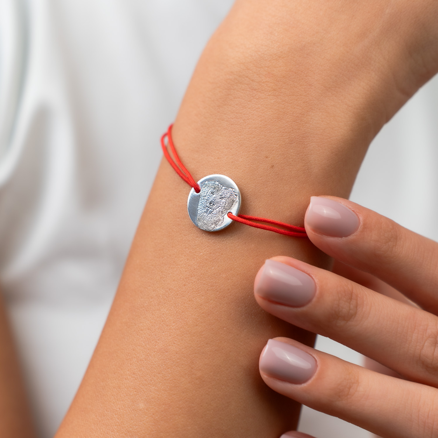 Bratara personalizata cu poza - Mereu aproape - Banut 15 mm - Argint 925 - Snur reglabil