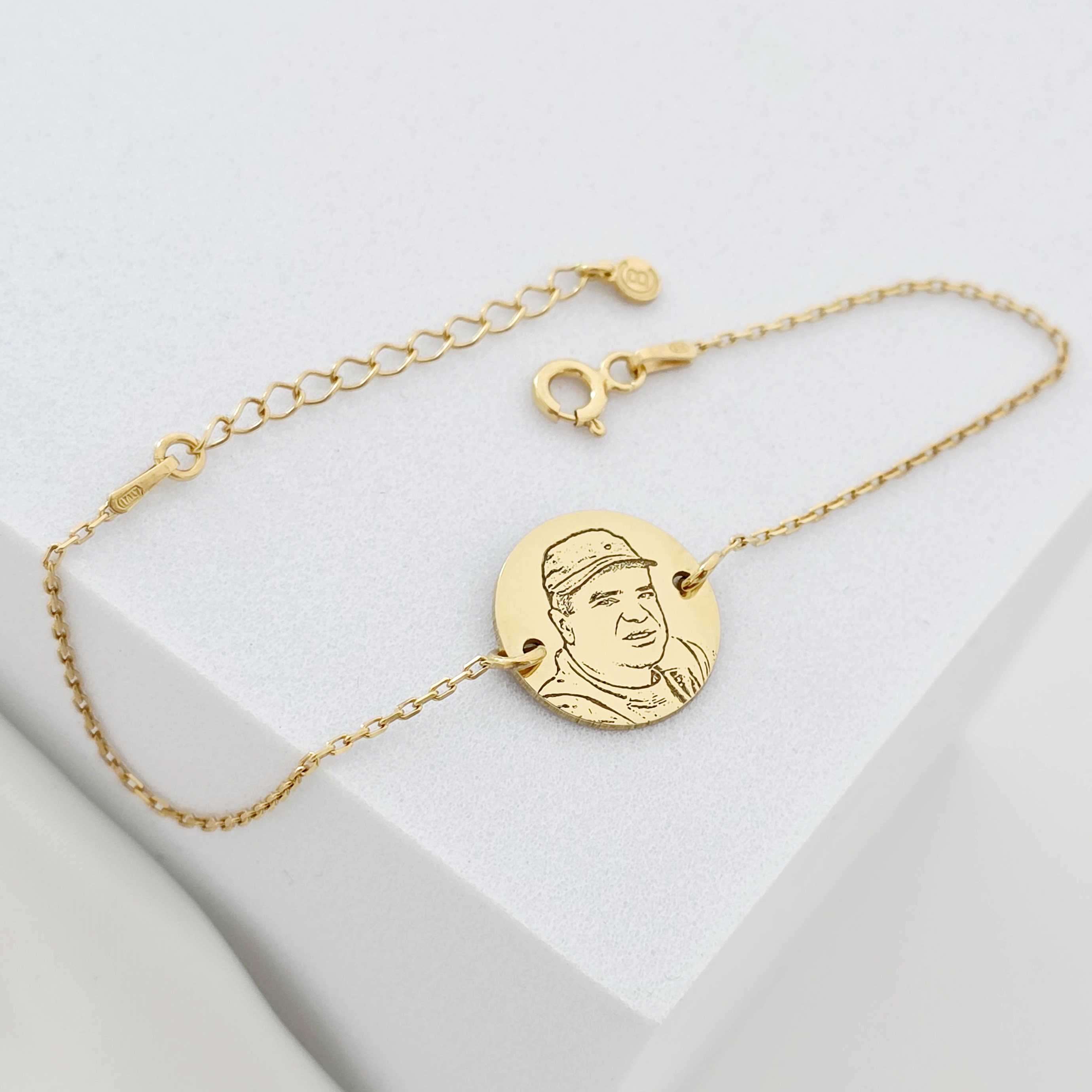 Bratara personalizata cu poza - Amintiri clădite - Banut 15 mm cu lantisor - Argint 925 placat cu Aur Galben 18K