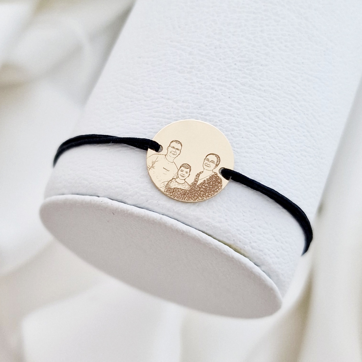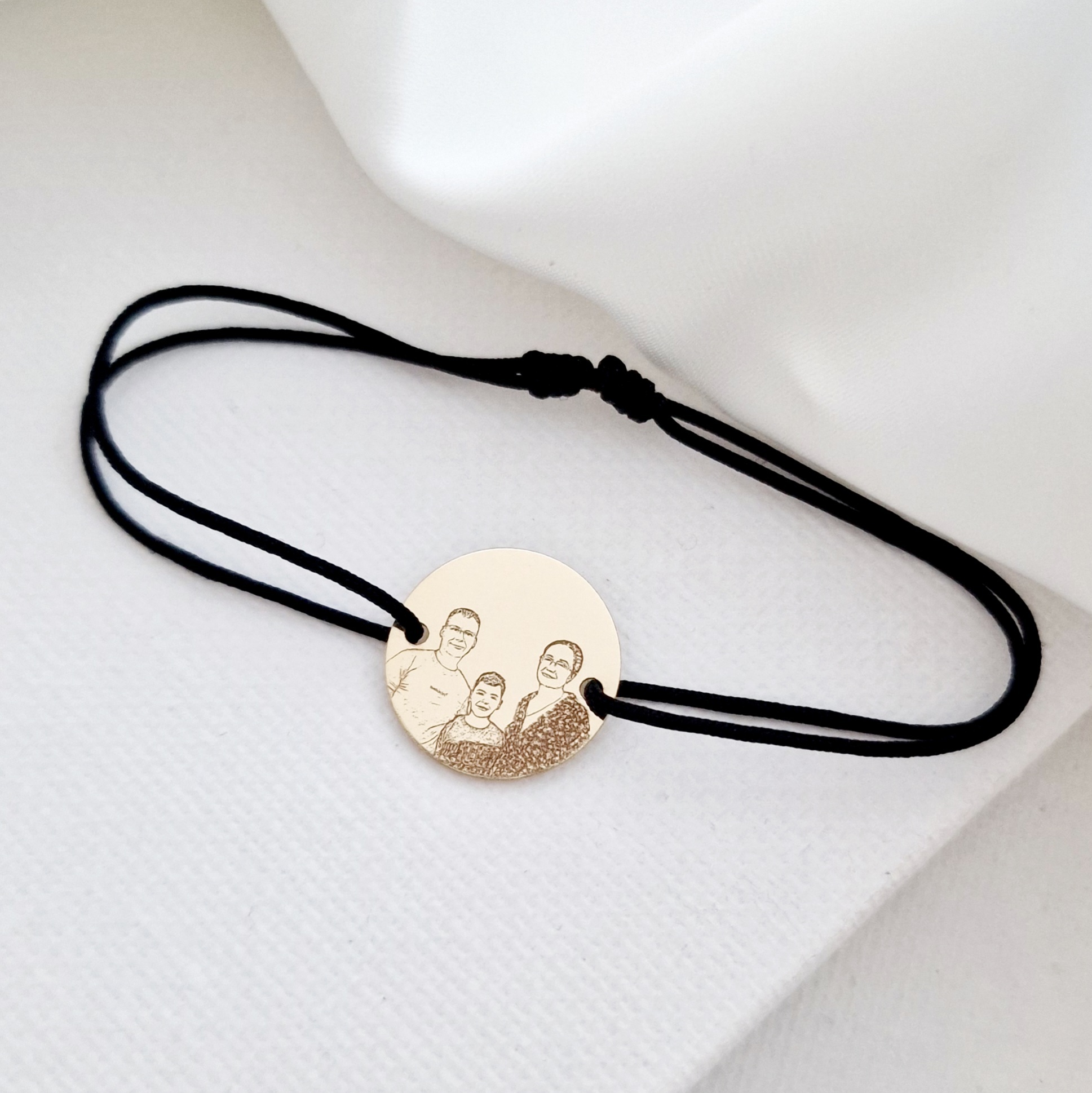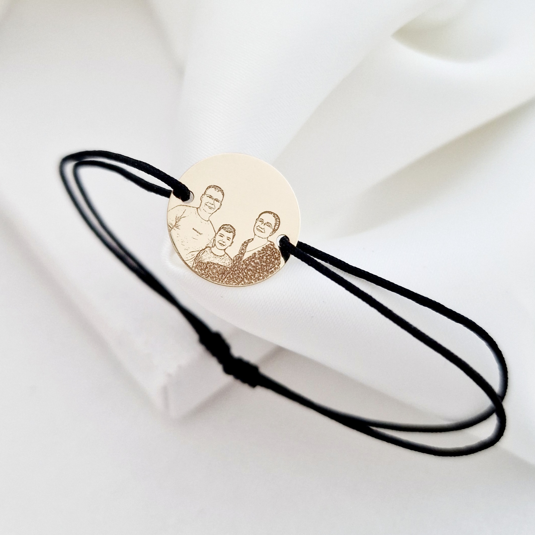 Bratara personalizata cu poza - Povestea noastra - Banut 15 mm - Aur 9K - Snur reglabil, diverse culori